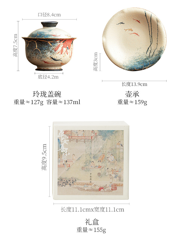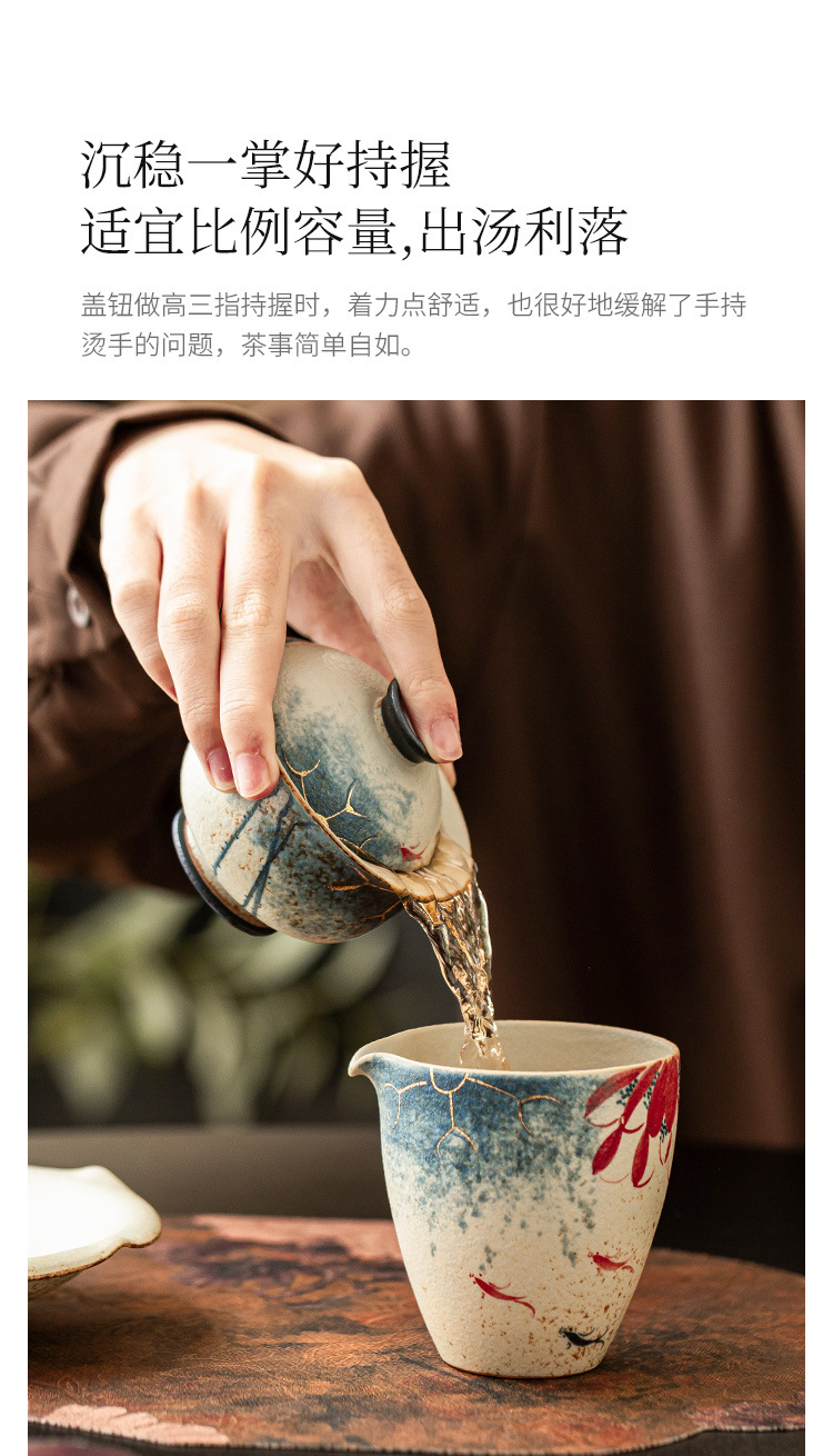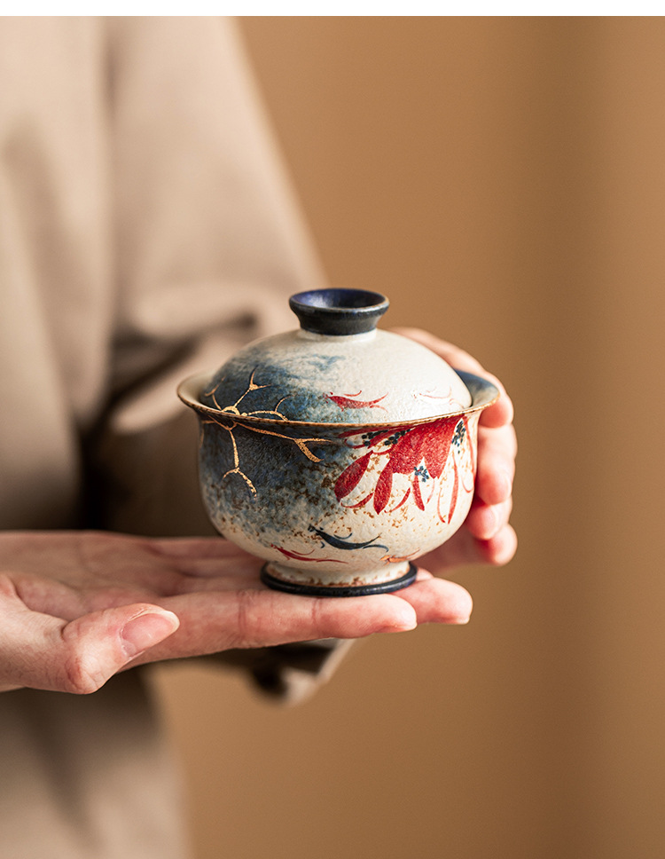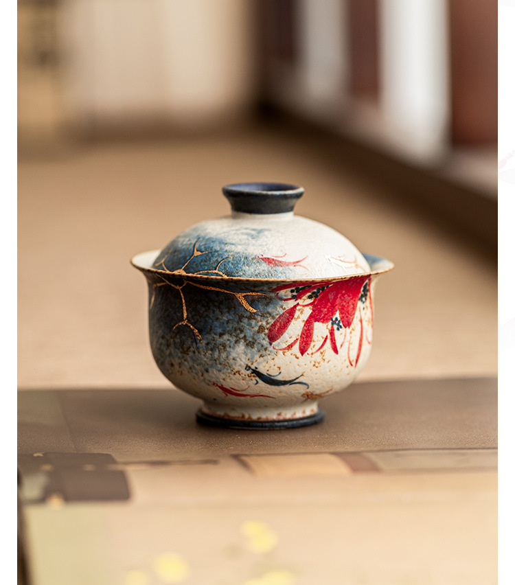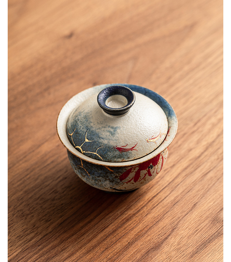 - Nhà máy màu xanh và trắng đá lửa bát nắp đỏ cốc trà vàng vẽ tay hoa sen vần Koi bát trà có nắp bộ trà Kung Fu gốm sứ