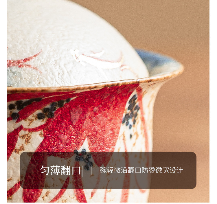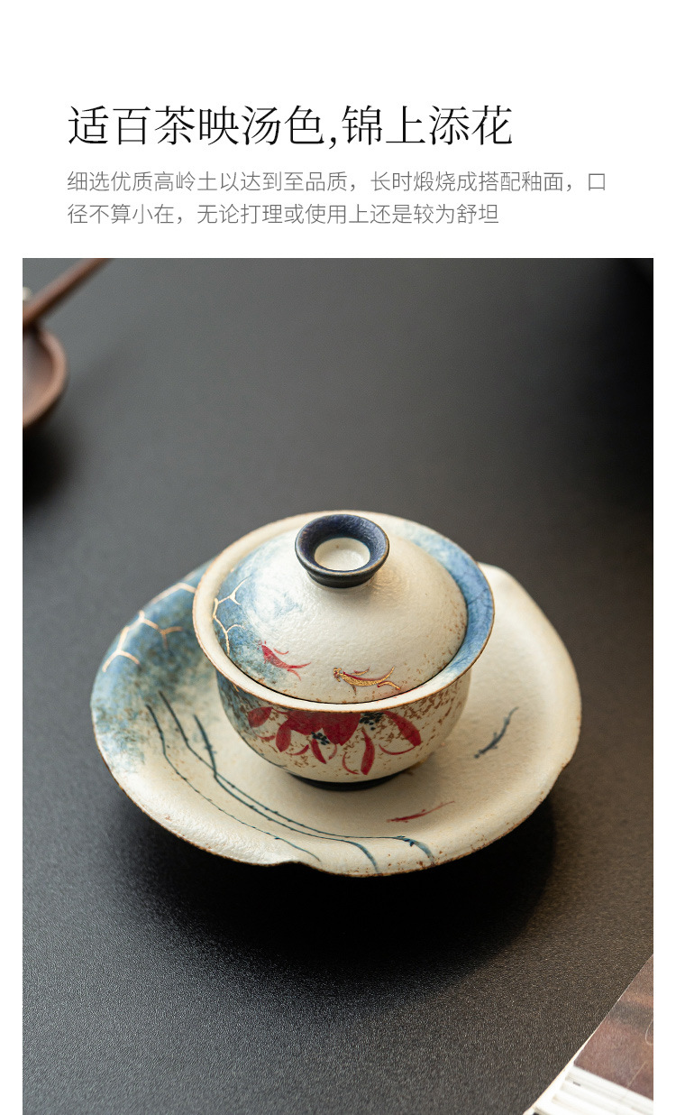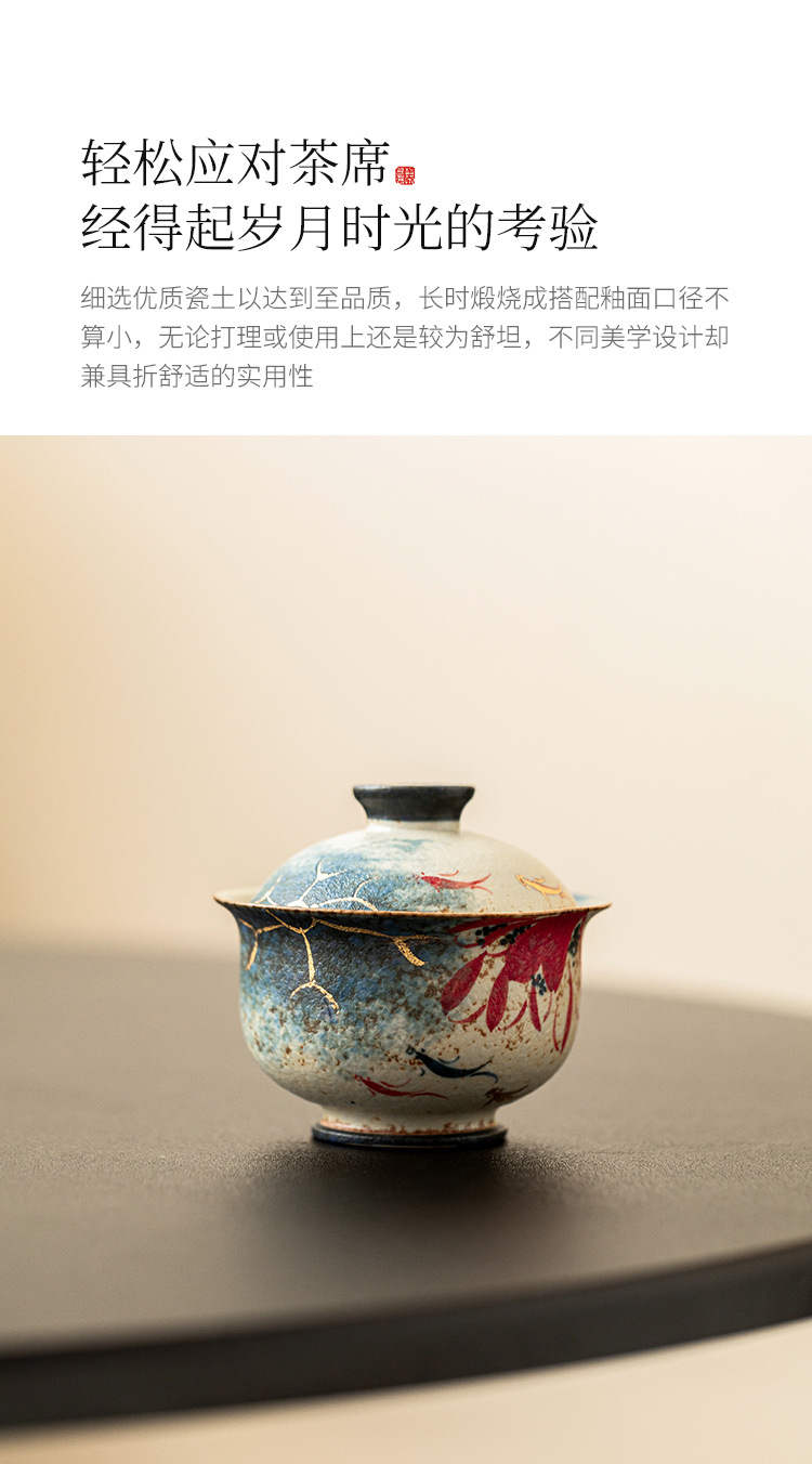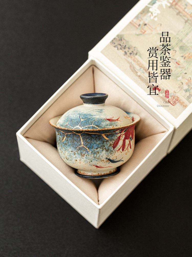 Nhà máy màu xanh và trắng đá lửa bát nắp đỏ cốc trà vàng vẽ tay hoa sen vần Koi bát trà có nắp bộ trà Kung Fu gốm sứ