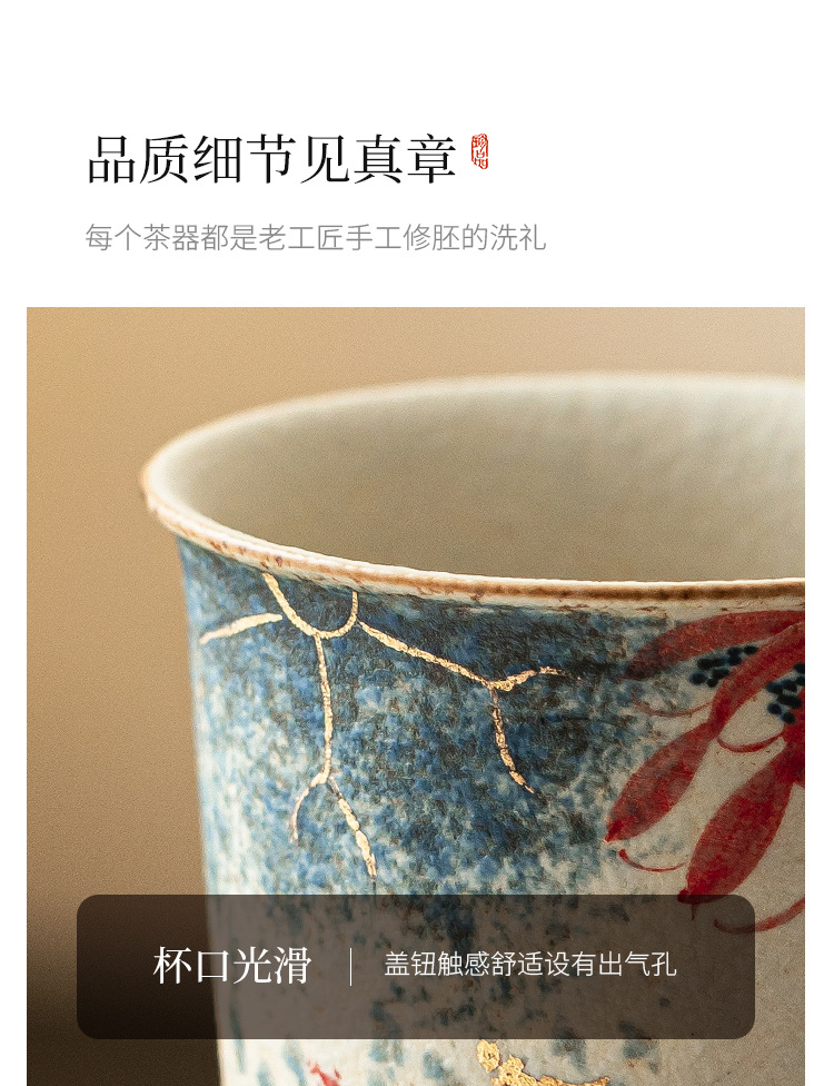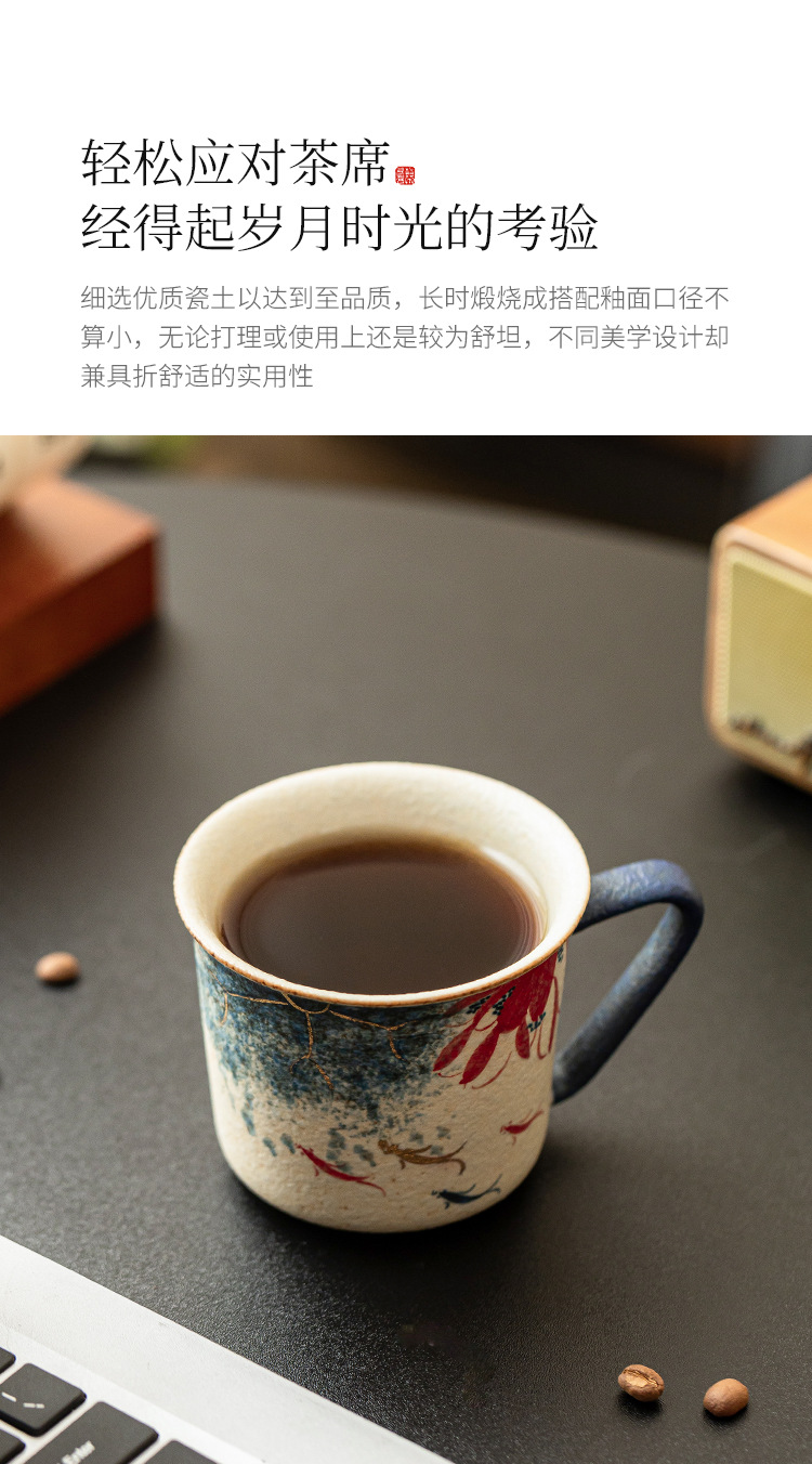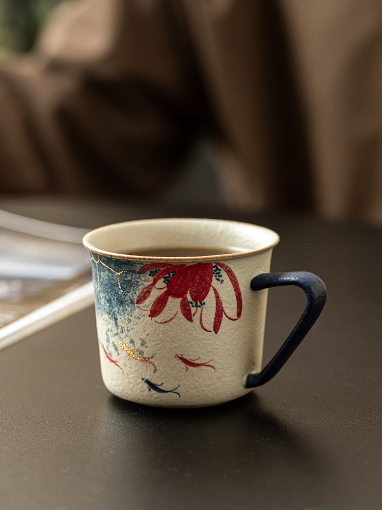 - Nhà máy màu xanh và trắng đá lửa cốc cà phê gốm sứ đỏ chạm khắc vàng vẽ tay vần sen Koi latte cốc trà chiều cốc nước