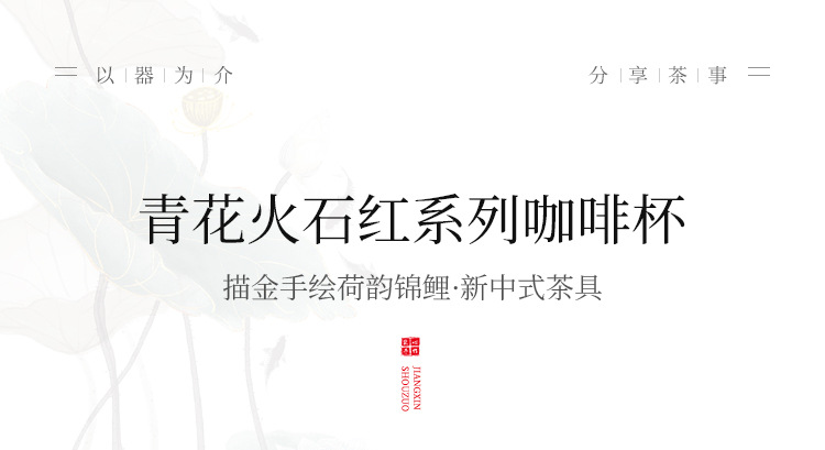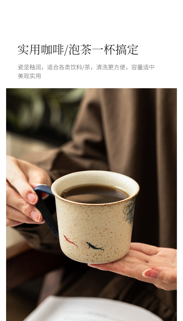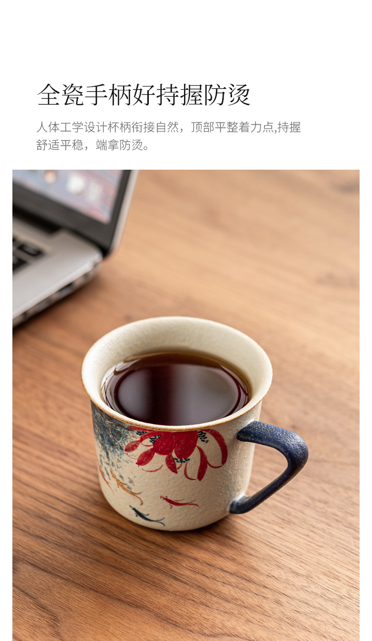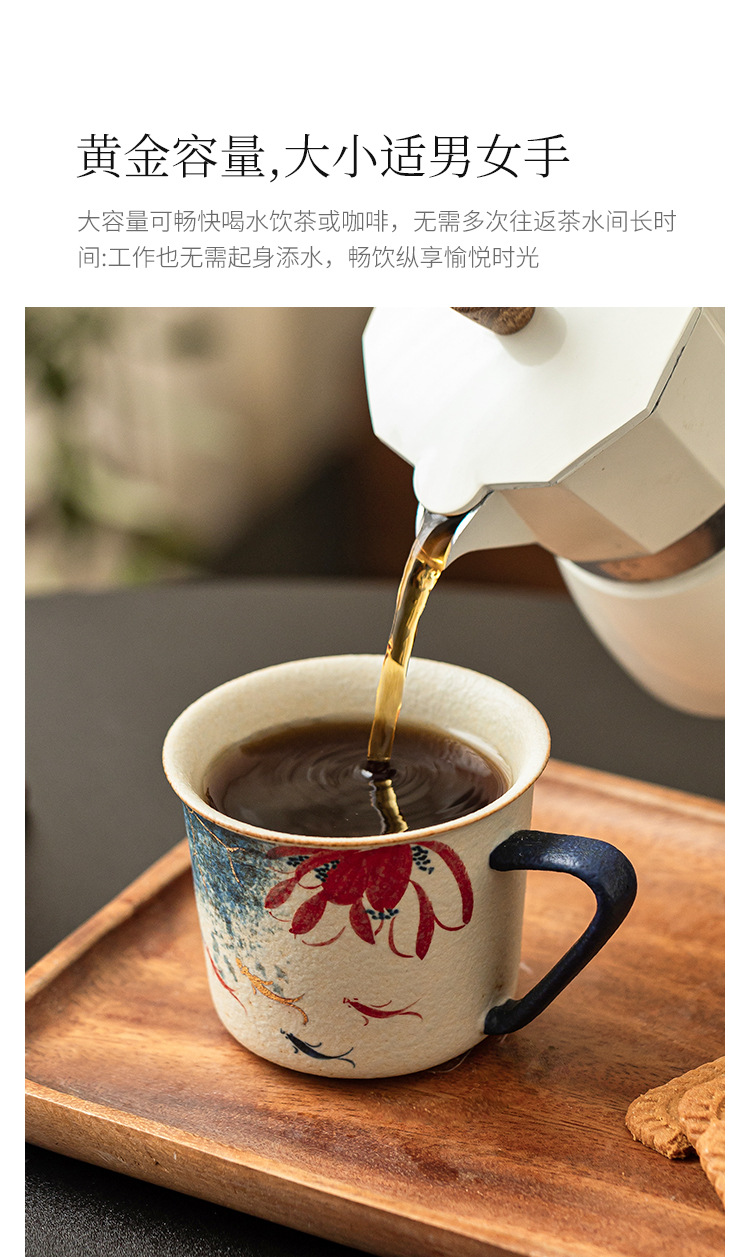 Nhà máy màu xanh và trắng đá lửa cốc cà phê gốm sứ đỏ chạm khắc vàng vẽ tay vần sen Koi latte cốc trà chiều cốc nước