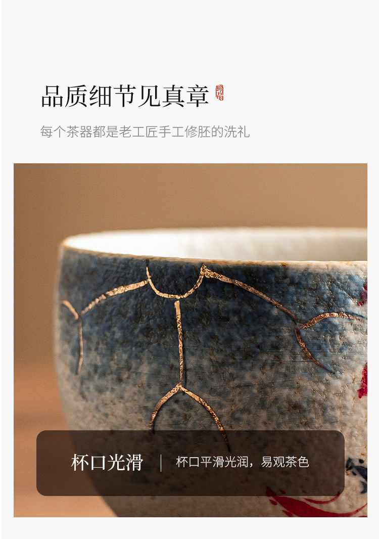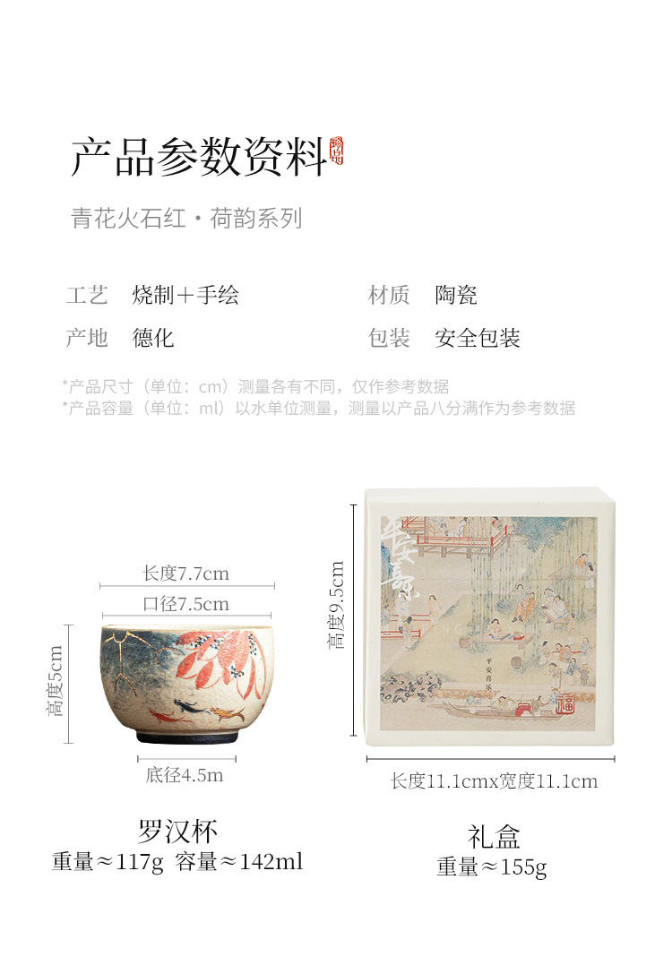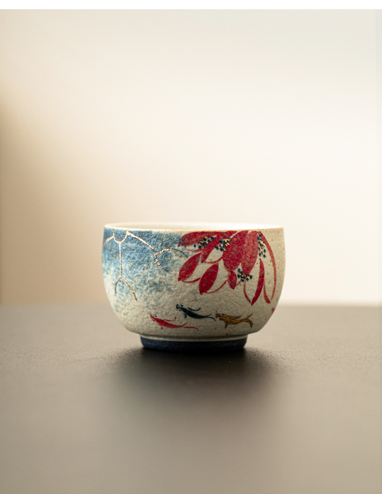 - Nhà máy màu xanh và trắng, đá lửa đỏ, cốc chủ nhân, vàng vẽ tay, hoa sen, cá koi, cốc La Hán, cốc trà gốm sứ, cốc trà
