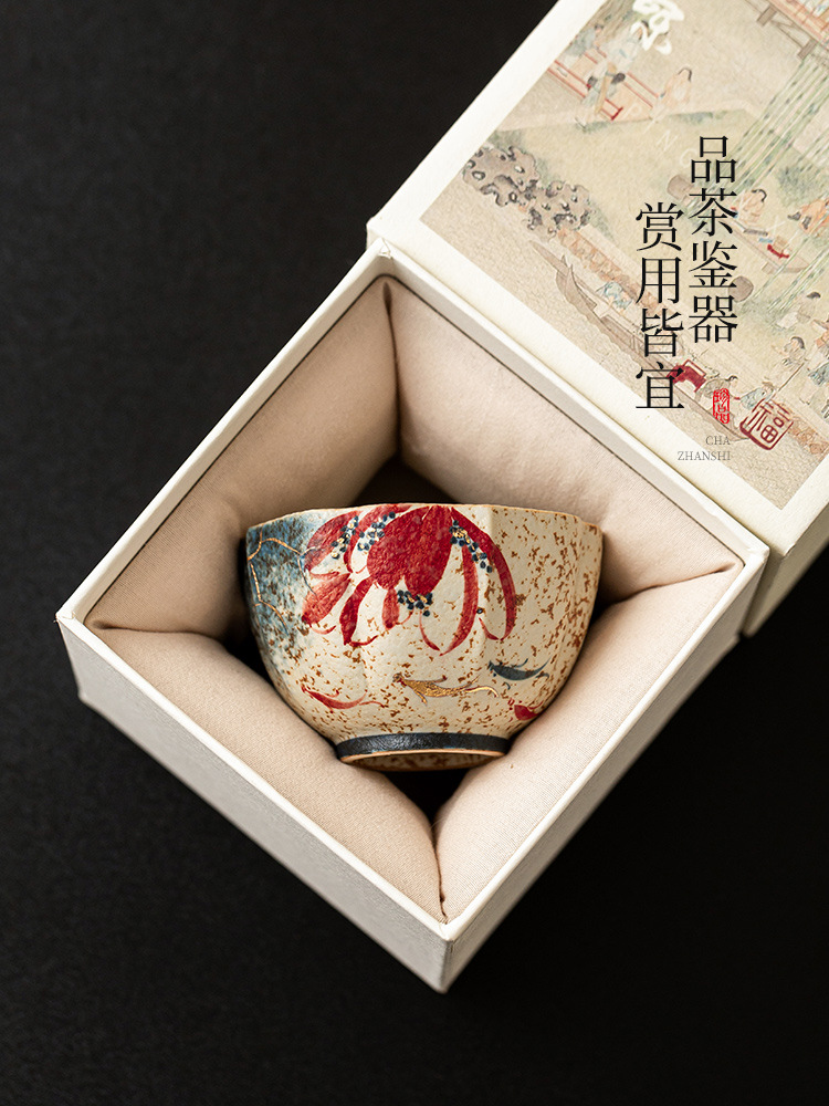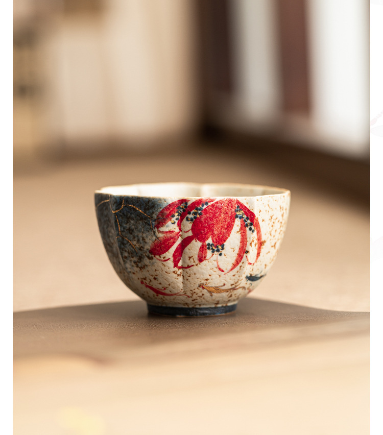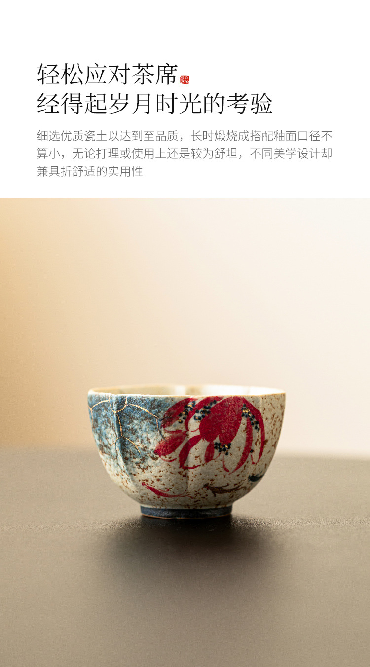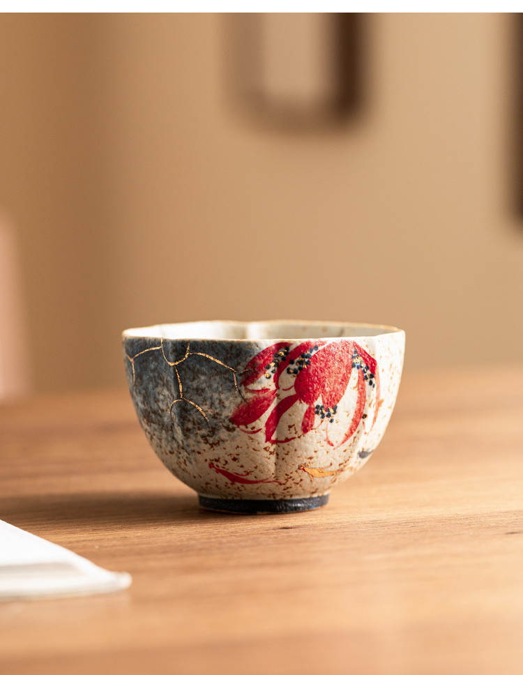 Nhà máy màu xanh và trắng đá lửa màu đỏ gốm sứ chủ nhân cốc vẽ tay hoa sen vần sen Koi cánh hoa tách trà tách trà