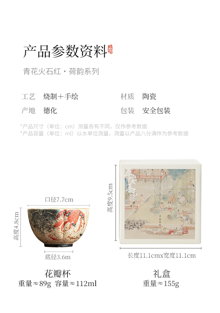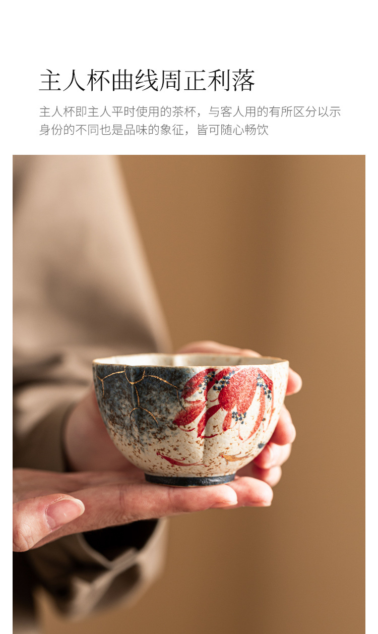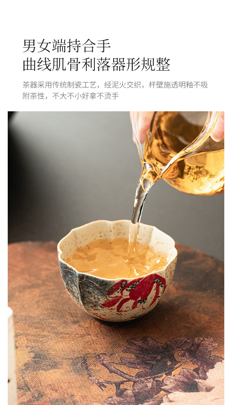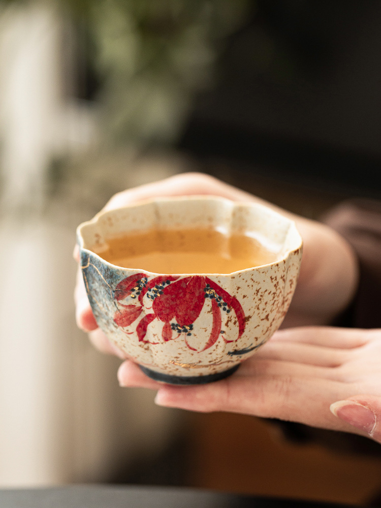 Nhà máy màu xanh và trắng đá lửa màu đỏ gốm sứ chủ nhân cốc vẽ tay hoa sen vần sen Koi cánh hoa tách trà tách trà