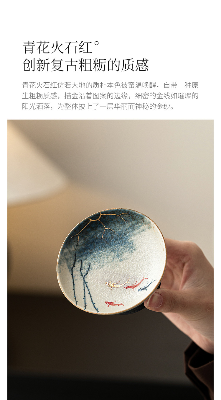 Nhà máy màu xanh và trắng, đá lửa, vỏ gốm đỏ, chạm khắc vàng vẽ tay, bộ trà Koi Koi, phụ kiện, nắp, khay trái cây khô