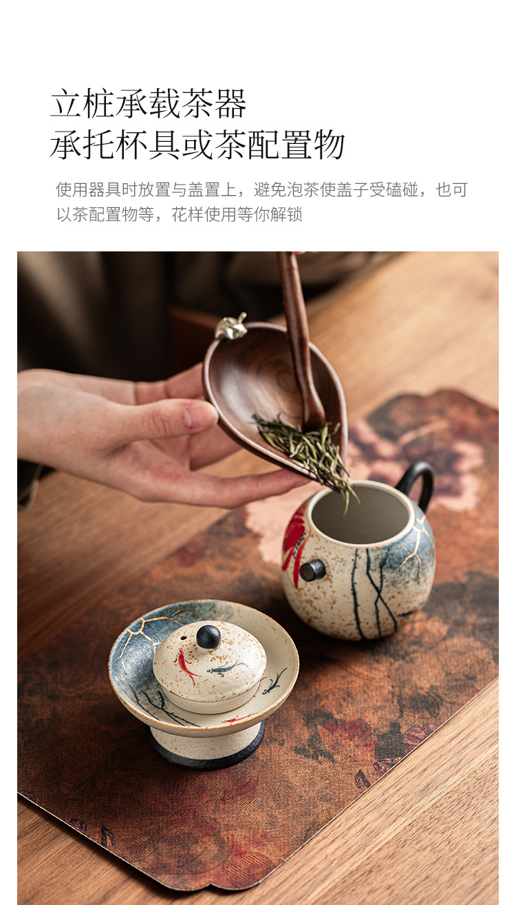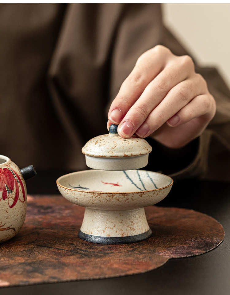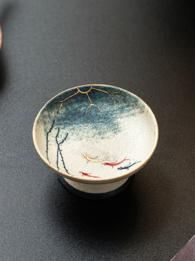 - Nhà máy màu xanh và trắng, đá lửa, vỏ gốm đỏ, chạm khắc vàng vẽ tay, bộ trà Koi Koi, phụ kiện, nắp, khay trái cây khô
