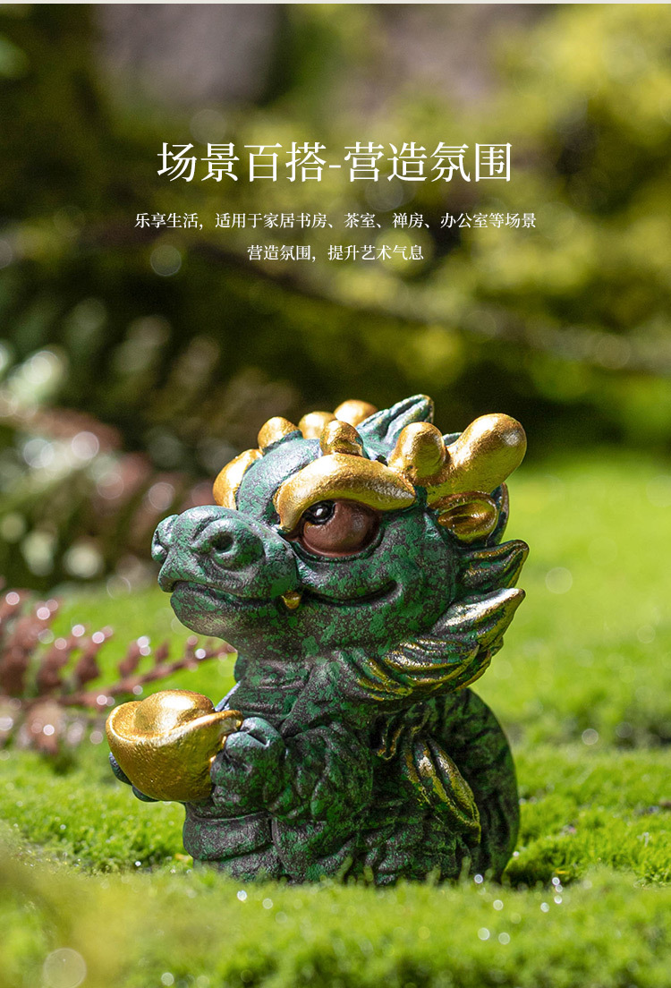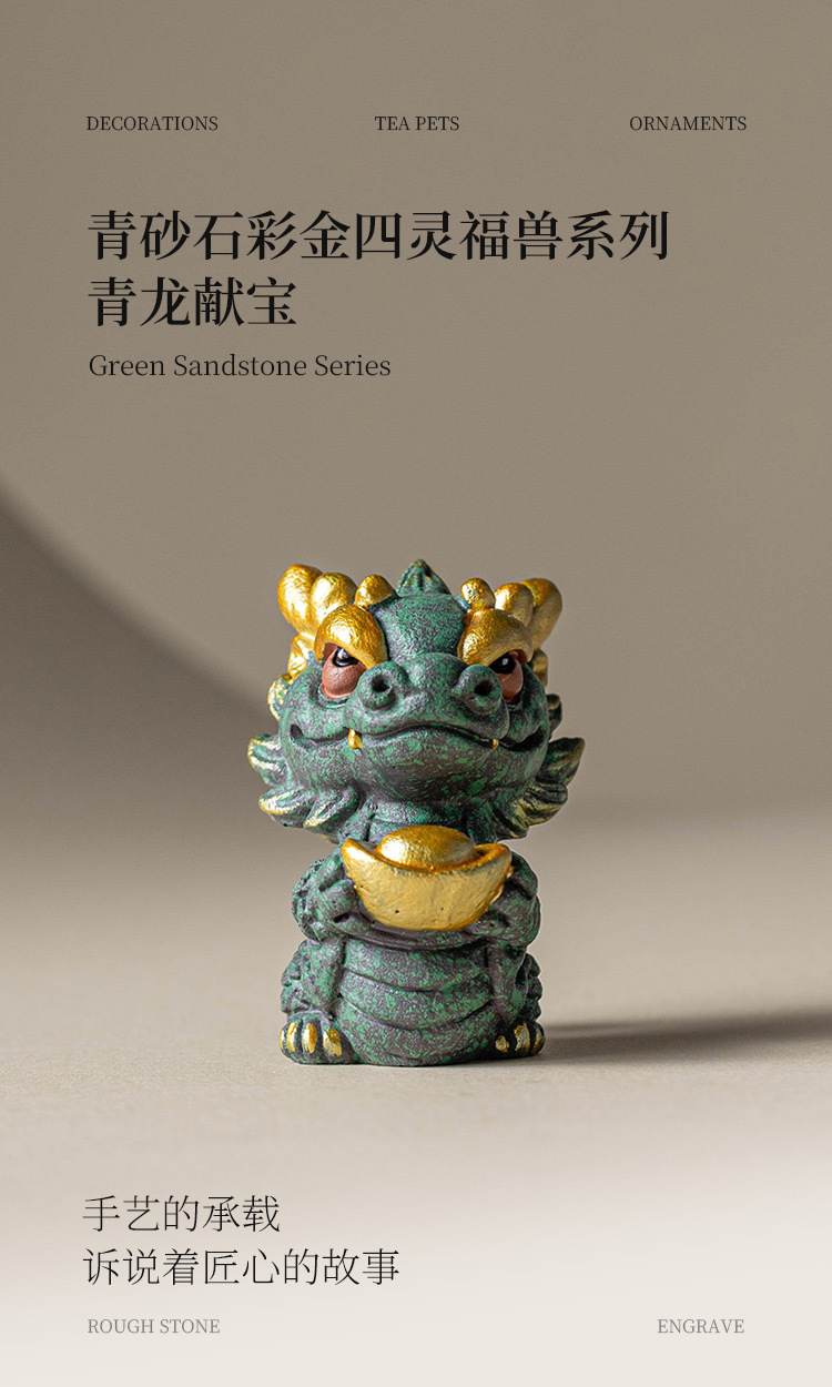 Nhà máy may mắn bốn linh hồn, con thú, thủy triều quốc gia, màu vàng, rồng xanh, đồ trang trí, đồ trang trí, phòng học, chặn giấy, linh vật thủ công