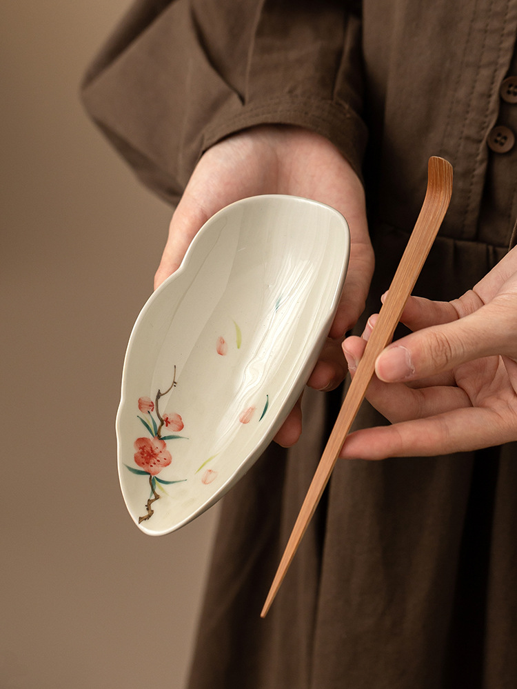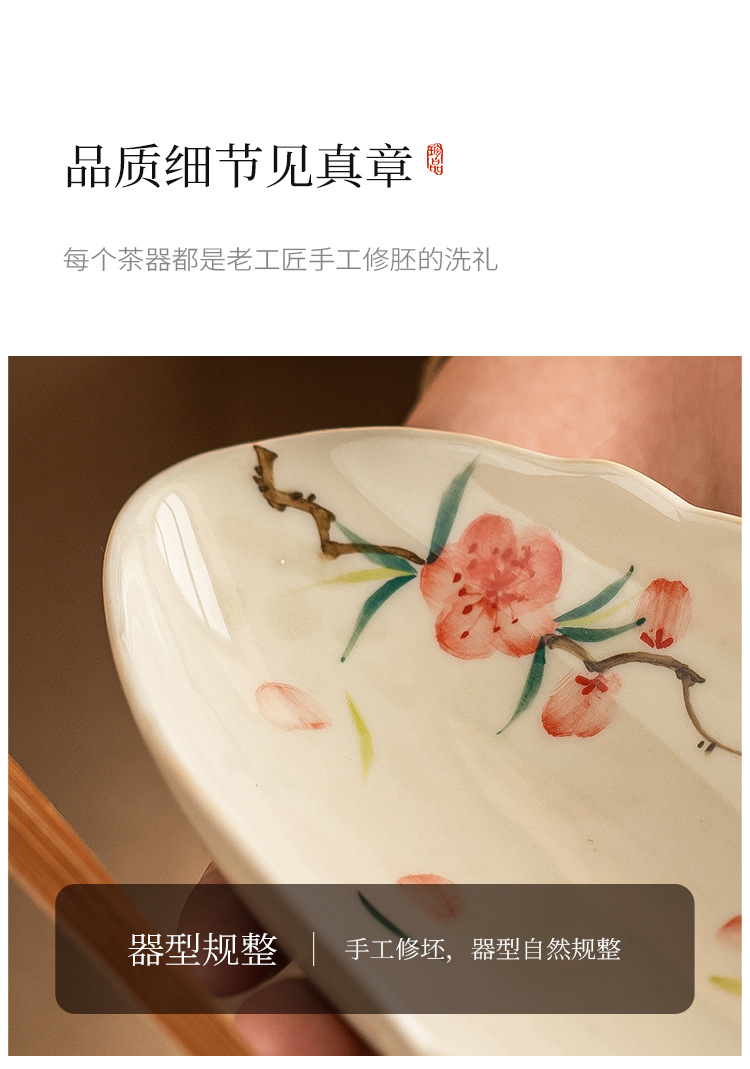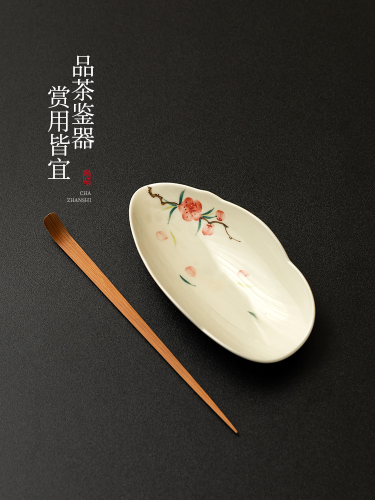 Nhà máy vẽ tay hoa đào, trà hoa sen gốm sứ, phụ kiện trà đạo hai mảnh, dụng cụ lấy trà, thưởng thức trà, trà tỉnh