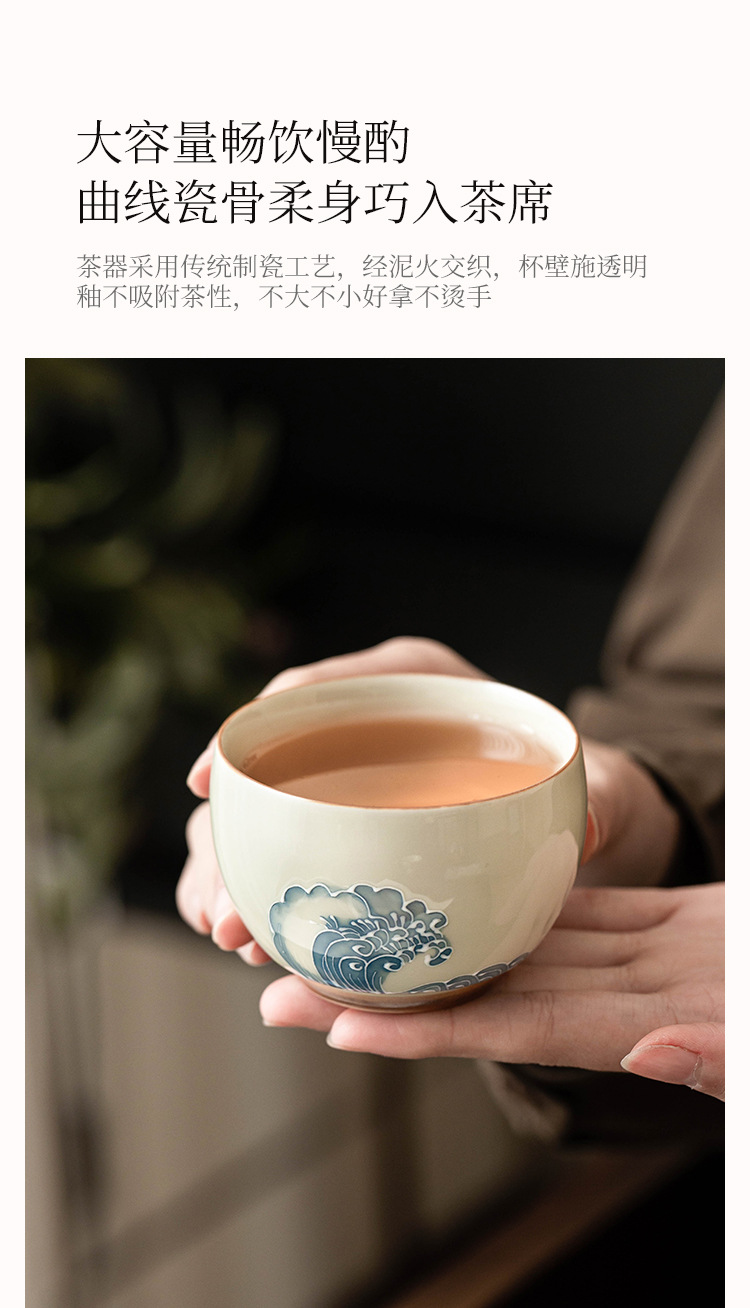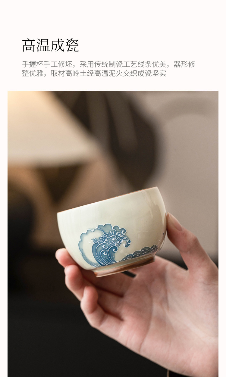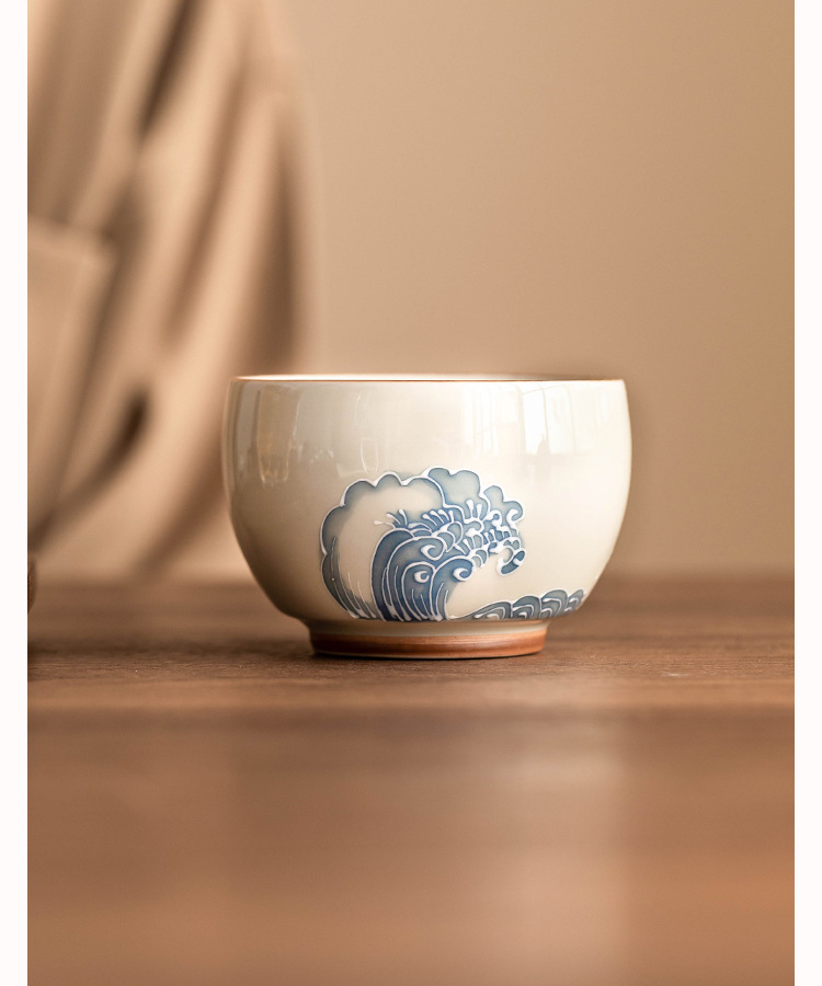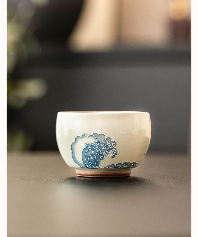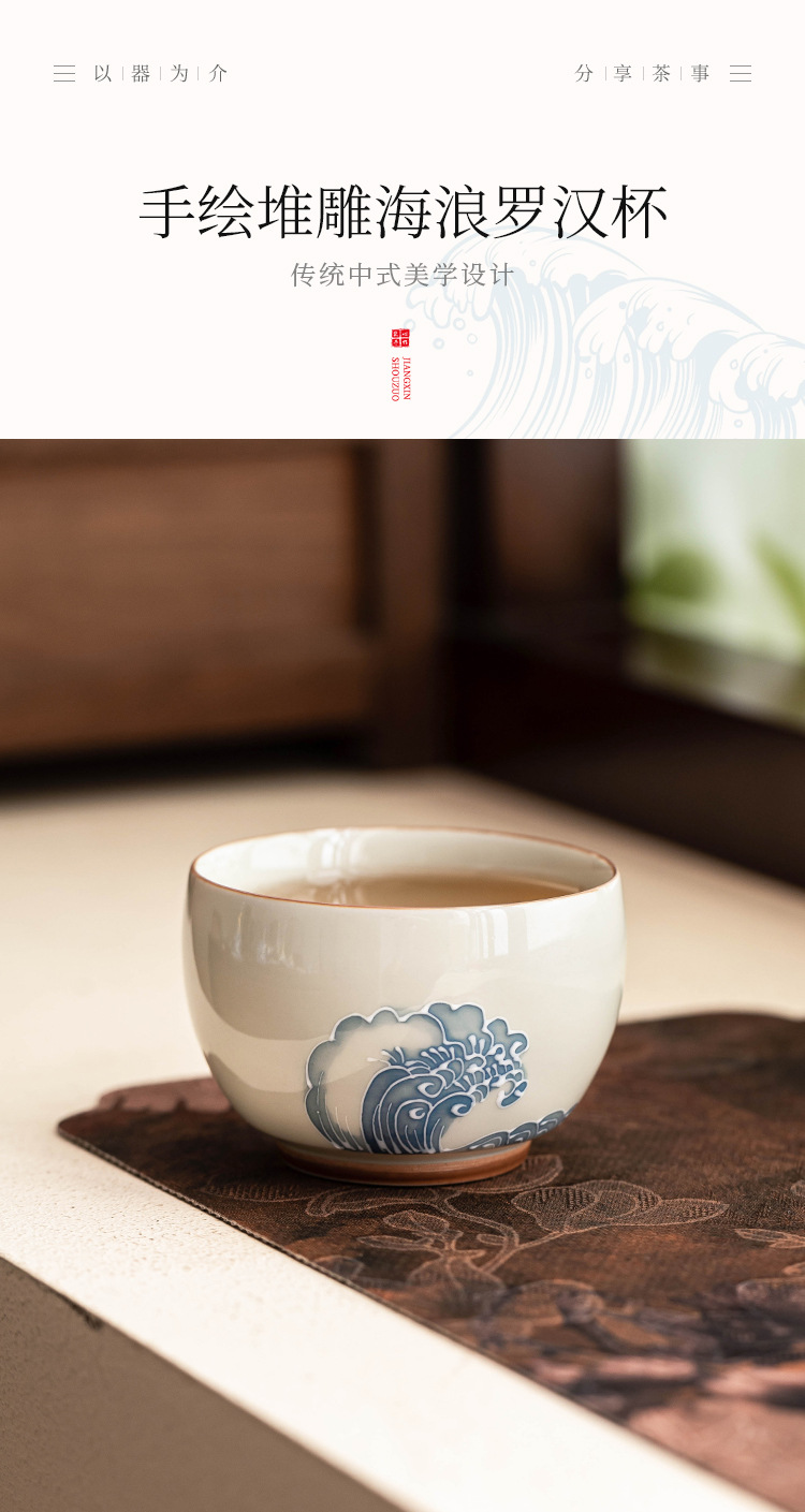 - Nhà máy xếp chồng chạm khắc sóng biển La Hán tách trà gốm sứ bộ trà lớn cốc chủ nhân tách trà vẽ tay tách trà