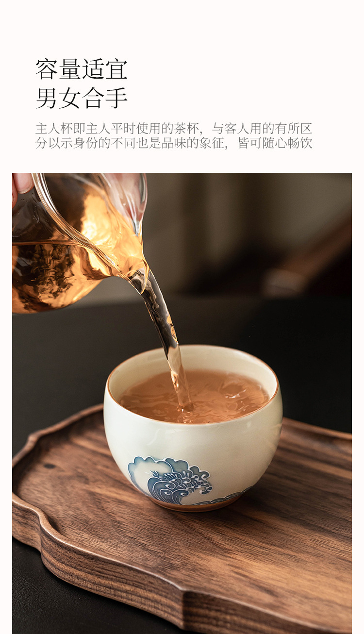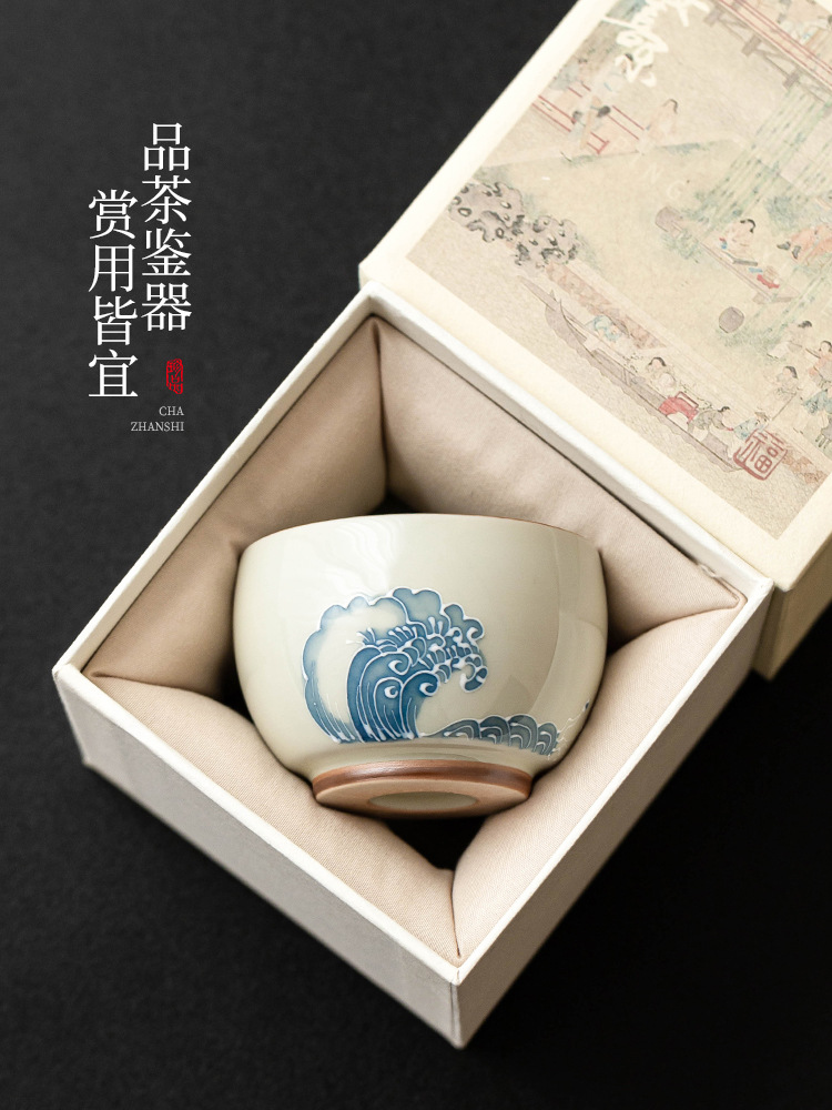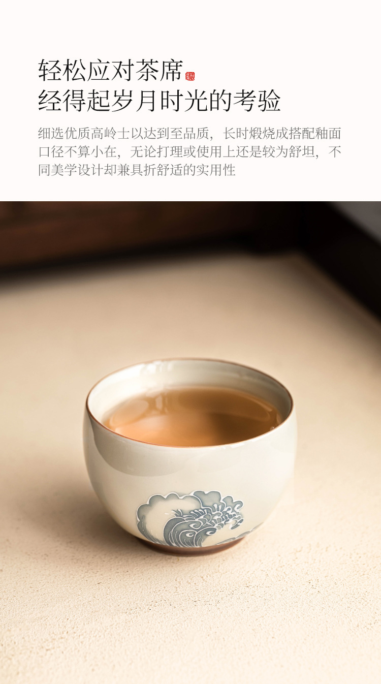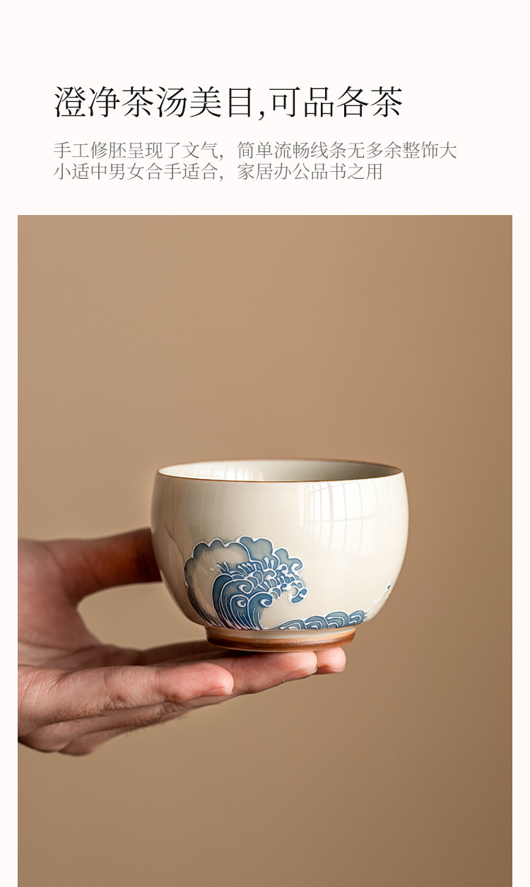 - Nhà máy xếp chồng chạm khắc sóng biển La Hán tách trà gốm sứ bộ trà lớn cốc chủ nhân tách trà vẽ tay tách trà