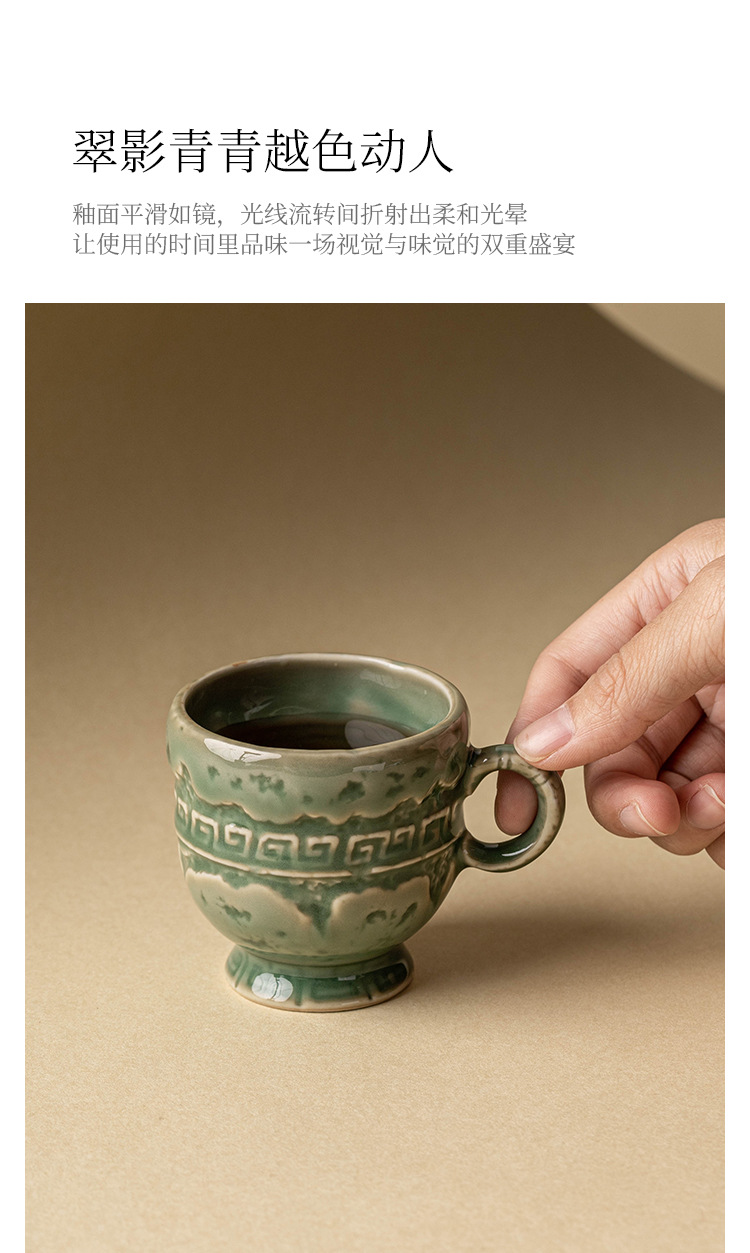 - Nhà máy Yue Kiln Bộ trà men ngọc Chén trà chân cao Qingyun Cốc trà gốm sứ Cốc chủ cổ Cốc trà