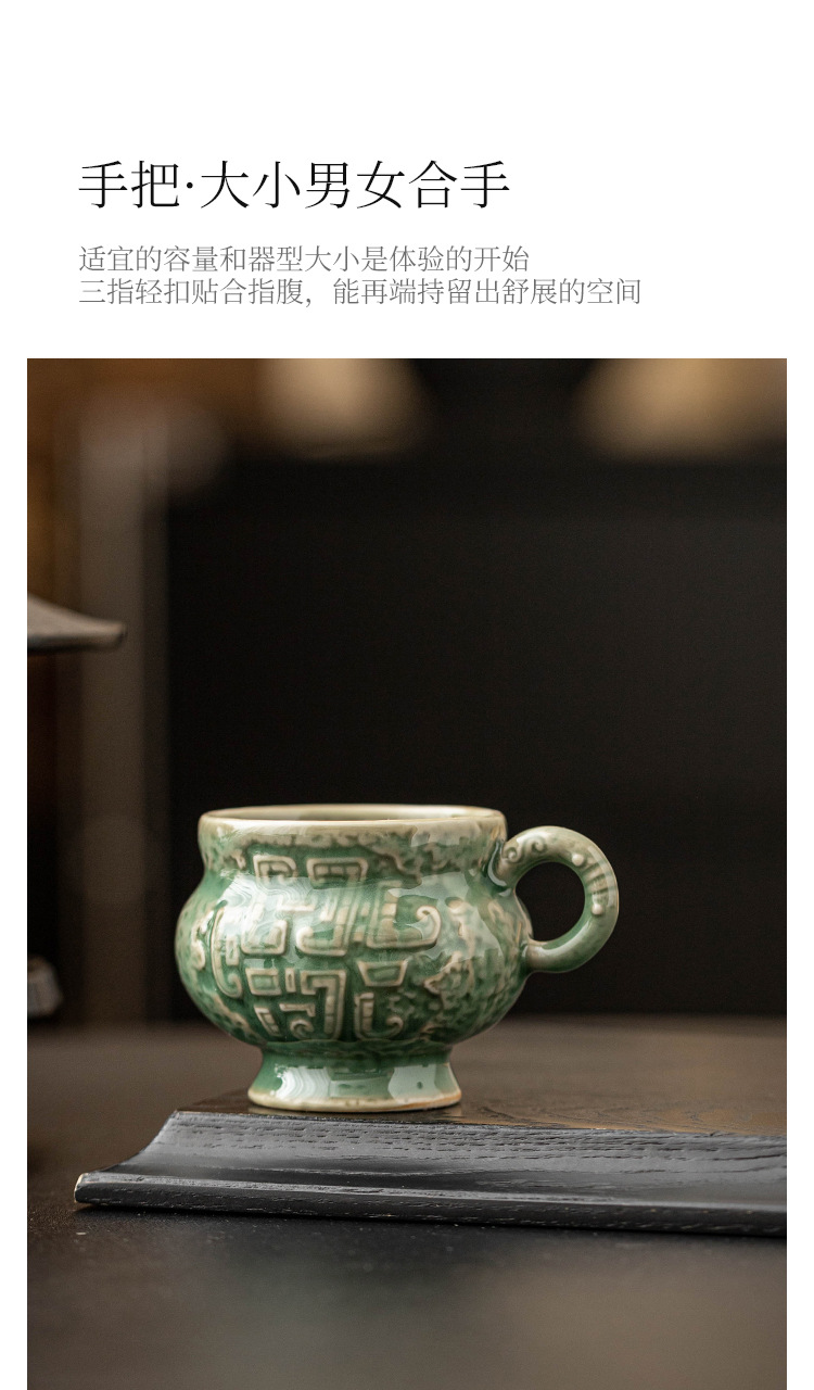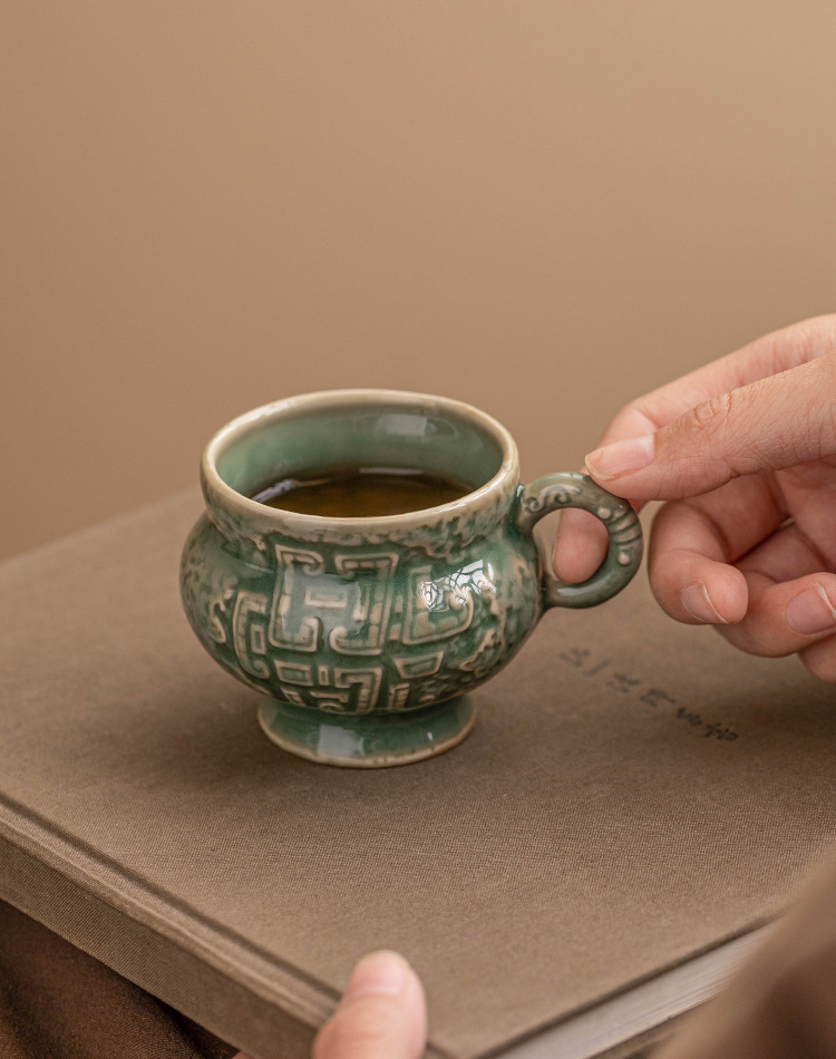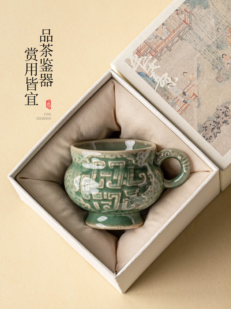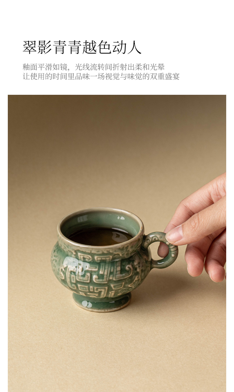 - Nhà máy Yue Kiln Bộ trà men ngọc Thanh vần tròn bụng uống trà nhỏ tách trà cao cấp chủ nhân sáng tạo cốc trà đơn