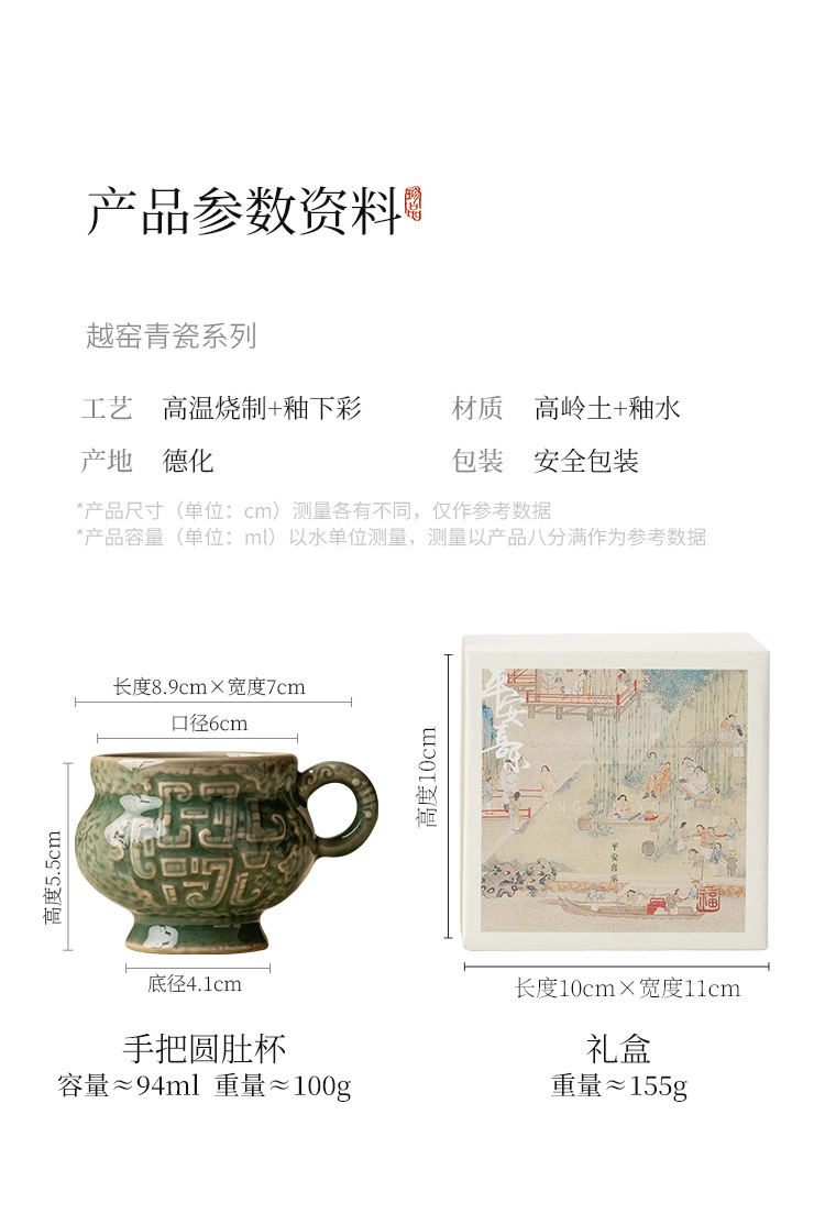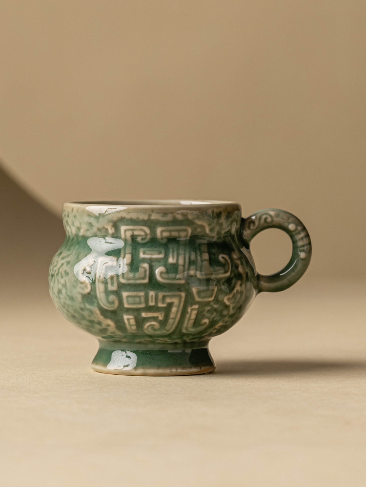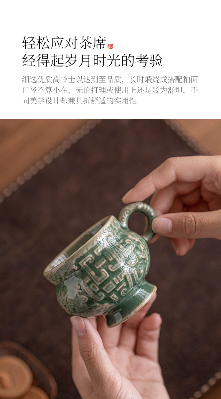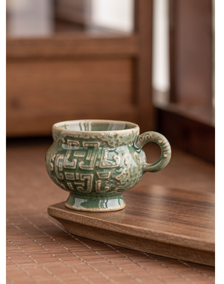 - Nhà máy Yue Kiln Bộ trà men ngọc Thanh vần tròn bụng uống trà nhỏ tách trà cao cấp chủ nhân sáng tạo cốc trà đơn