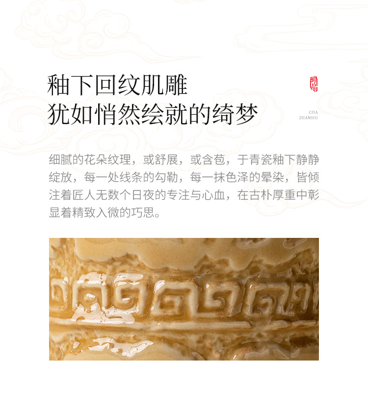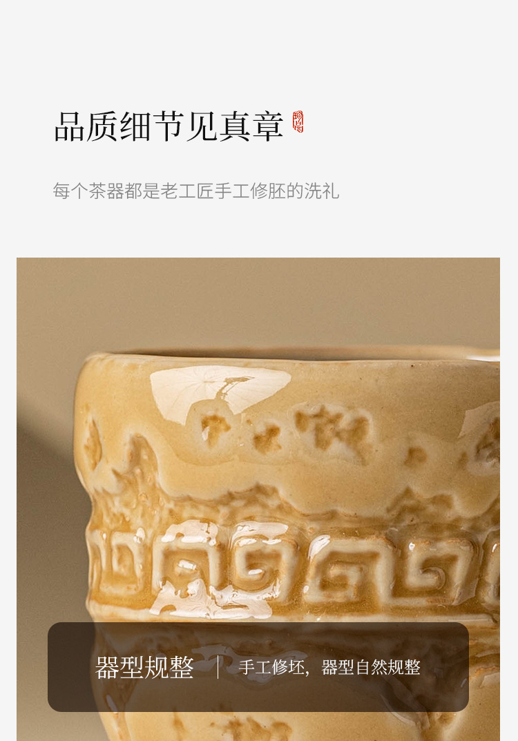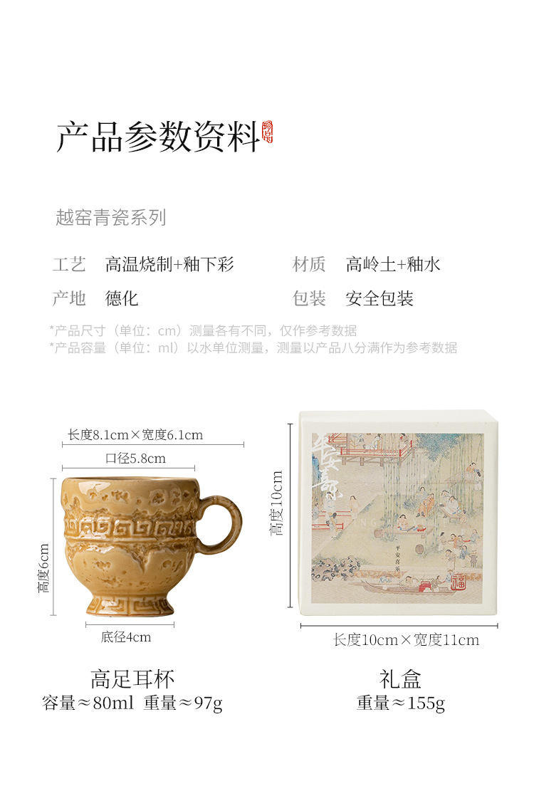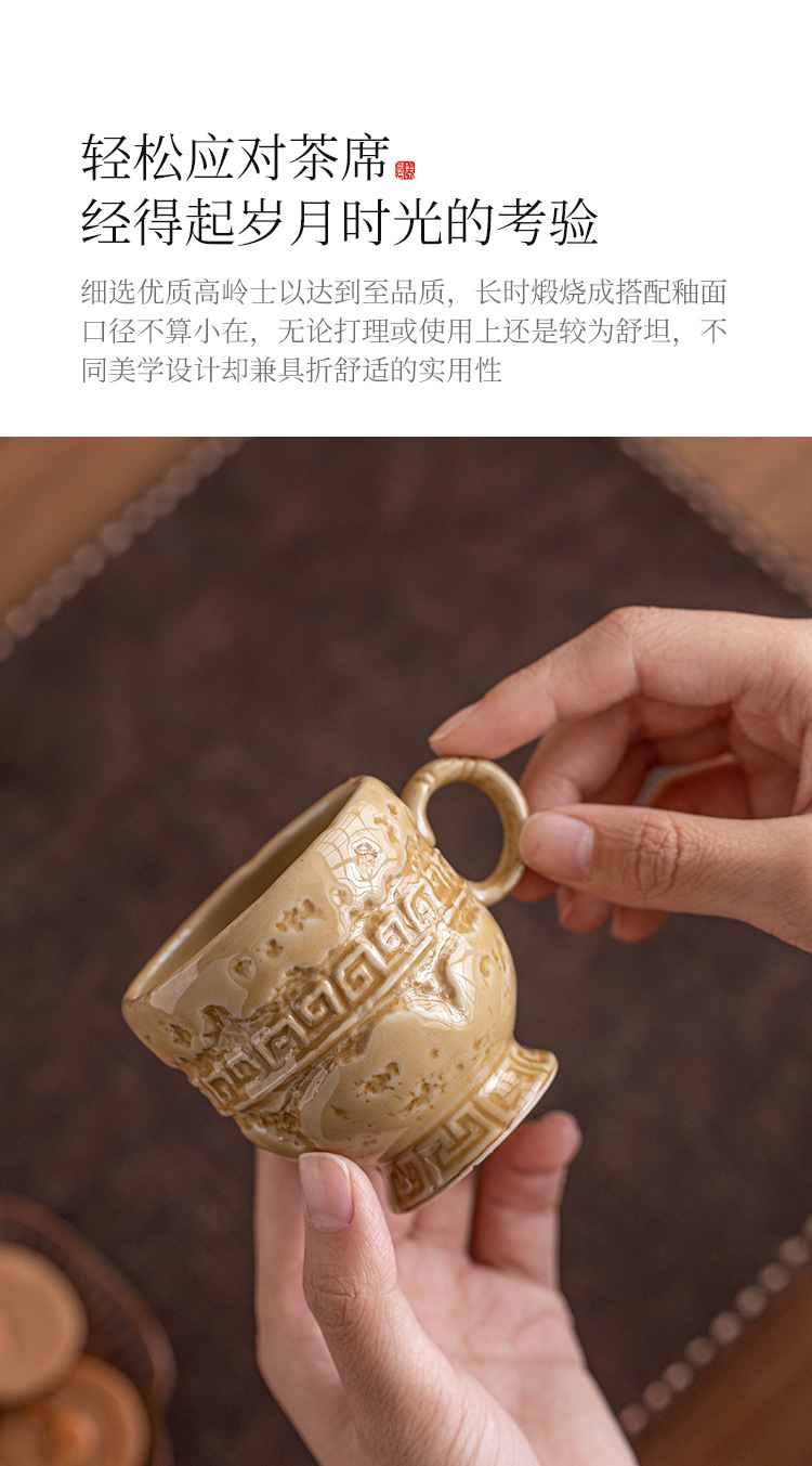 - Nhà máy Yue Kiln Celadon Master Cup Bộ ấm trà gốm sứ cổ điển Kung Fu Cup Teacup Gold Rhyme Cao Chân Cốc Trà