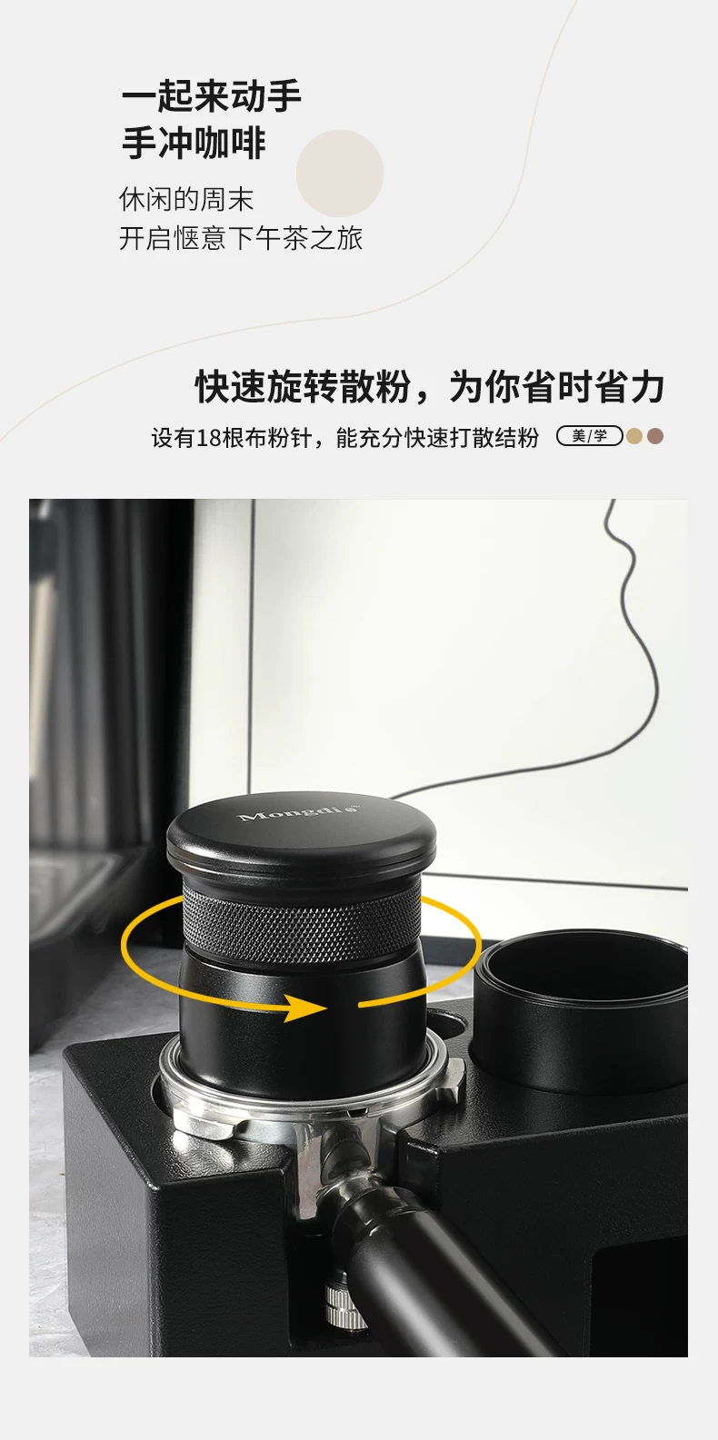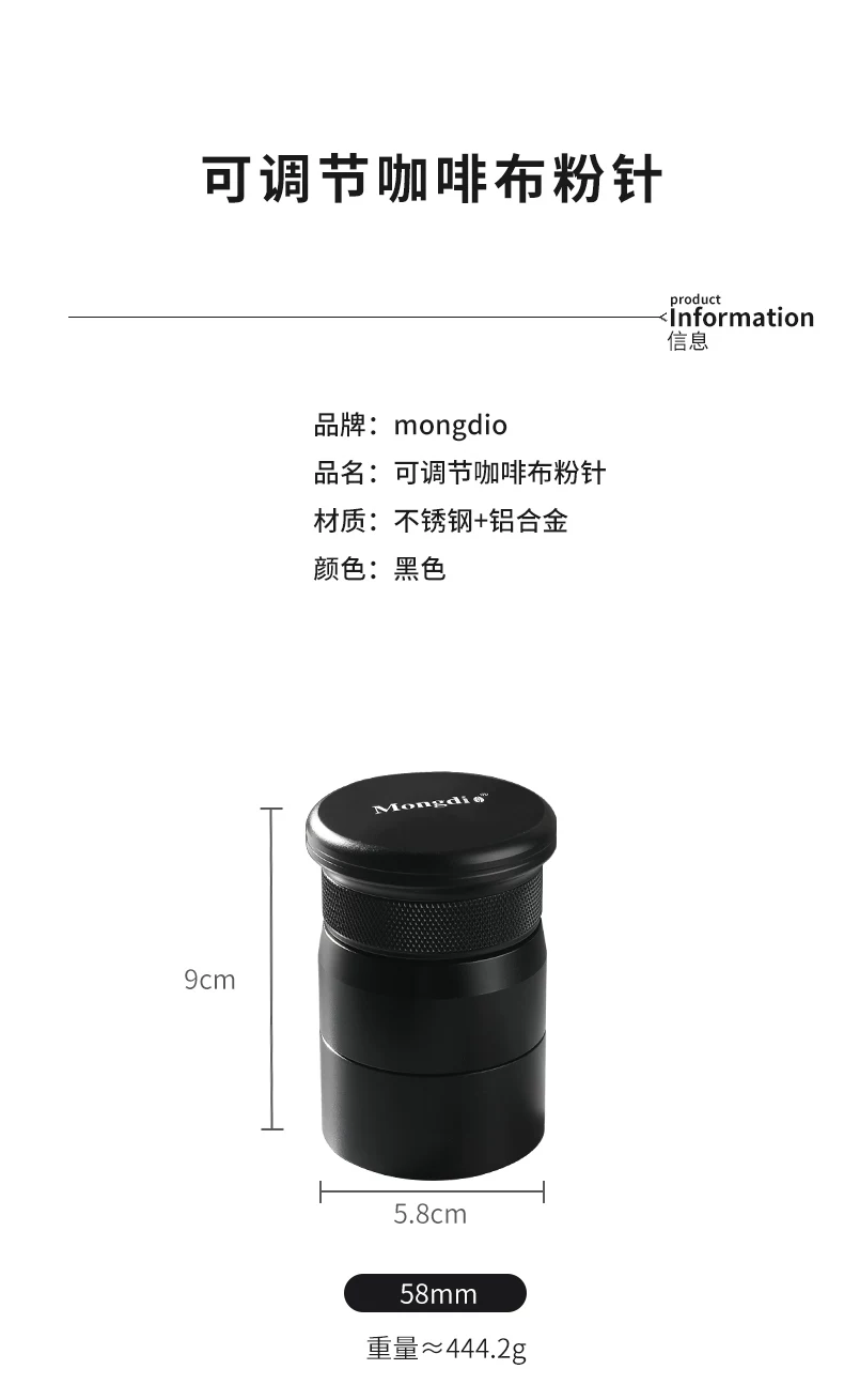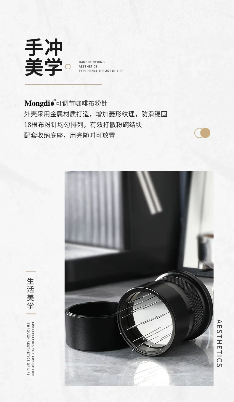 - Nhà phân phối bột cà phê Mongdio, máy phân phối bột dạng kim xoay có thể điều chỉnh, phân tán các cục và bột.