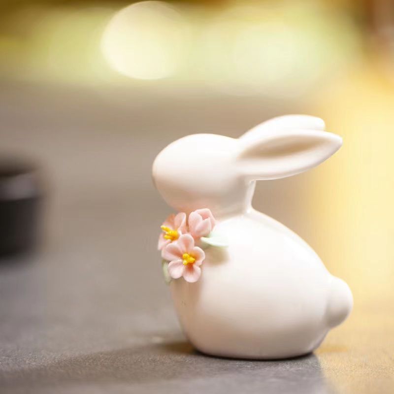 - Nhà sản xuất cung cấp hoa thủ công gốm sứ thỏ nhỏ đồ trang trí bàn trà Thỏ Gốm sứ có nắp trà Thỏ Gốm sứ