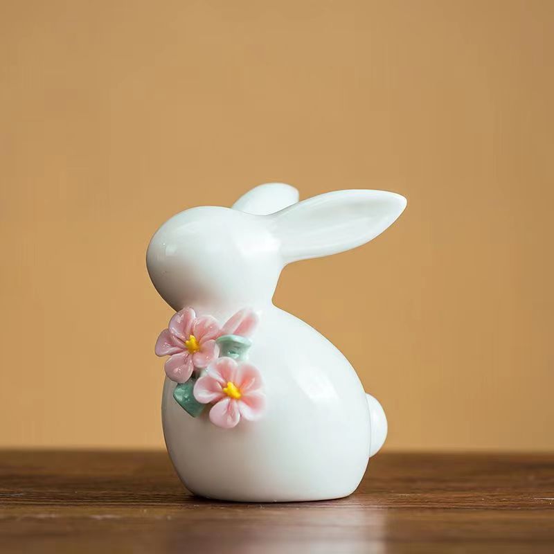 Nhà sản xuất cung cấp hoa thủ công gốm sứ thỏ nhỏ đồ trang trí bàn trà Thỏ Gốm sứ có nắp trà Thỏ Gốm sứ