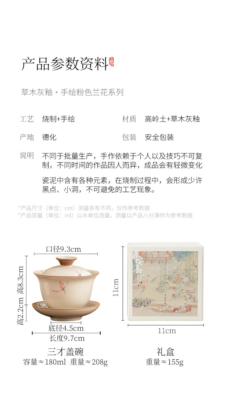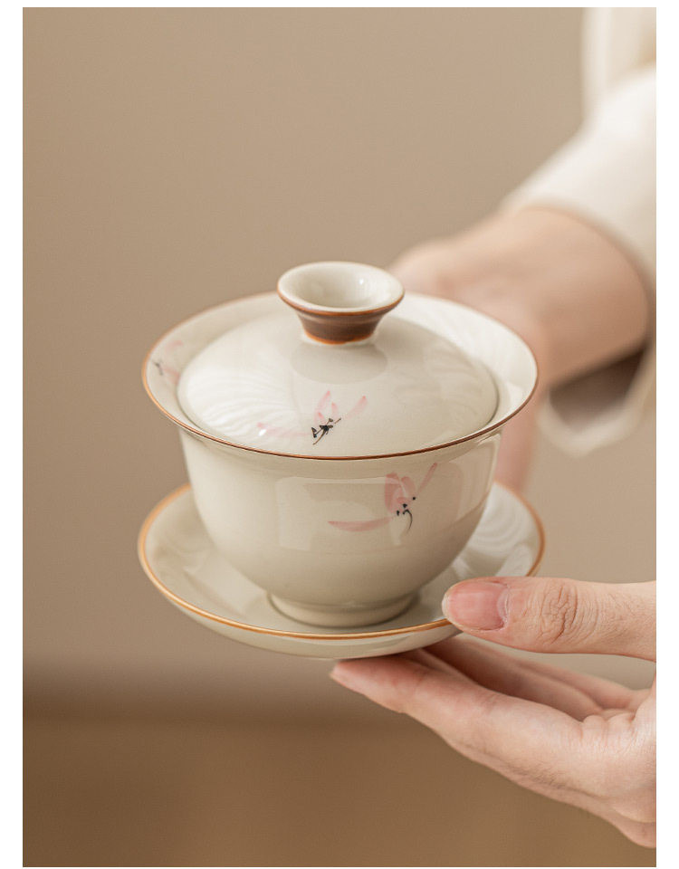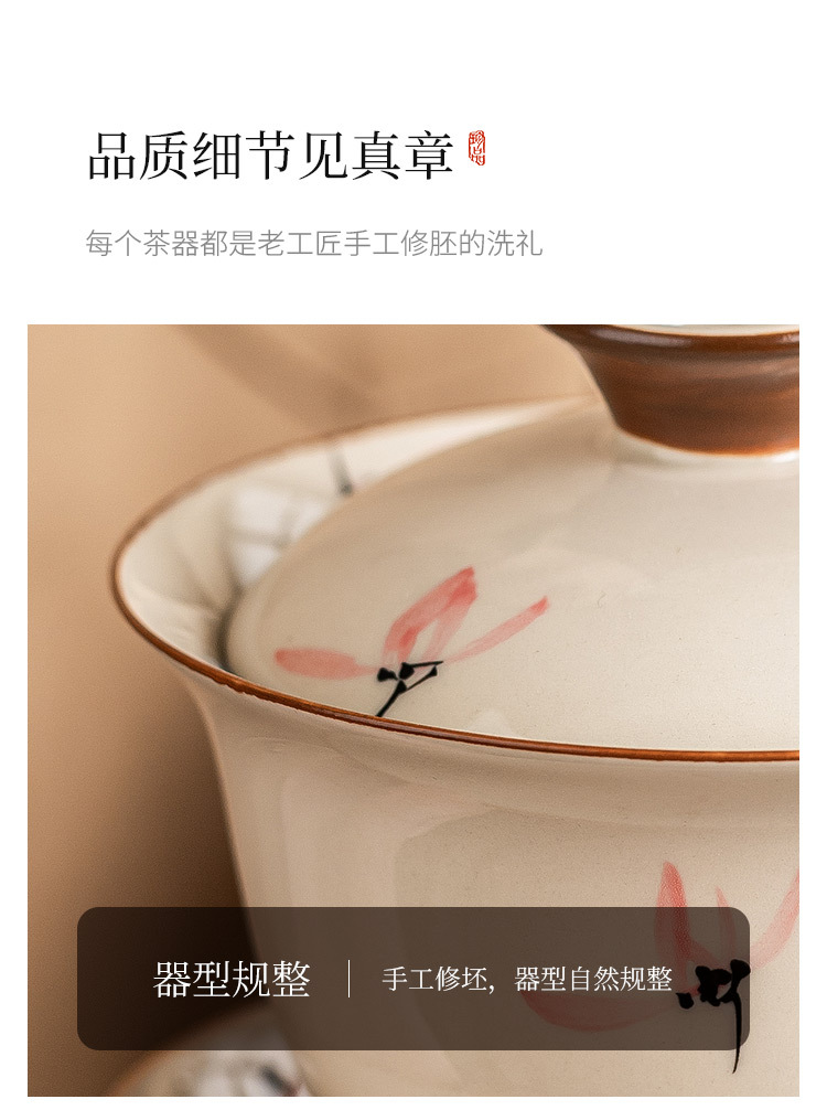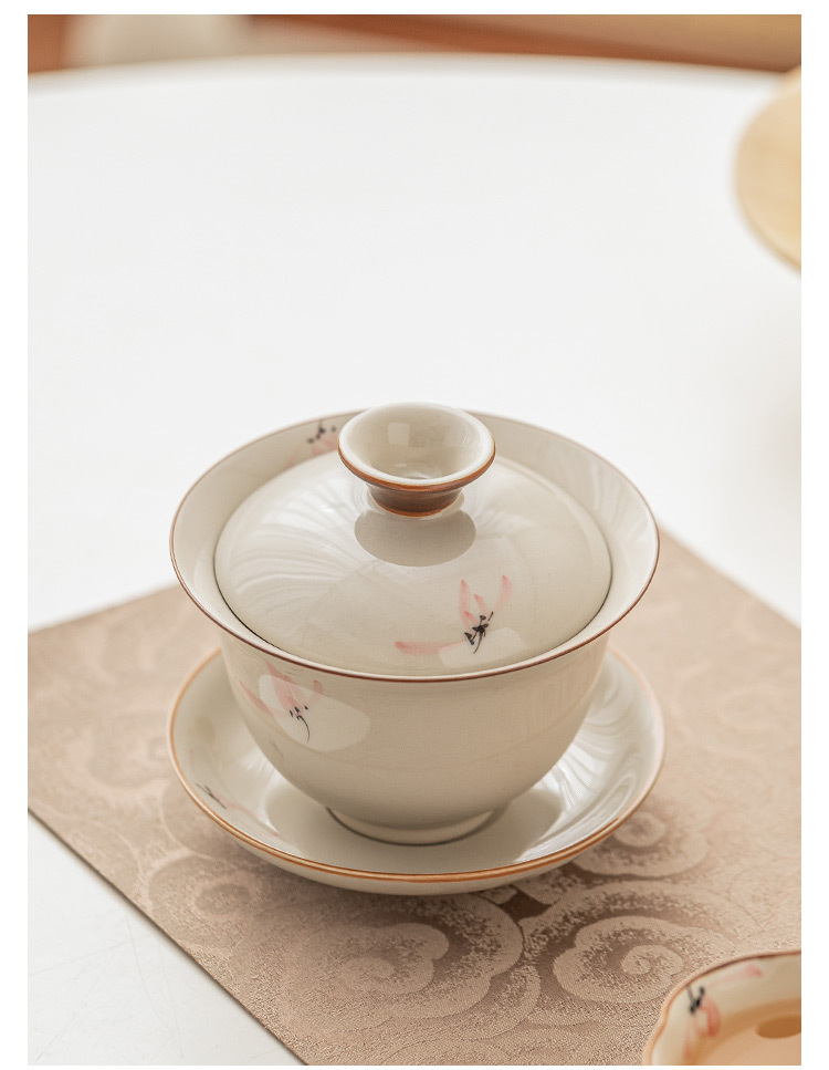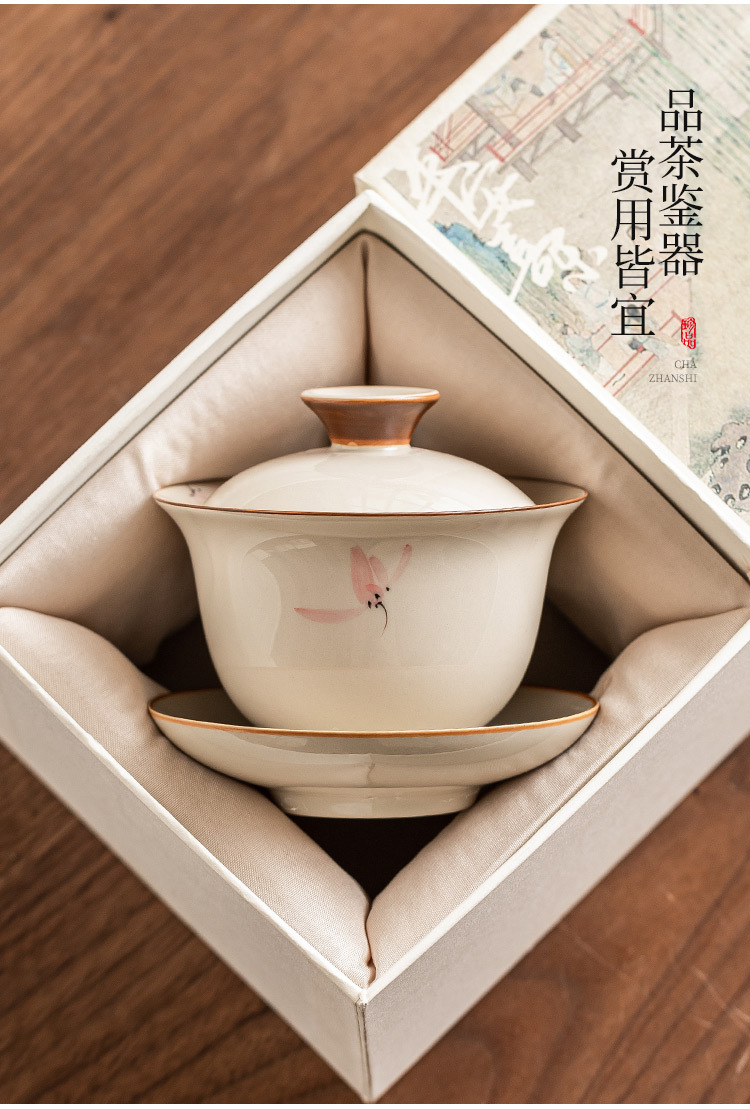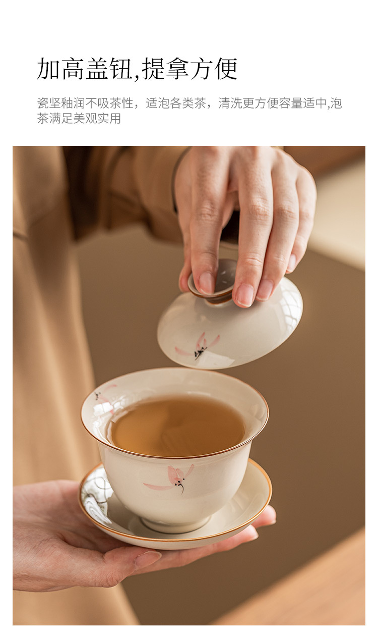 - Nhà xưởng vẽ tay hoa lan hồng tam tài nắp bát pha trà gốm sứ chống bỏng bộ trà kungfu gia dụng Trung Quốc dụng cụ pha trà