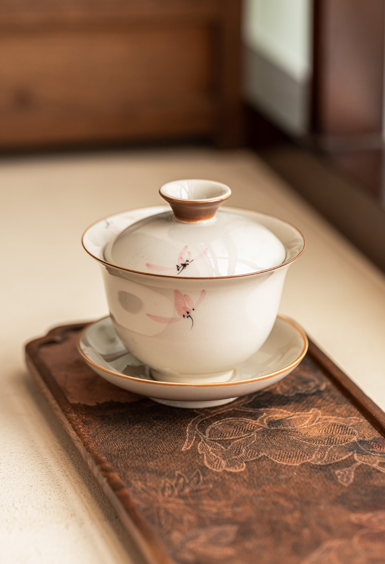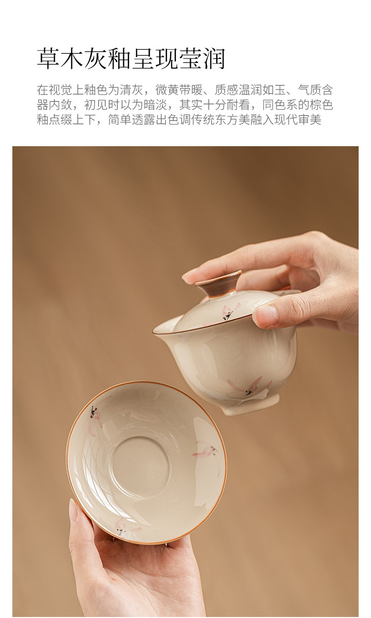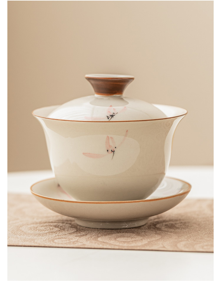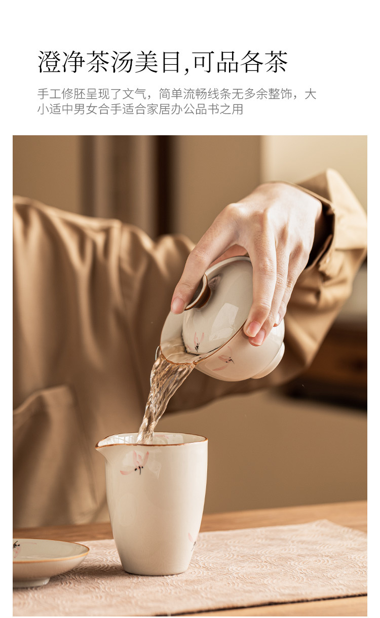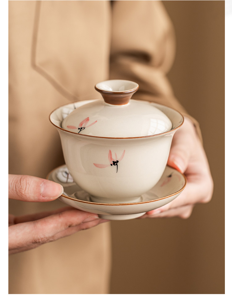 - Nhà xưởng vẽ tay hoa lan hồng tam tài nắp bát pha trà gốm sứ chống bỏng bộ trà kungfu gia dụng Trung Quốc dụng cụ pha trà