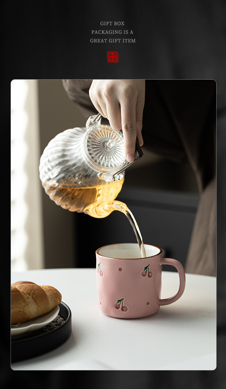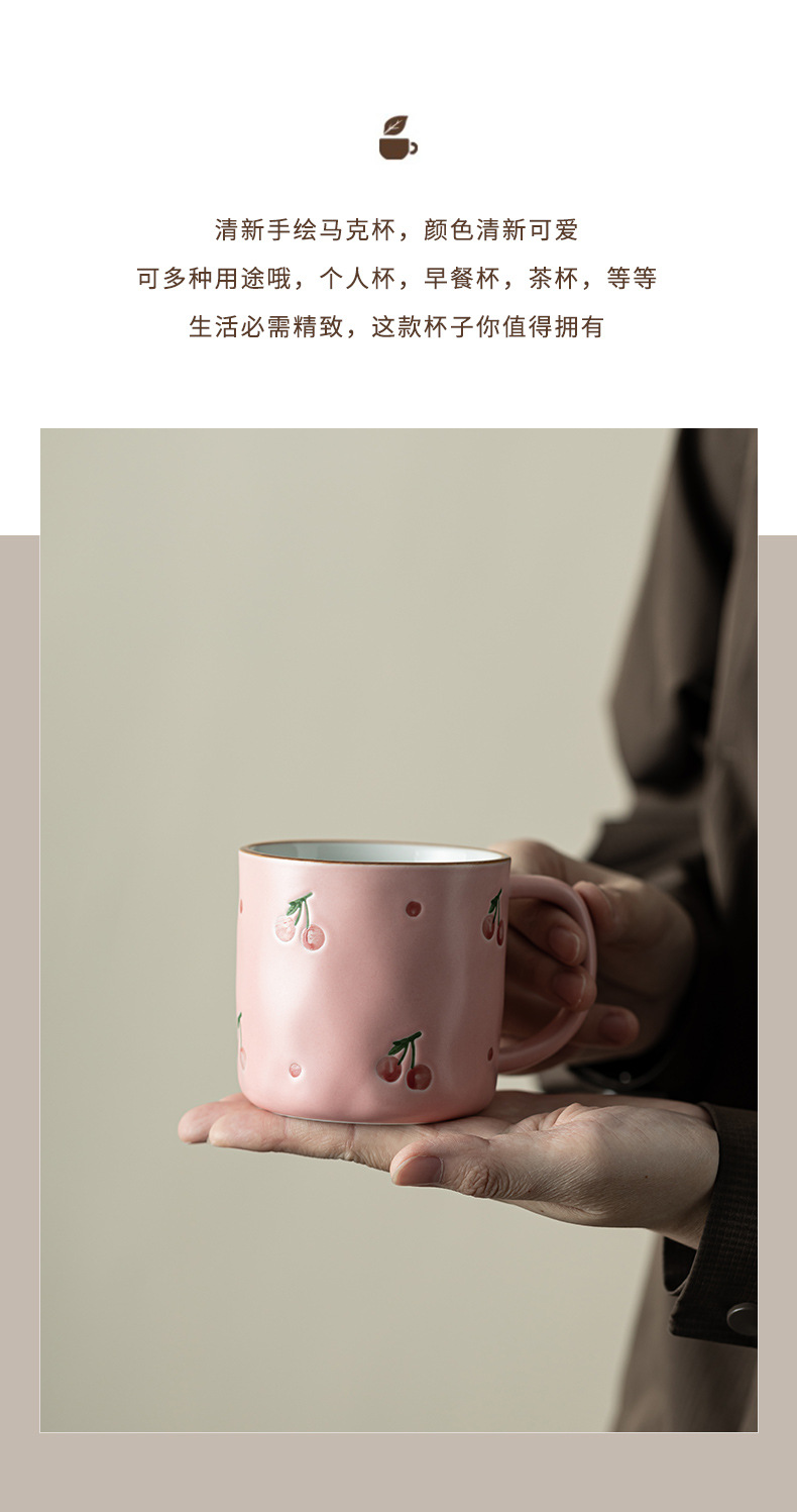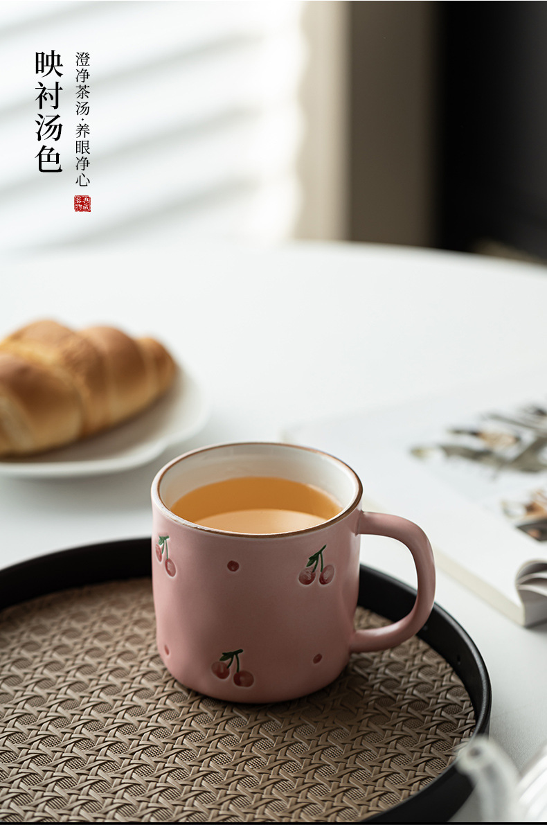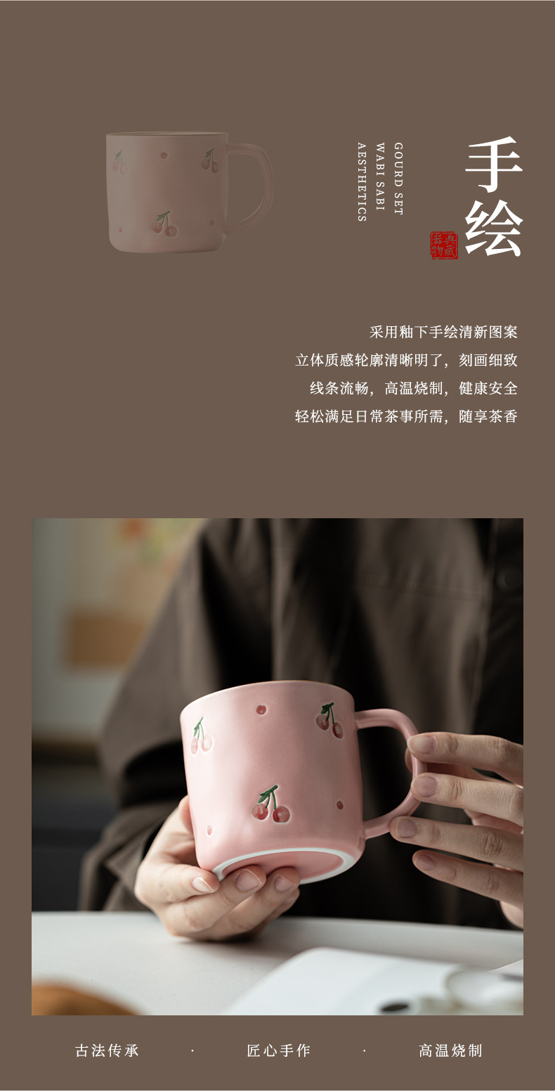 - Nhật Bản vẽ tay anh đào cốc gốm sứ gia dụng văn phòng cá nhân cốc nước cốc ăn sáng cốc cà phê cốc pha trà