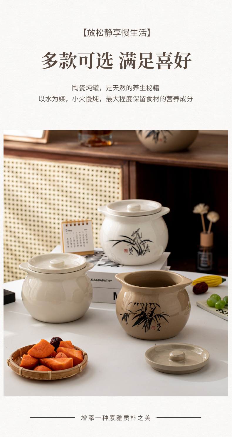 Nồi canh gia dụng một người, nồi hầm nhỏ, nồi hầm gốm sứ, bát trứng hấp có nắp, bát đặc biệt cho súp trứng hấp