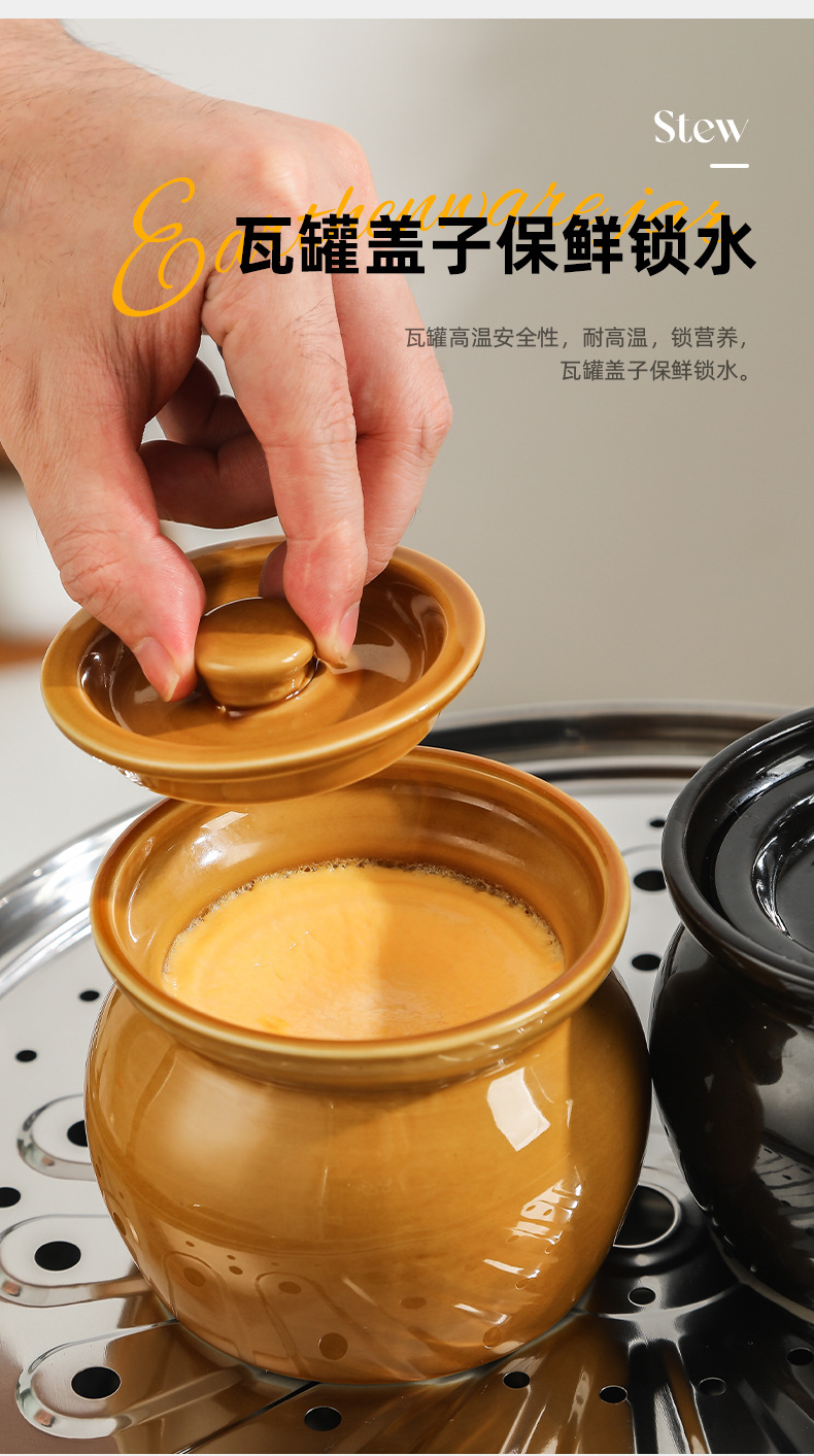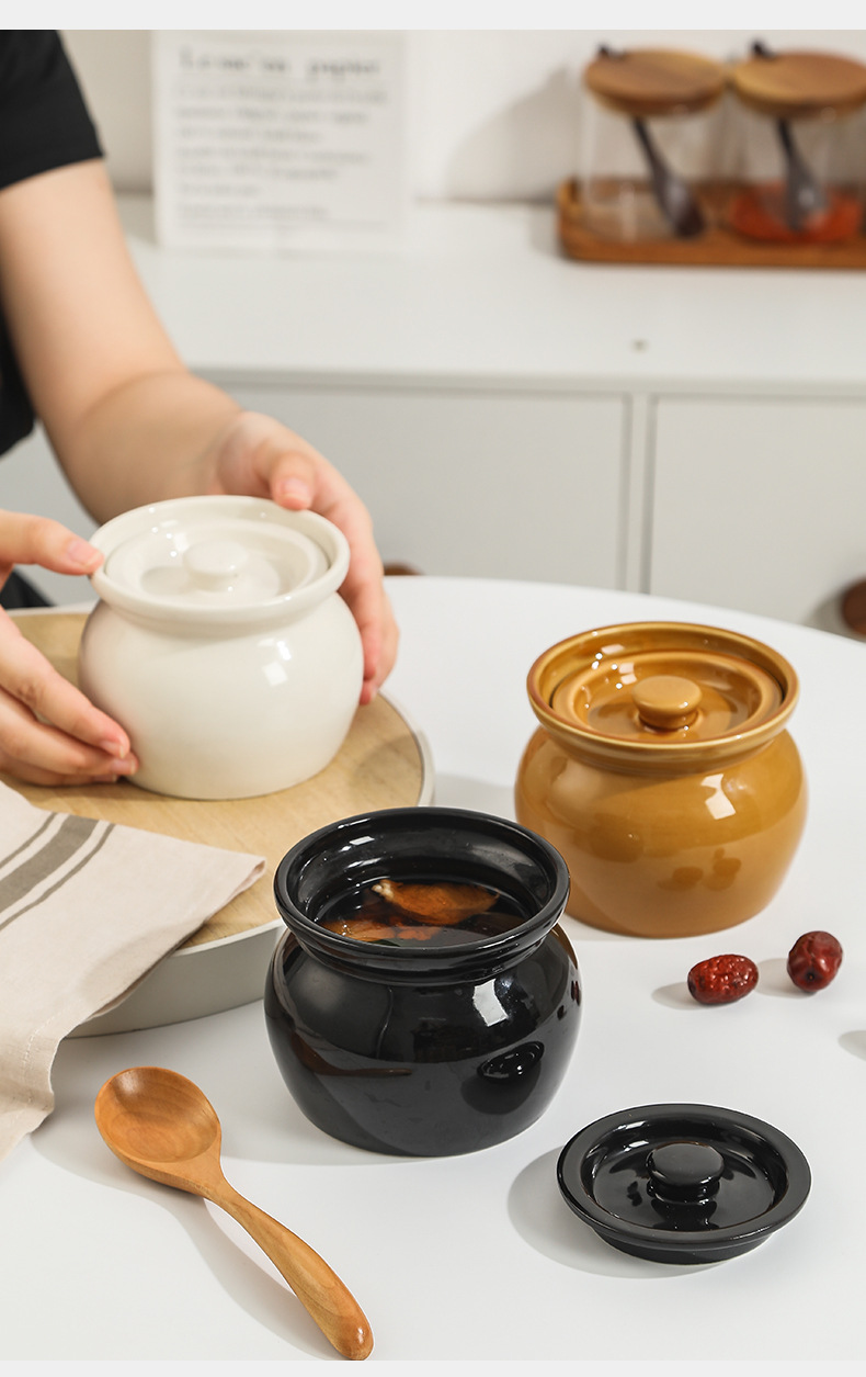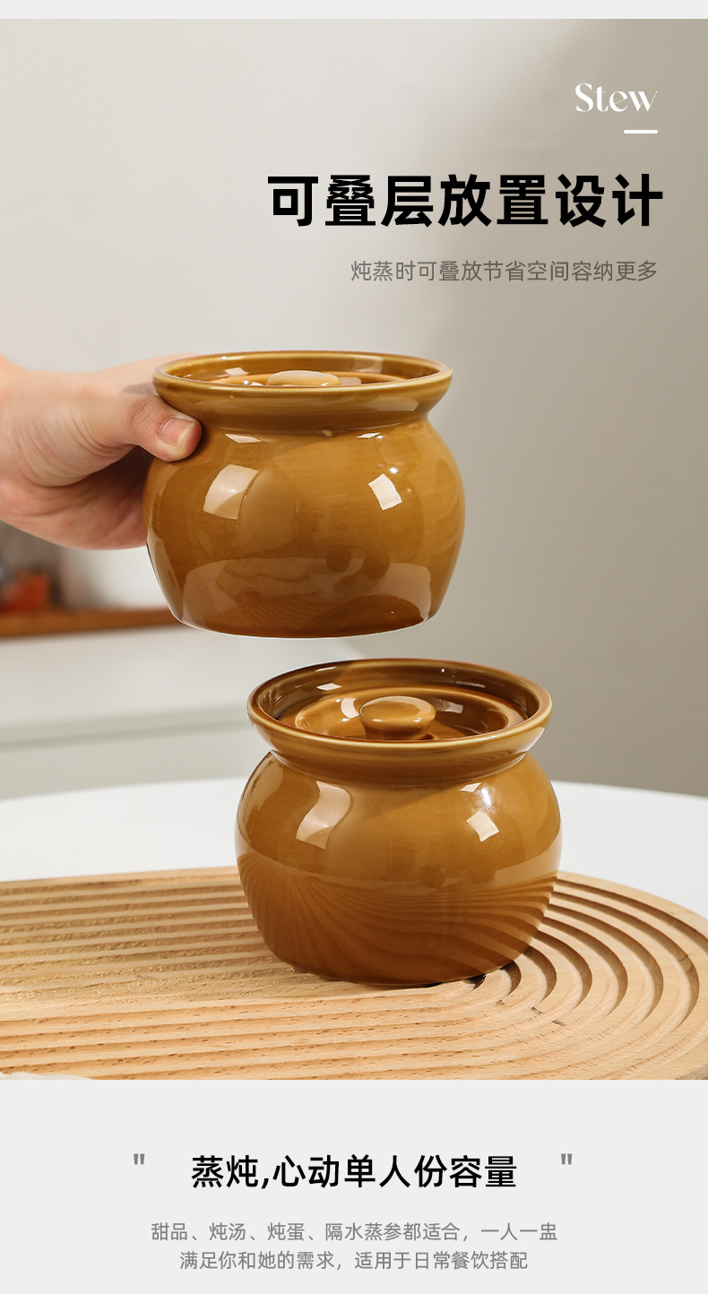 Nồi hầm sành hầm cách thủy, nồi hầm trứng hấp cho một người, nồi canh có nắp, đồ ăn nhẹ Shaxian kiểu Trung Quốc