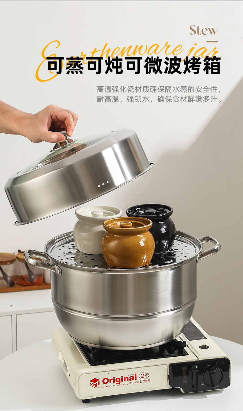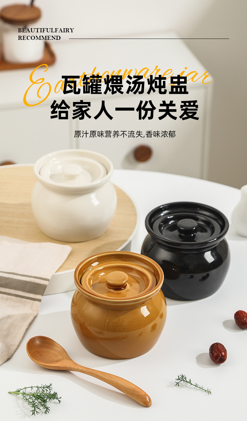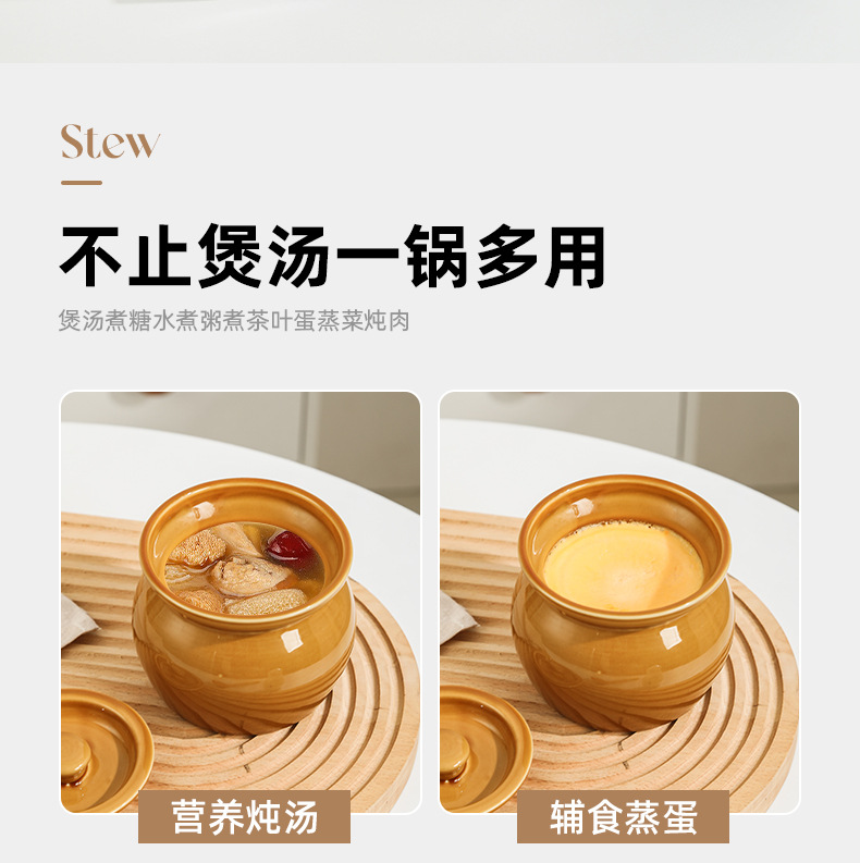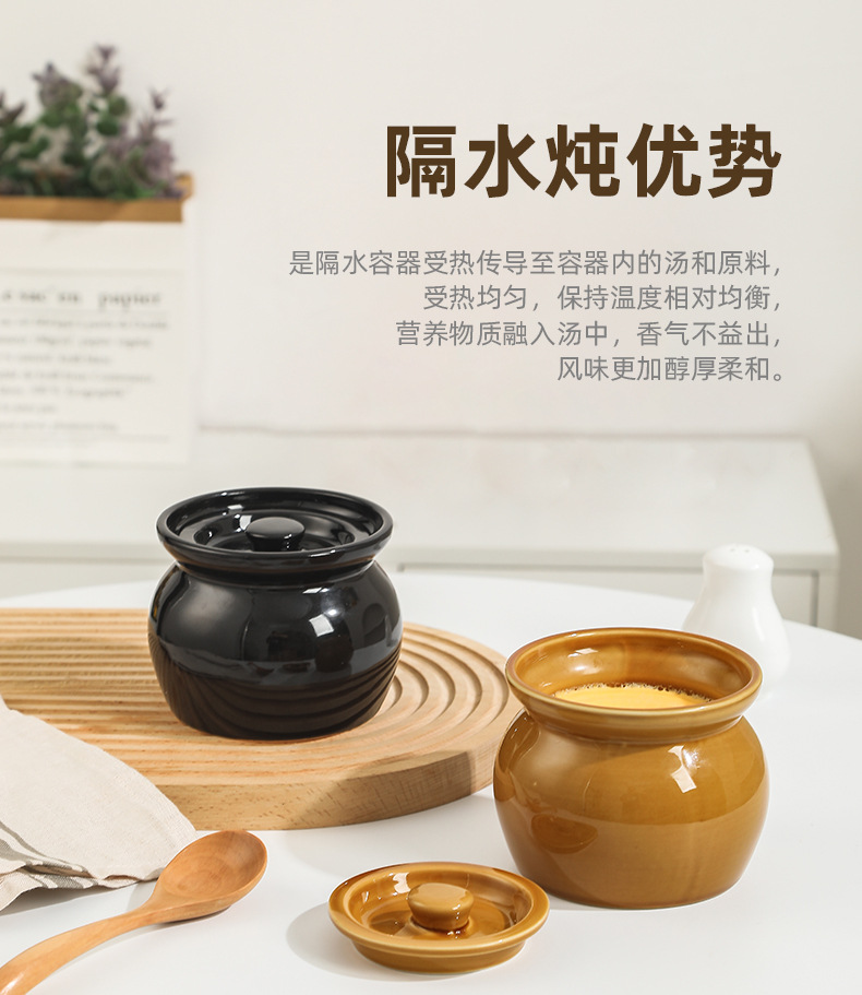Nồi hầm sành hầm cách thủy, nồi hầm trứng hấp cho một người, nồi canh có nắp, đồ ăn nhẹ Shaxian kiểu Trung Quốc