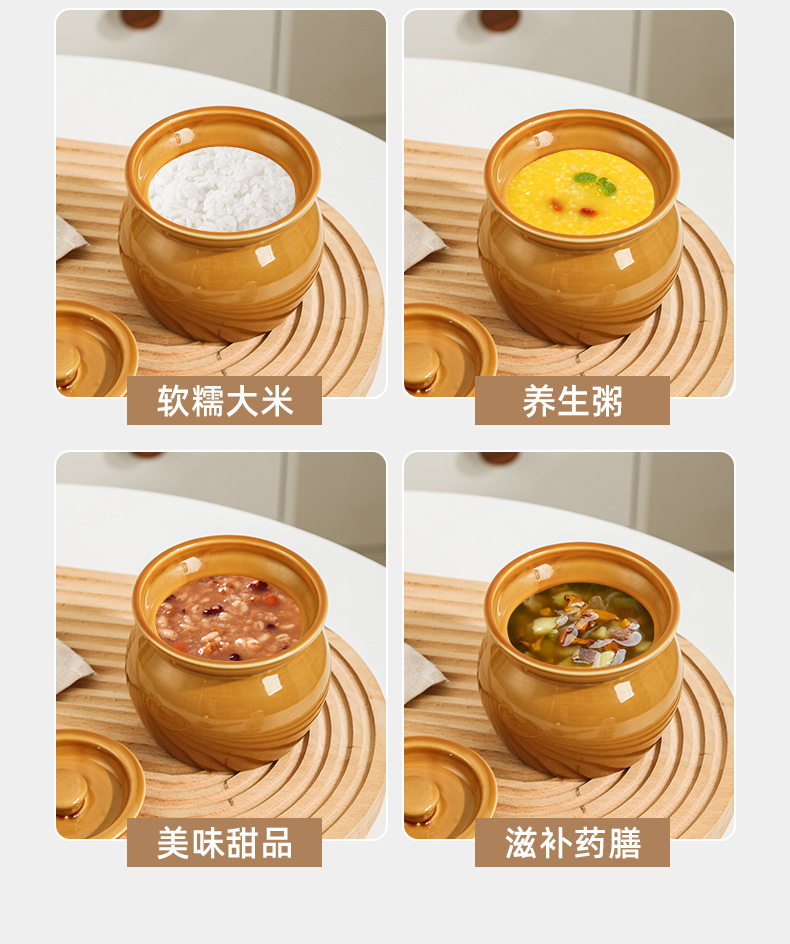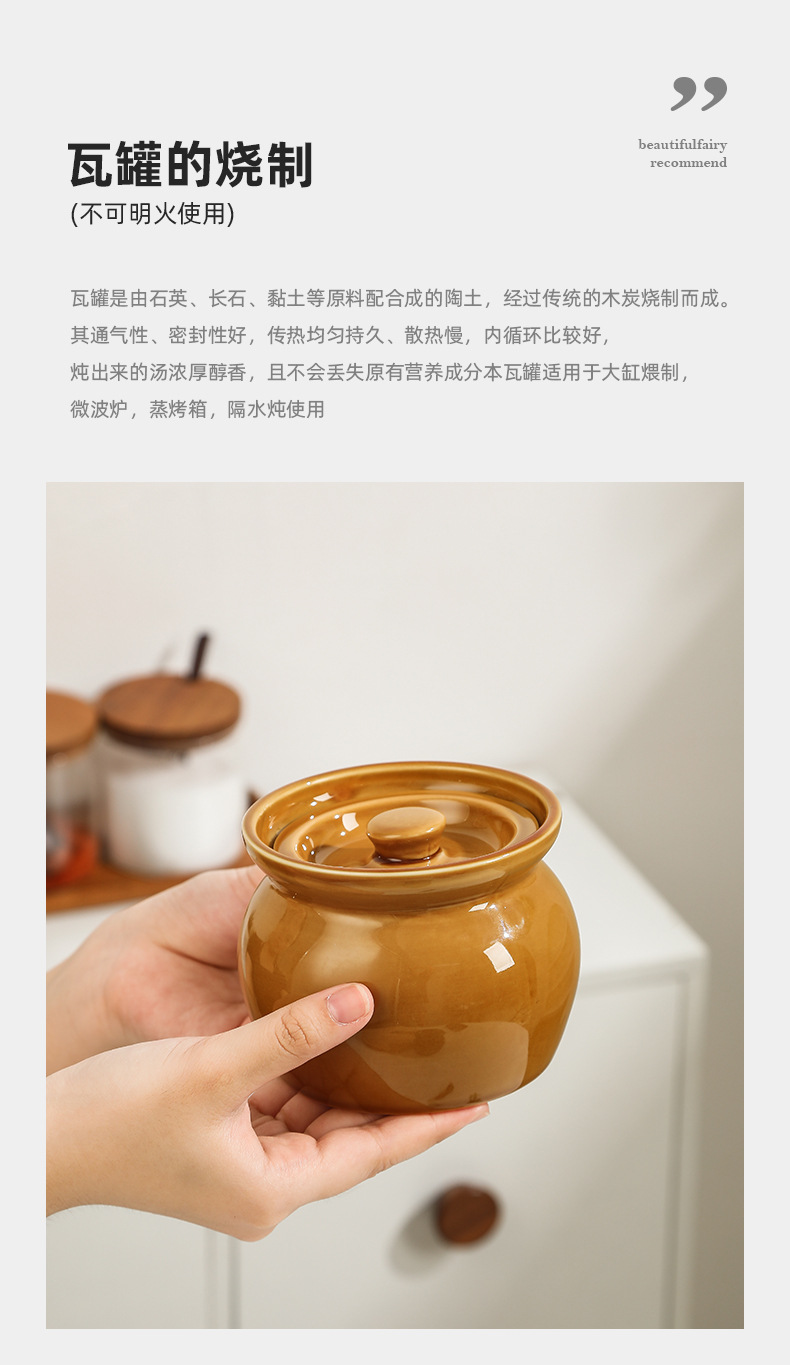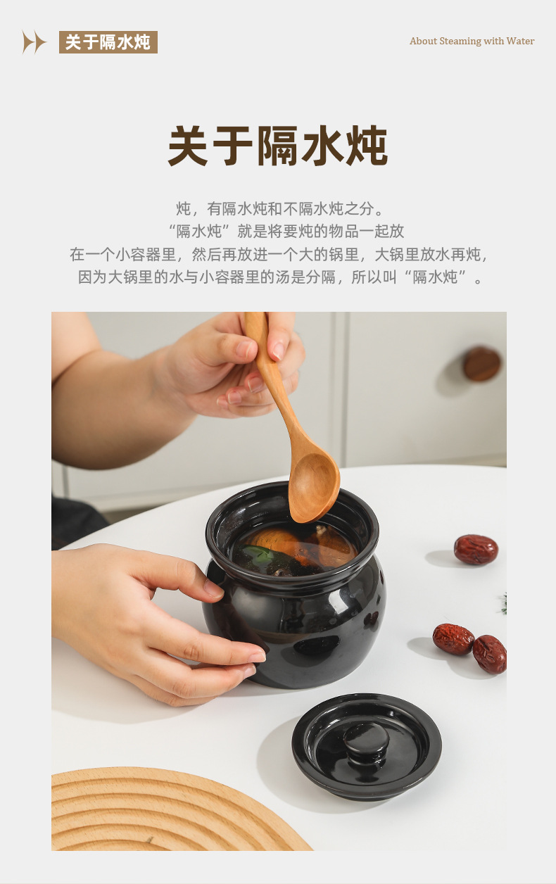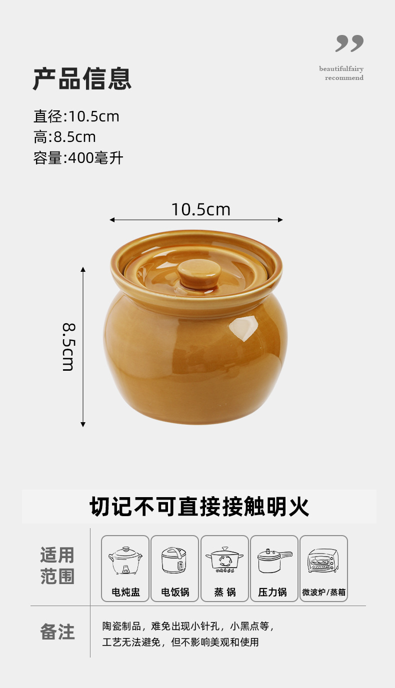 - Nồi hầm sành hầm cách thủy, nồi hầm trứng hấp cho một người, nồi canh có nắp, đồ ăn nhẹ Shaxian kiểu Trung Quốc