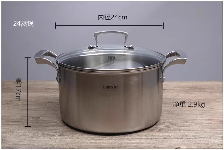 Nồi hầm sâu lòng LunKai 26, chất liệu thép không gỉ 304, dùng cho gia đình, nồi hấp, nồi nấu, dày dặn để hầm thịt, tương thích với bếp gas và bếp từ.