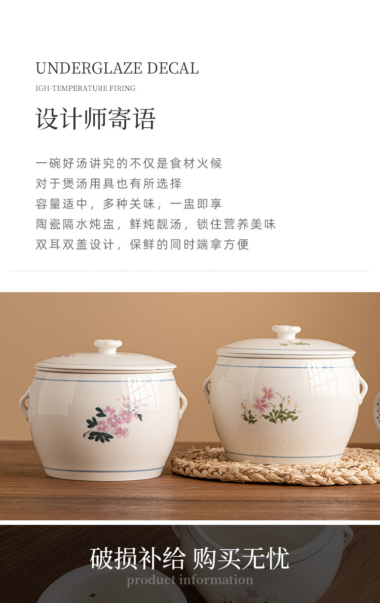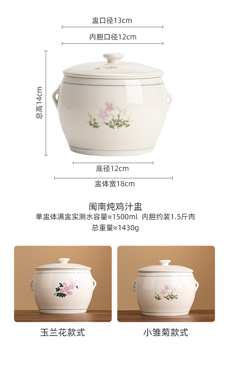 Nồi hầm súp Minnan Yitang hầm cách thủy, Nồi Hầm gia dụng có lỗ, Nồi Hầm gốm sứ cỡ lớn, Nồi Hầm nhỏ