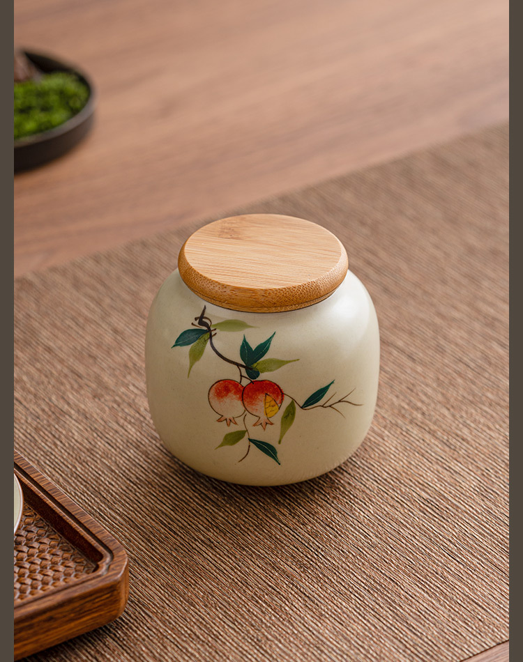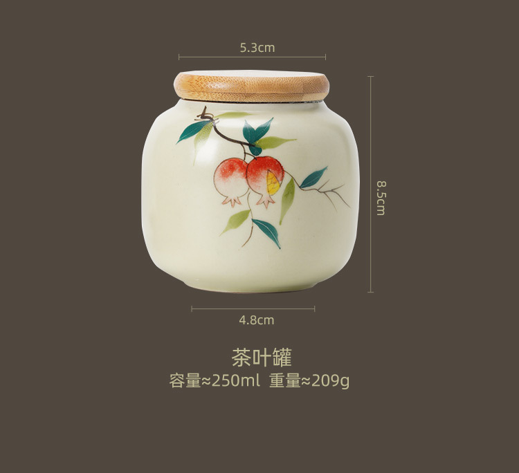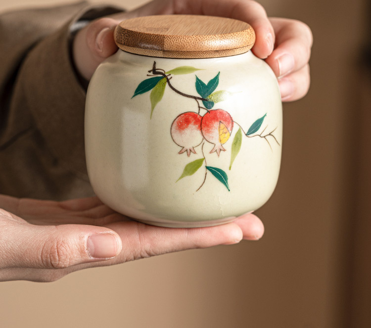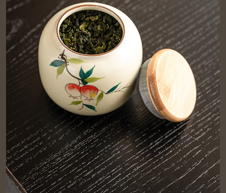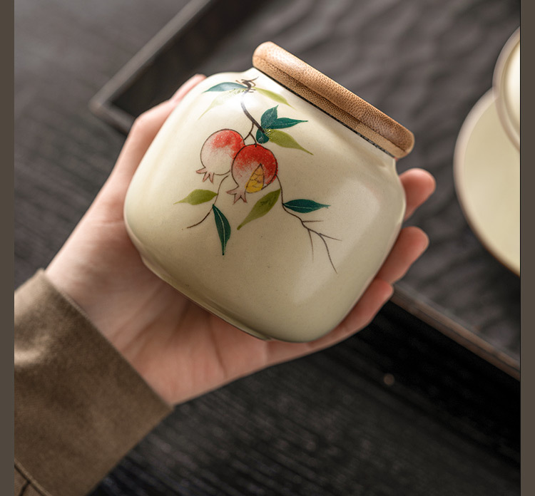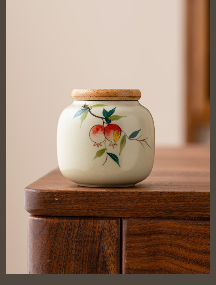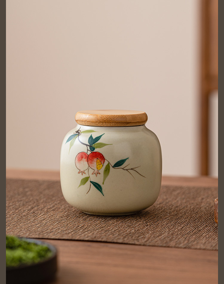 Nồi trà lựu vẽ tay Ru Kiln, bình kín cầm tay chống ẩm nhỏ, bình đựng trà nắp tre gia dụng, kho trà gốm sứ