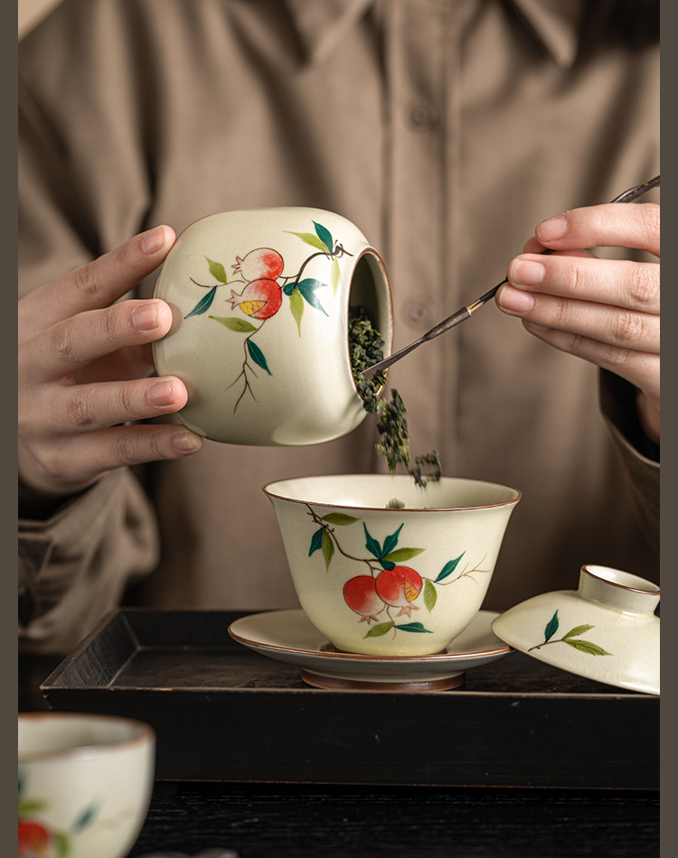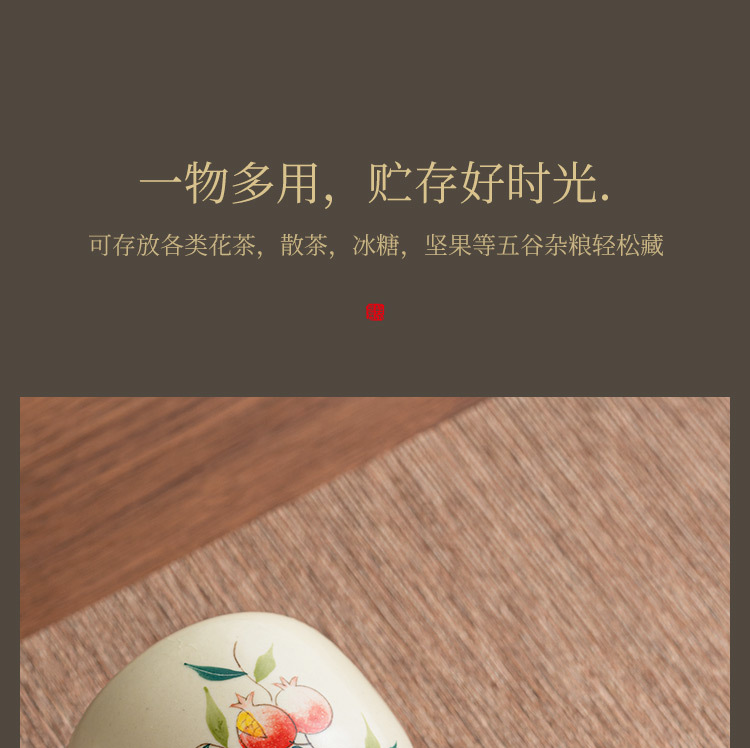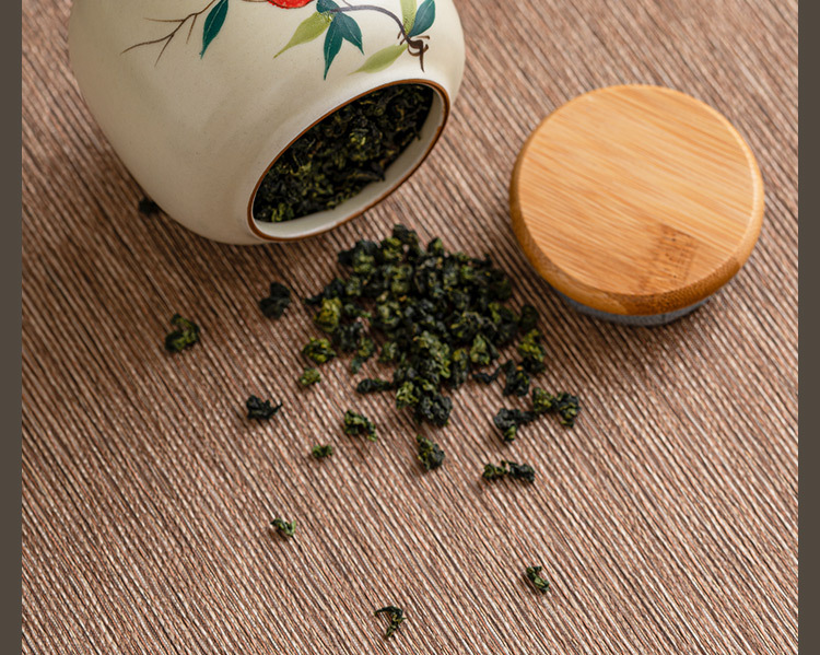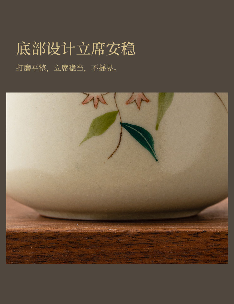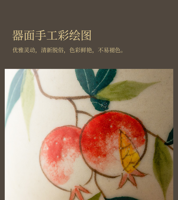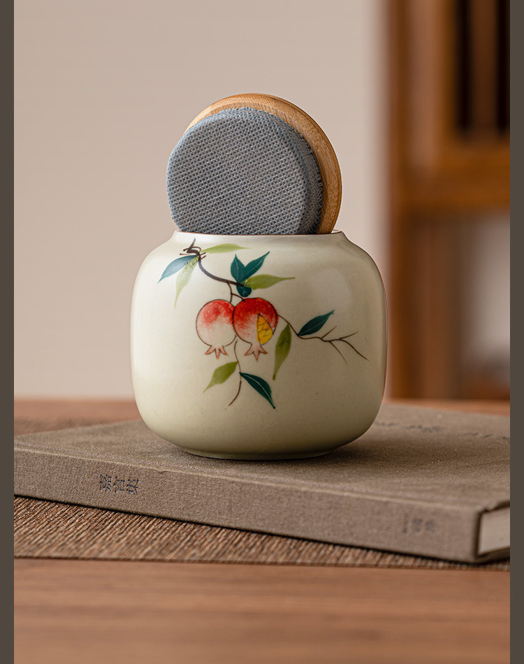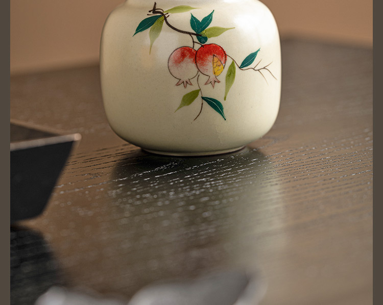 Nồi trà lựu vẽ tay Ru Kiln, bình kín cầm tay chống ẩm nhỏ, bình đựng trà nắp tre gia dụng, kho trà gốm sứ
