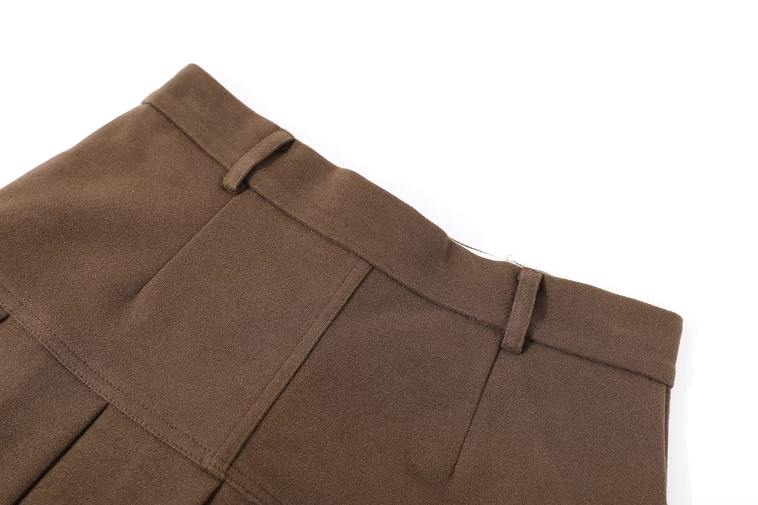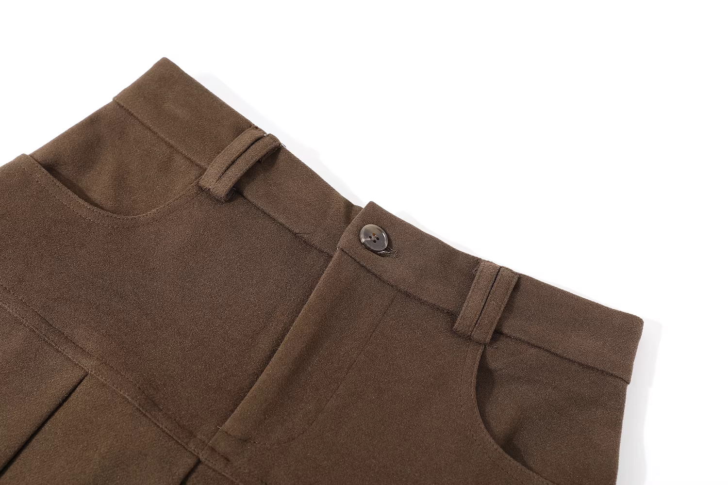 - NSROU nữ mùa thu đông retro đa năng váy bút chì lưng cao giảm béo váy ngắn xếp ly váy len chữ A