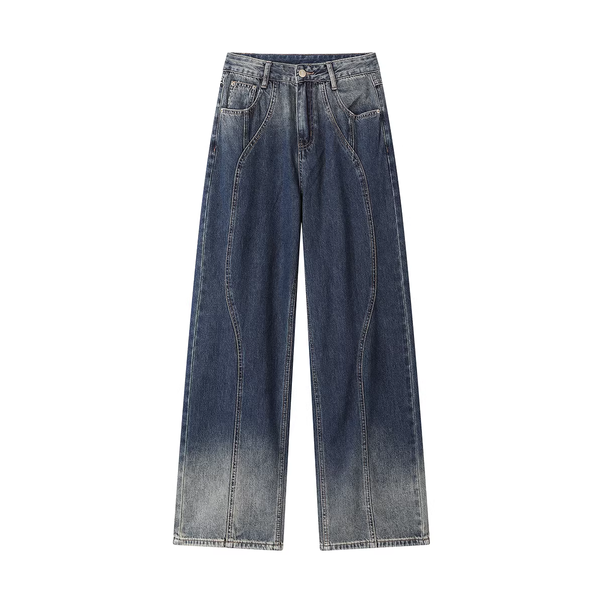 - NSROU Quần jean ống đứng dáng rộng phong cách retro kiểu Mỹ dành cho nữ, quần dài cạp cao mùa thu.