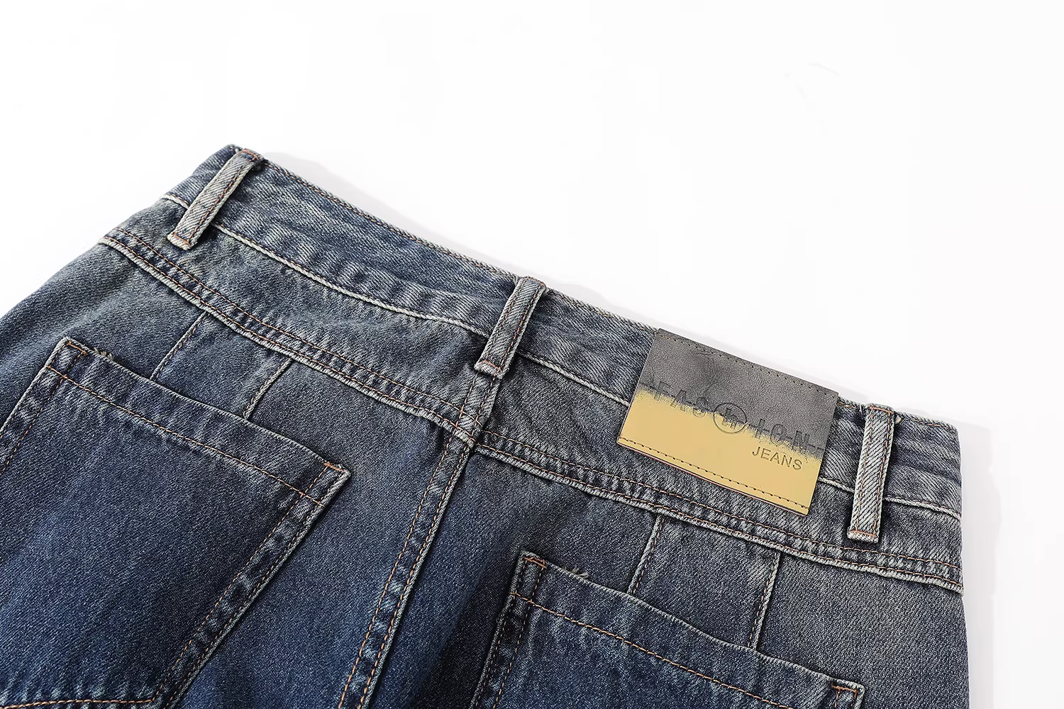 NSROU Quần jean ống đứng dáng rộng phong cách retro kiểu Mỹ dành cho nữ, quần dài cạp cao mùa thu.