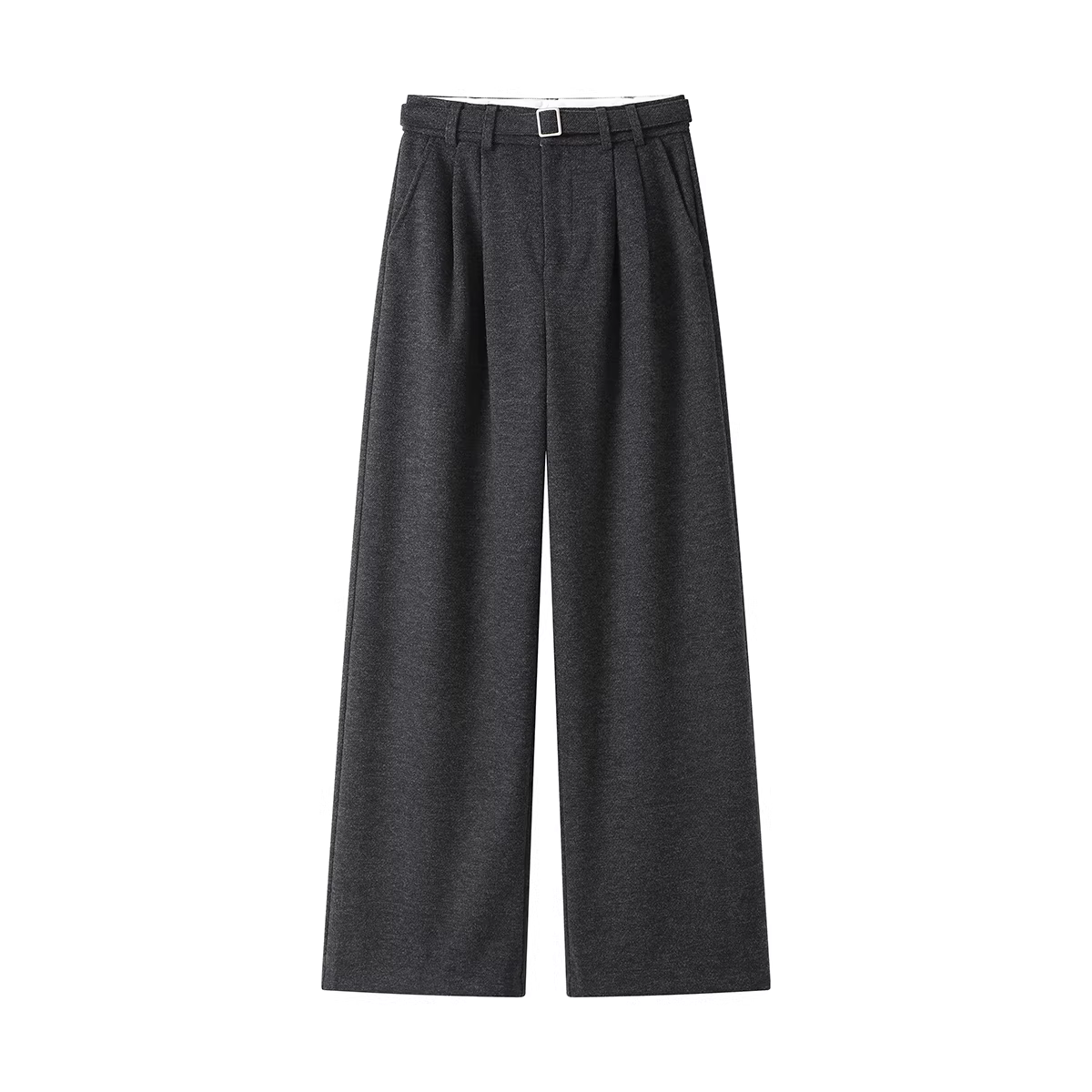 NSROU quần ống rộng bằng len dài đến sàn quần ống rộng thẳng lưng cao quần âu dáng rộng mùa thu đông quần dài dáng rộng cho nữ