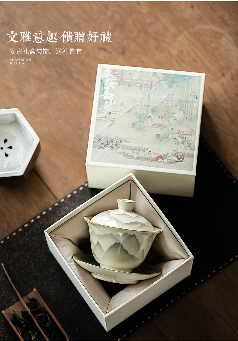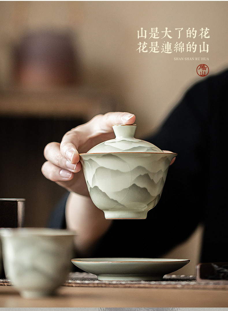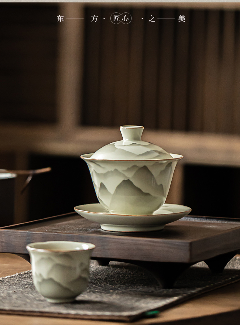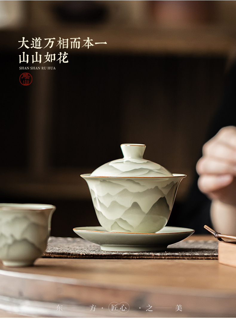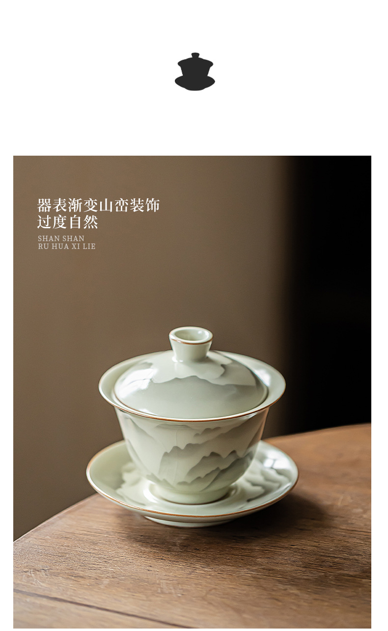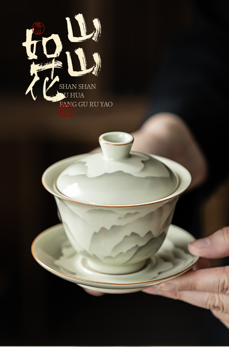 Núi như hoa Ru lò bát có nắp ba tài một bát pha trà gốm sứ cổ điển sang trọng có nắp cốc trà bộ trà Kung Fu
