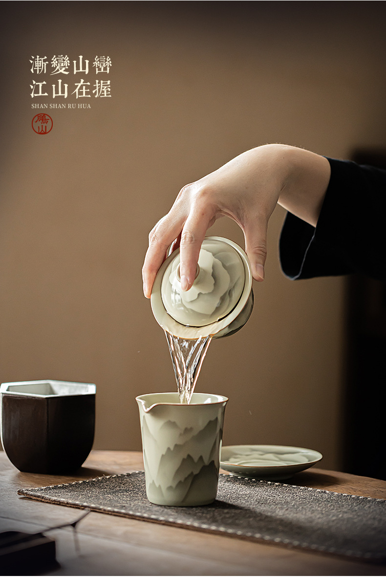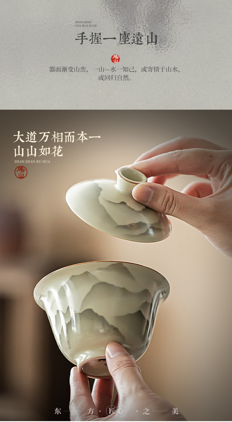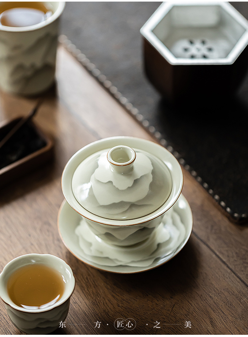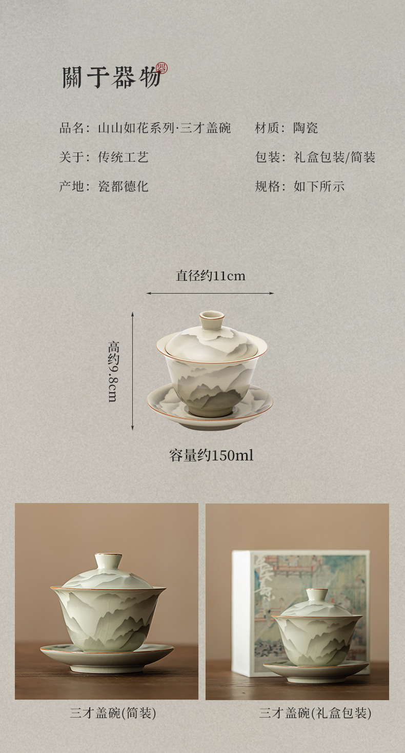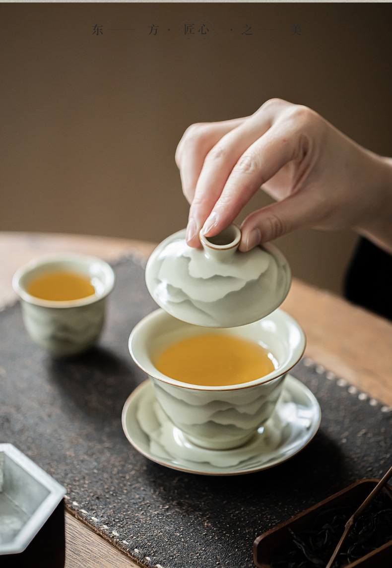 Núi như hoa Ru lò bát có nắp ba tài một bát pha trà gốm sứ cổ điển sang trọng có nắp cốc trà bộ trà Kung Fu