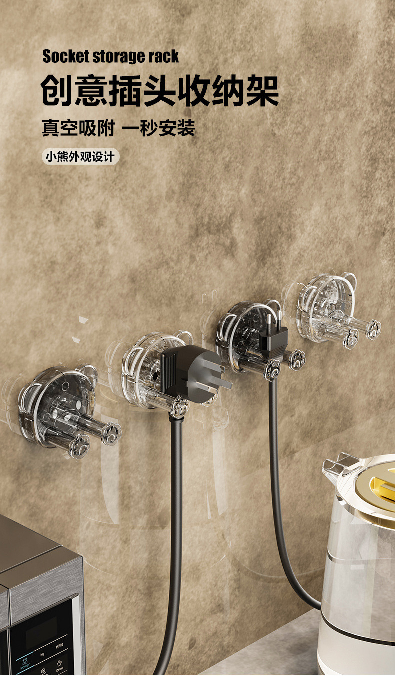 Ổ cắm phích cắm cốc hút, ổ cắm, giá đỡ đầu dây nguồn, nhà vệ sinh, tường nhà bếp, không cần đục lỗ