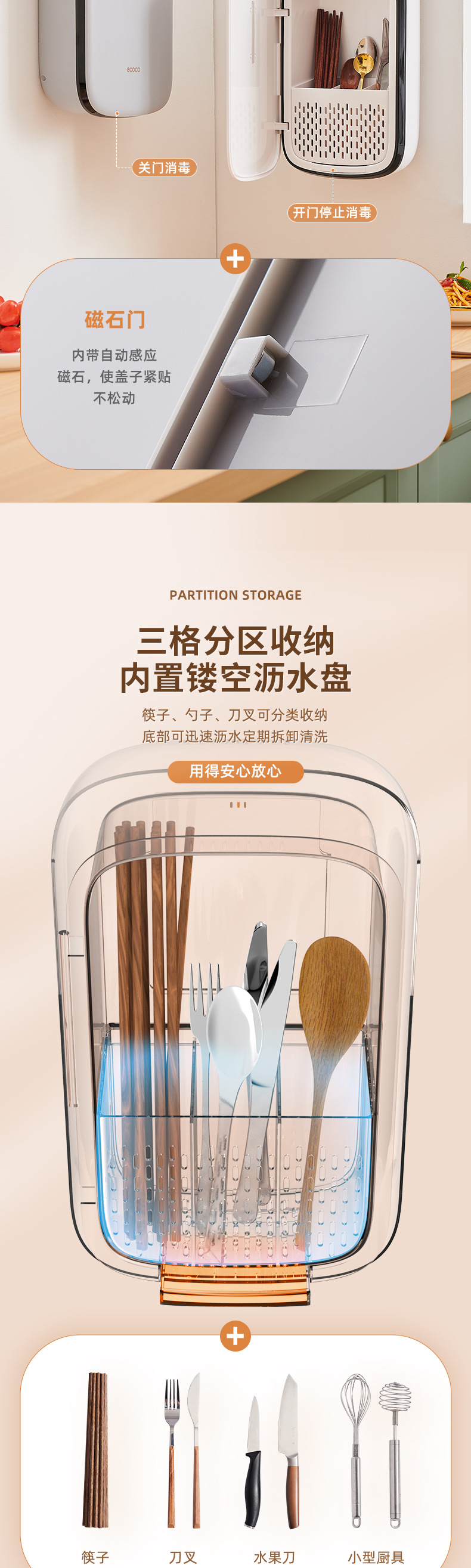 Ống đựng đũa khử trùng gia dụng cao cấp mẫu mới có phơi treo tường lồng đũa đựng Giỏ đựng đũa Hộp đựng đồ Máy tiệt trùng nhà bếp