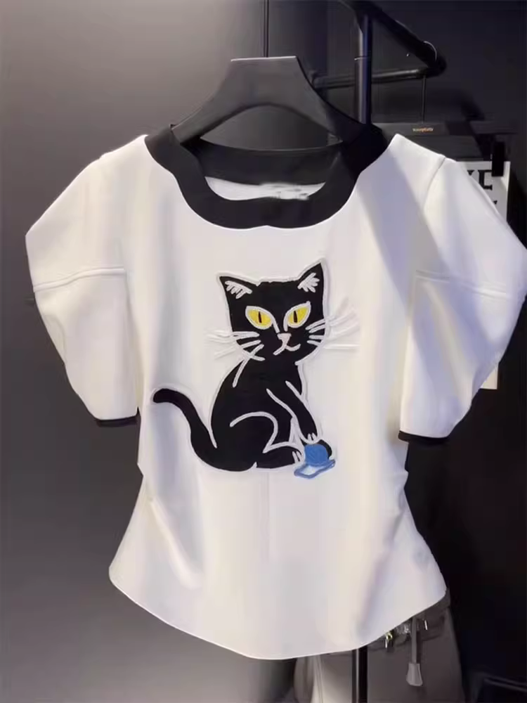 Outlet~ Quầy hàng ngoại thương có thương hiệu với giá ưu đãi, thiết kế độc đáo, áo thun ngắn tay tay phồng độc đáo dành cho nữ, phong cách mùa hè hợp thời trang