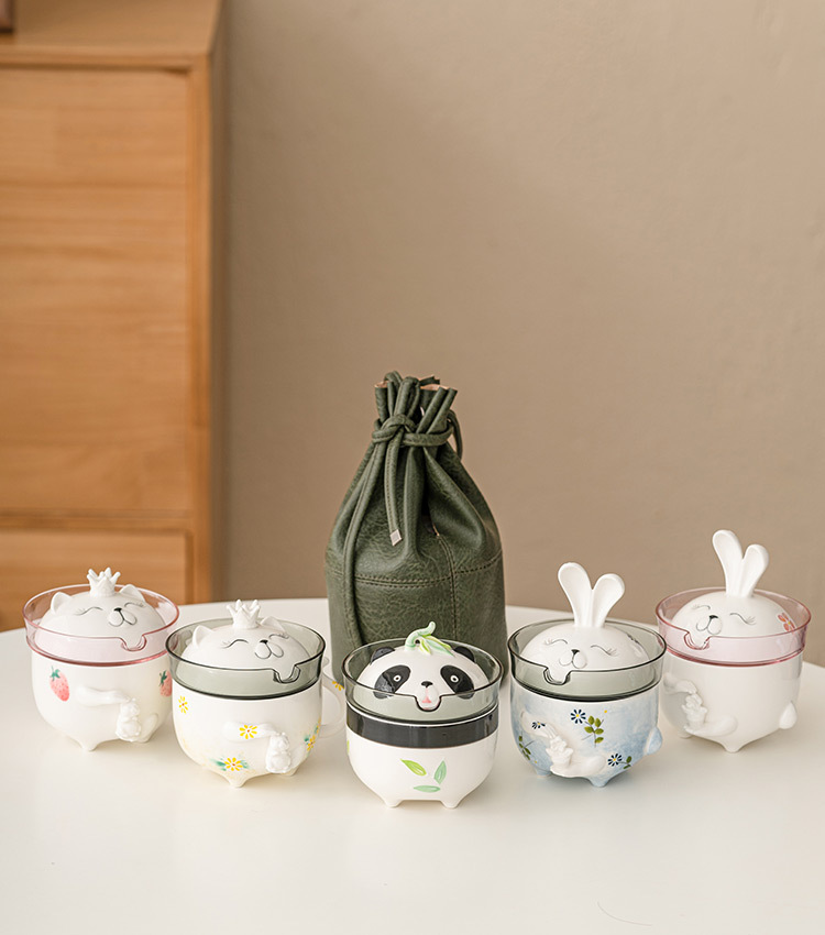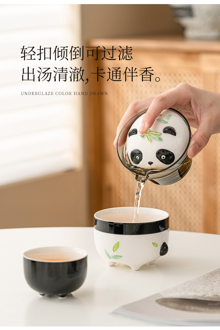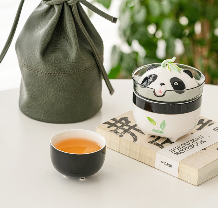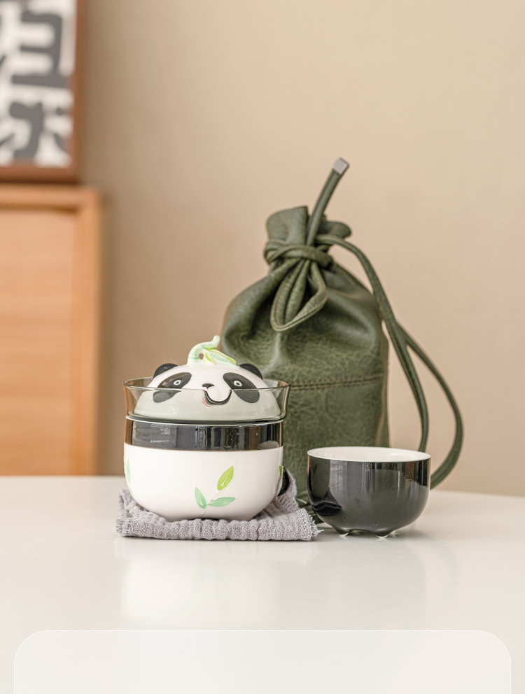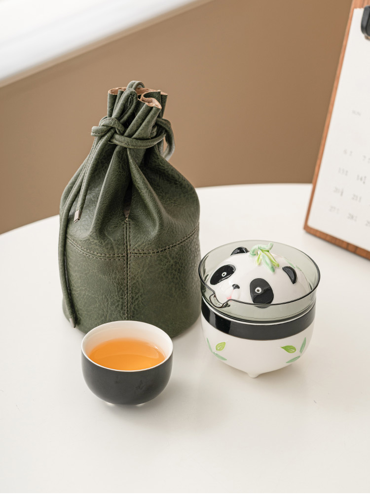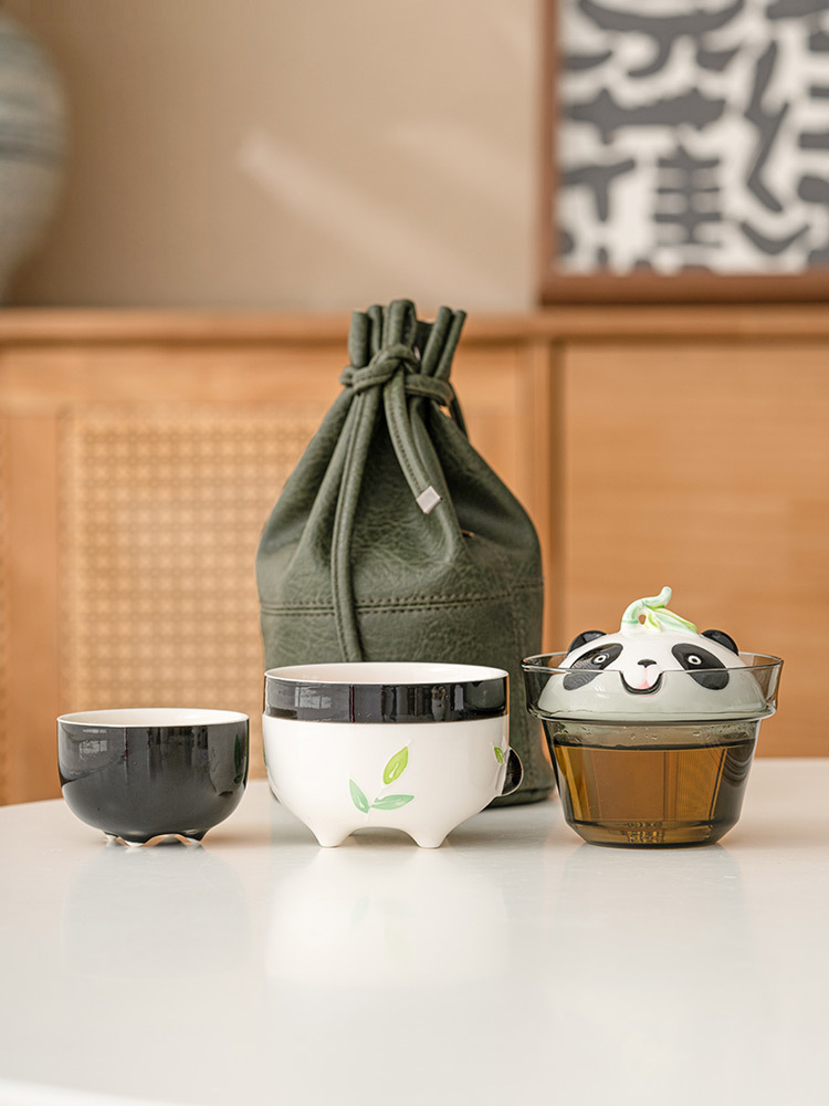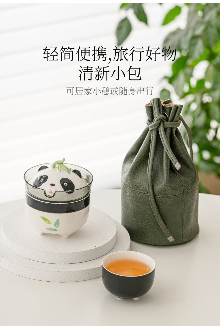 Panda gốm sứ cốc khách nhanh một ấm một cốc Bộ trà du lịch xách tay ngoài trời Túi đựng thiết bị uống trà