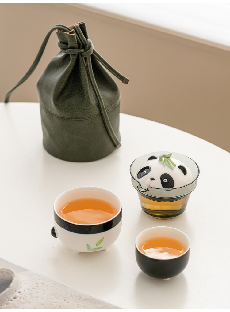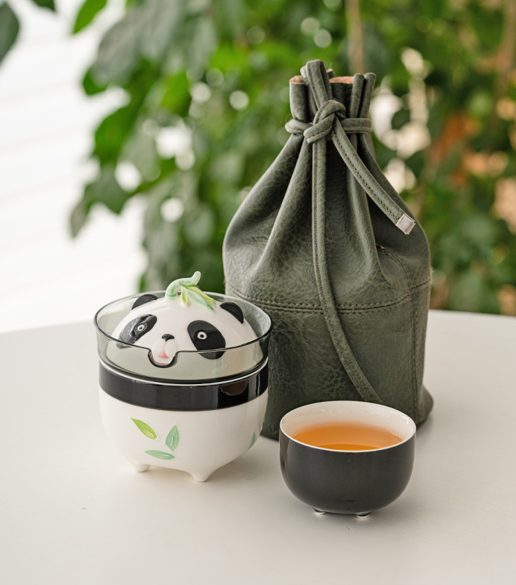 - Panda gốm sứ cốc khách nhanh một ấm một cốc Bộ trà du lịch xách tay ngoài trời Túi đựng thiết bị uống trà