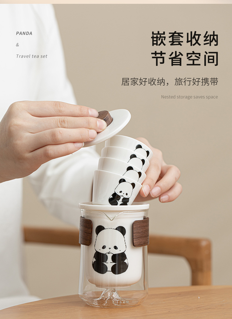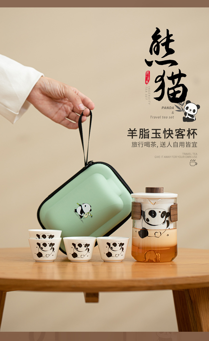 - Panda mỡ cừu ngọc cốc khách nhanh ngoài trời di động hoạt hình một bình bốn cốc trà gốm sứ bộ trà kung fu ngoài trời