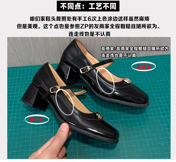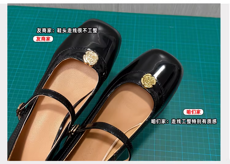 Pear Xiaoqi~ Giày Mary Jane kiểu Pháp dành cho nữ, giày cao gót, giày đơn gót cao bằng da bóng hình hoa trà, giày da nhỏ kiểu Hepburn JK.