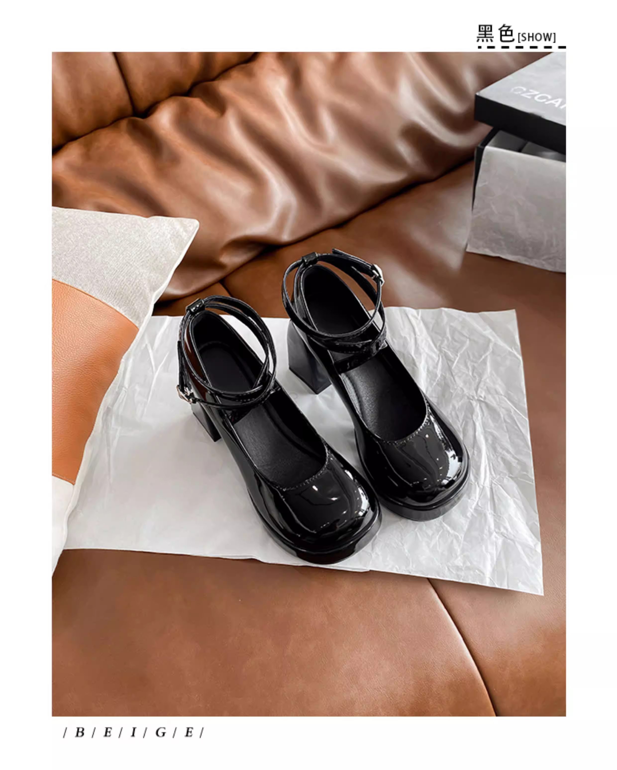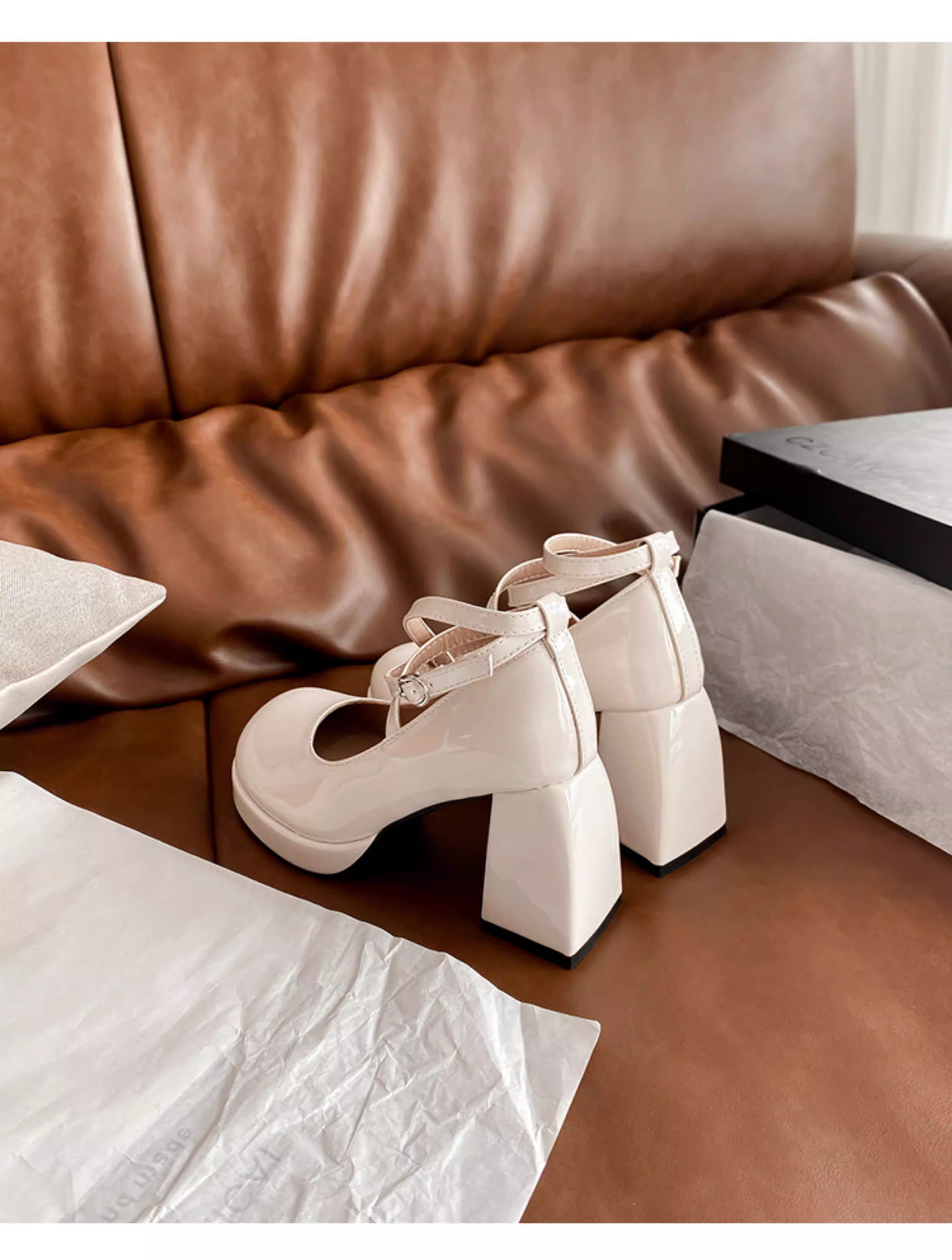 Pear Xiaoqi~ Giày Mary Jane màu trắng dành cho nữ, giày cao gót, gót dày, giày đơn có quai chéo, váy cưới cần thiết, giày phù dâu, giày cưới.