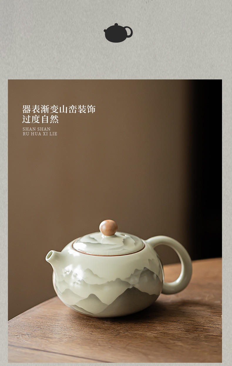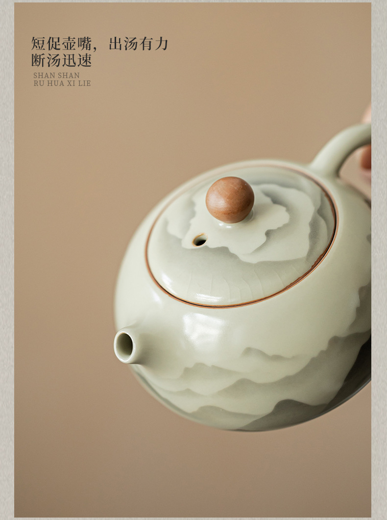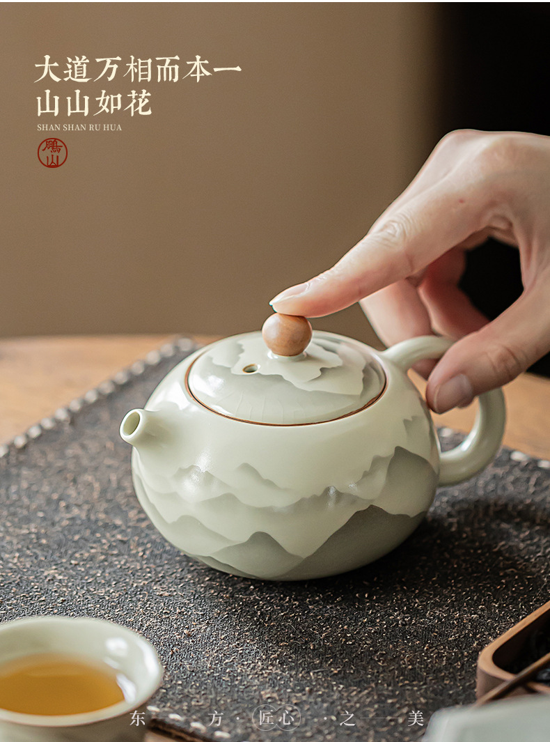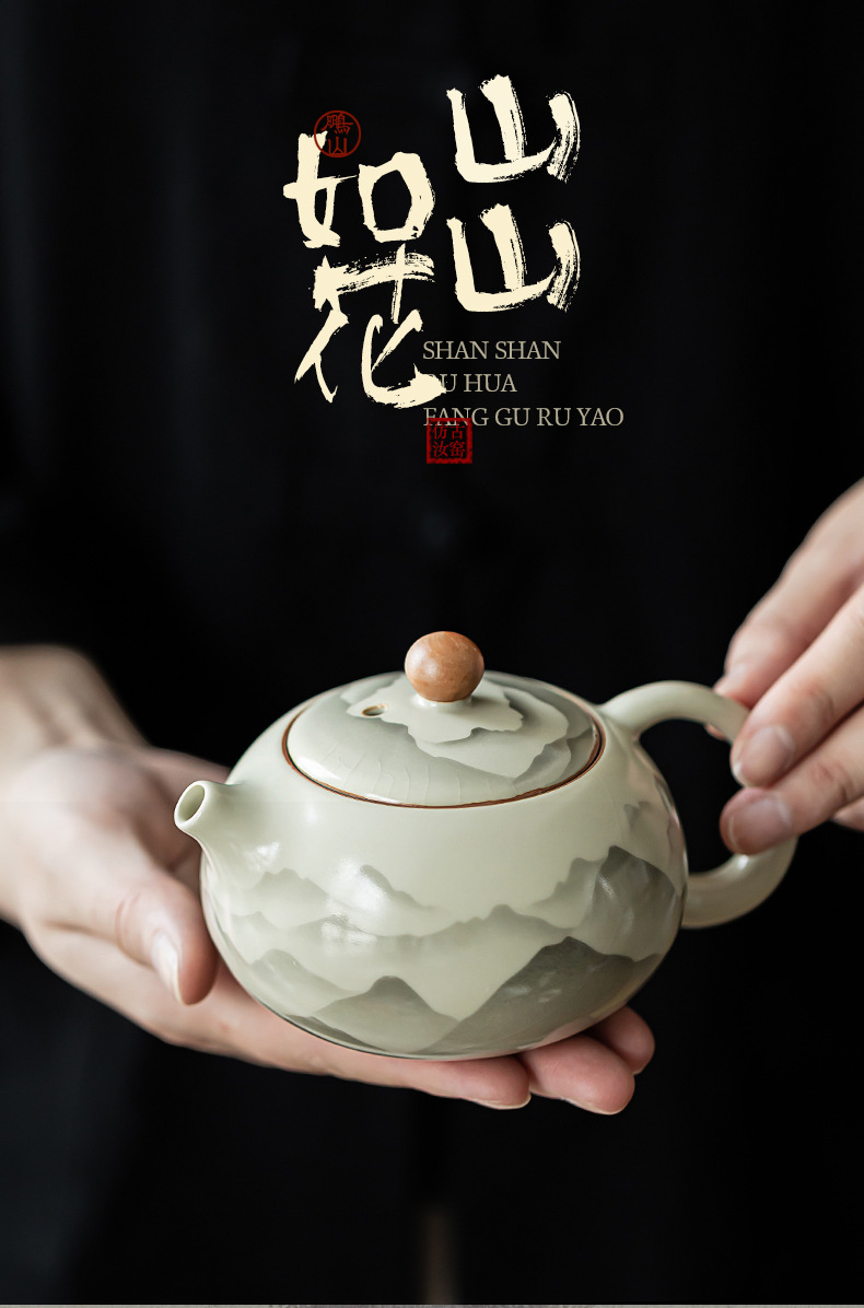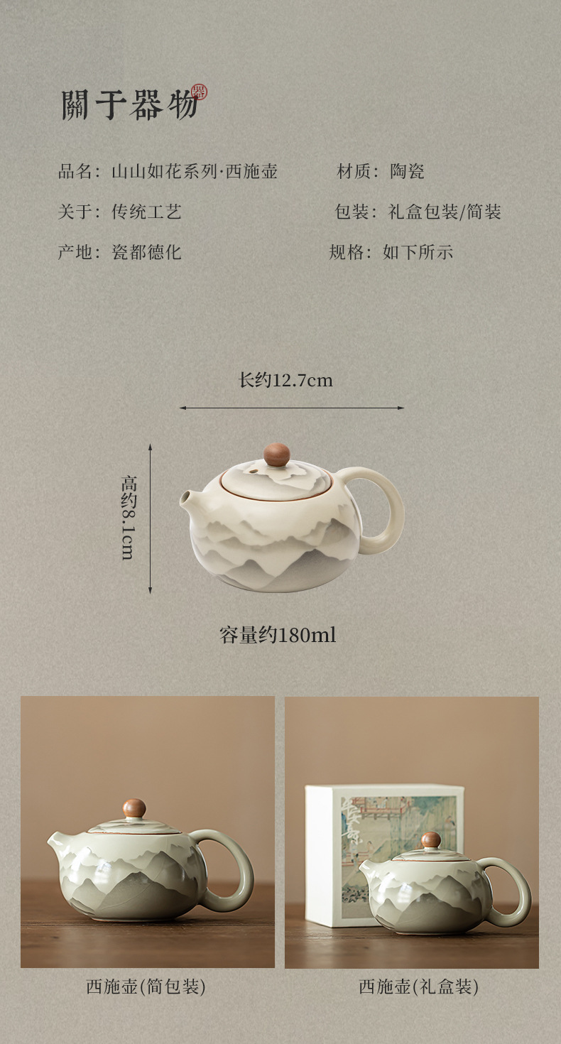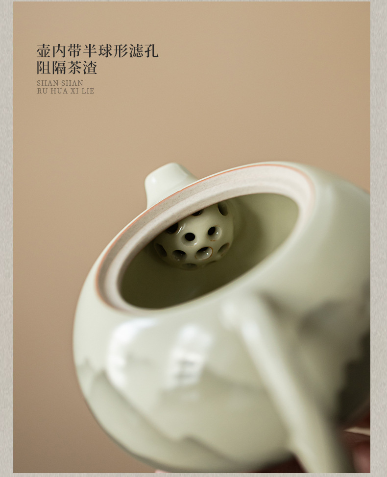 - Pengshan Ruyao Mountain Ruhua Xi Shi Ấm trà gốm sứ gia dụng cổ điển Bộ trà Kung Fu Ấm trà bóng lỗ lọc Bình đơn