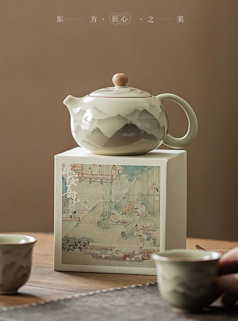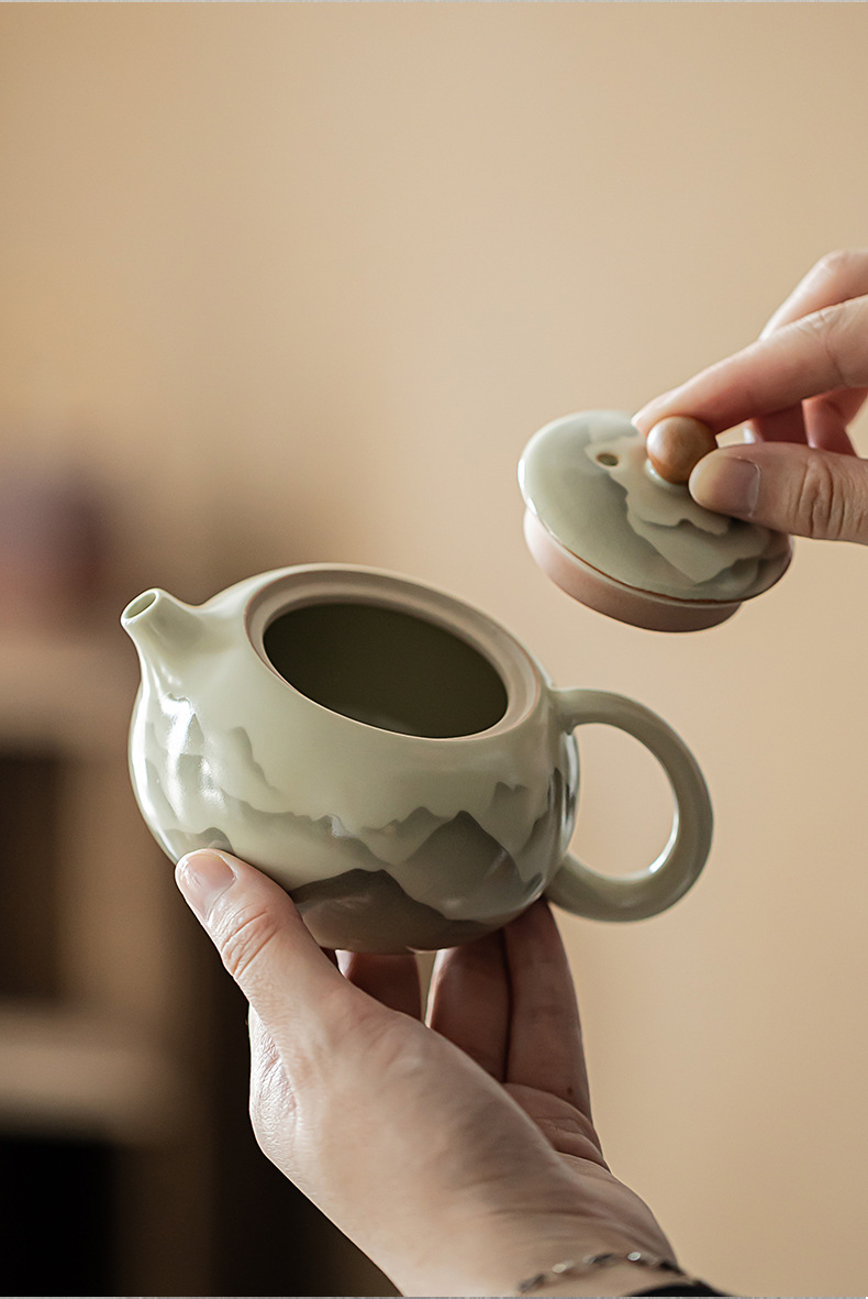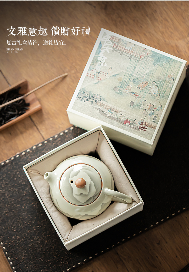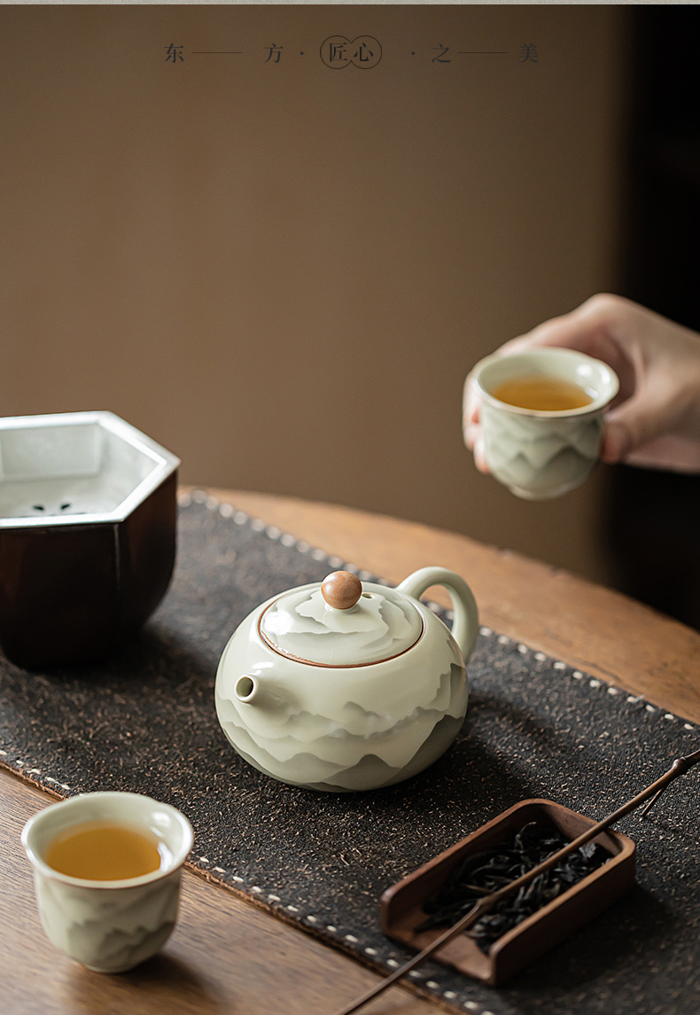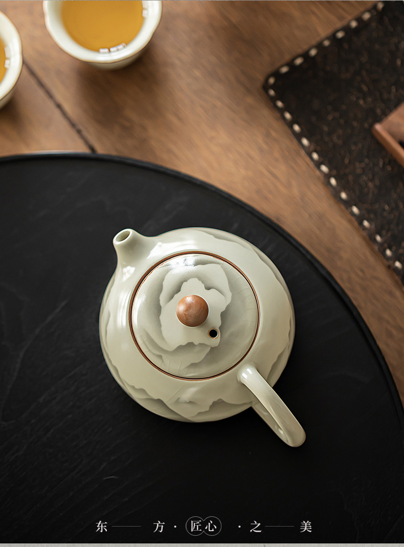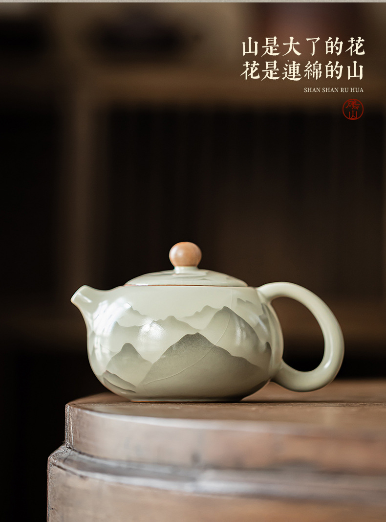 - Pengshan Ruyao Mountain Ruhua Xi Shi Ấm trà gốm sứ gia dụng cổ điển Bộ trà Kung Fu Ấm trà bóng lỗ lọc Bình đơn