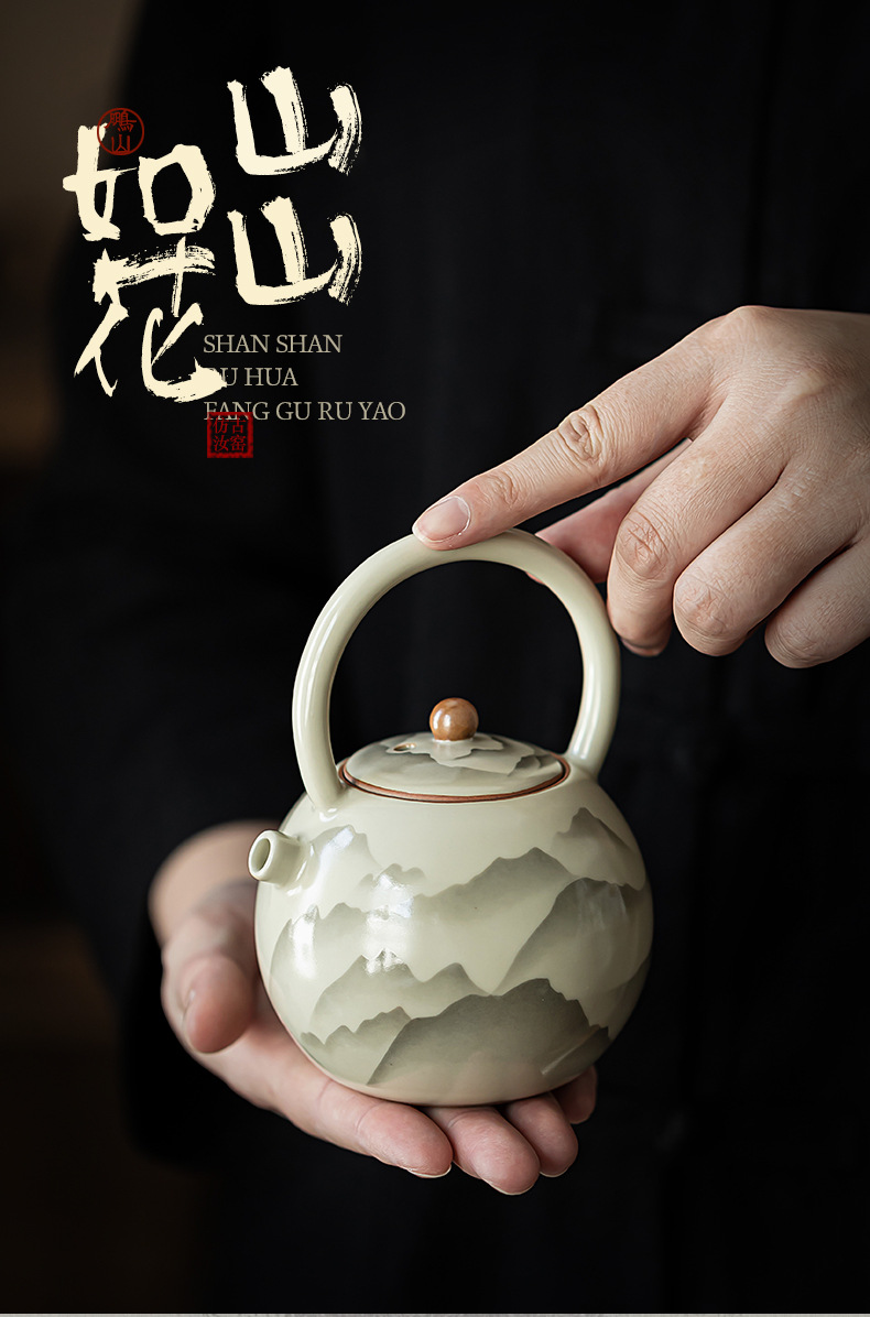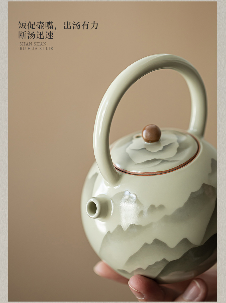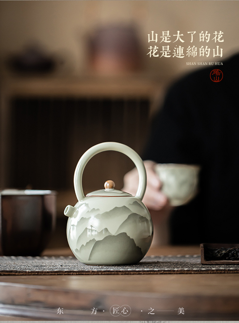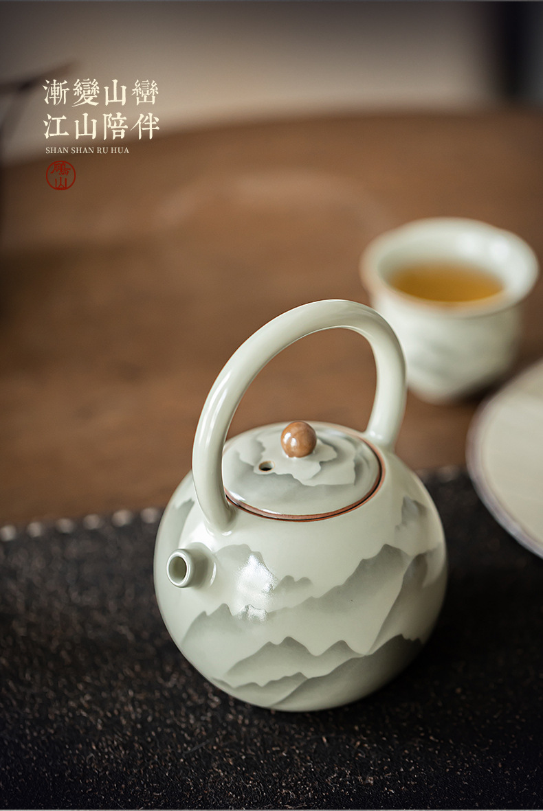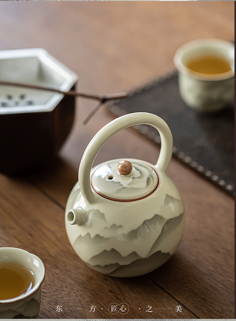 - Pengshan Ruyao Yuanshan hoàn thành ấm cầm dầm mở tấm có thể nâng cao bộ trà gốm sứ ấm trà bộ trà kung fu gia dụng ấm pha trà