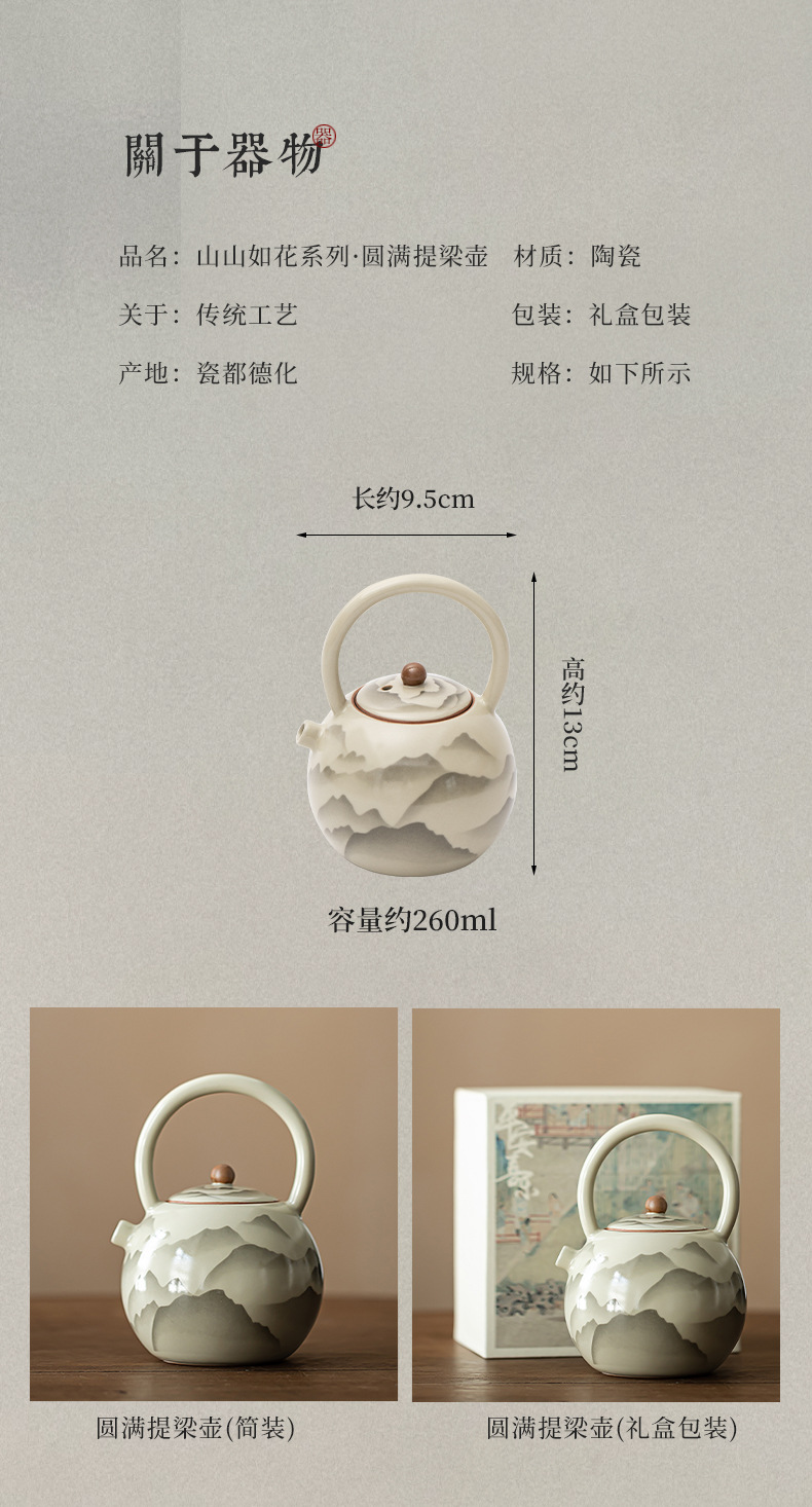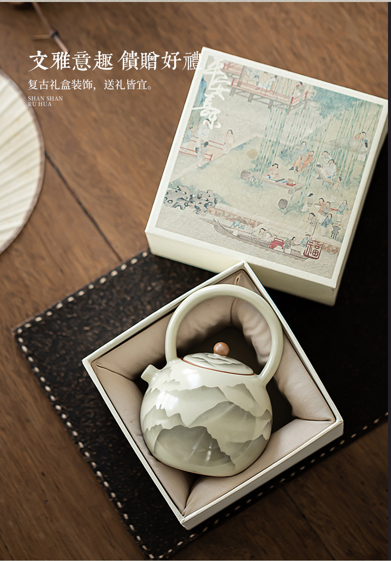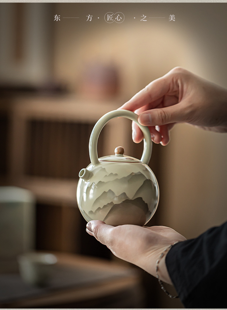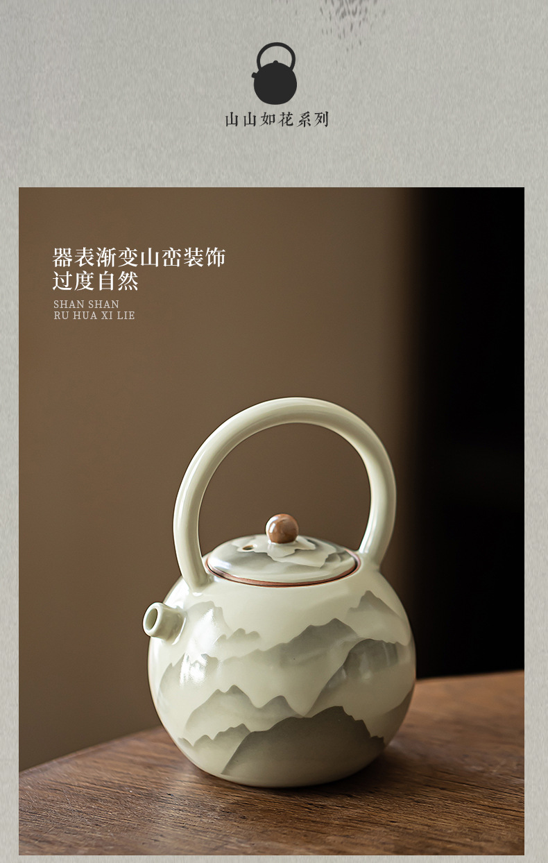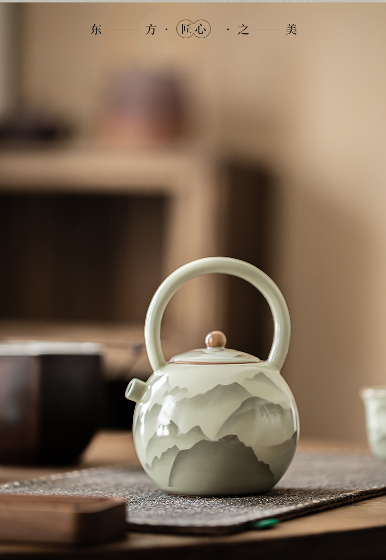 - Pengshan Ruyao Yuanshan hoàn thành ấm cầm dầm mở tấm có thể nâng cao bộ trà gốm sứ ấm trà bộ trà kung fu gia dụng ấm pha trà