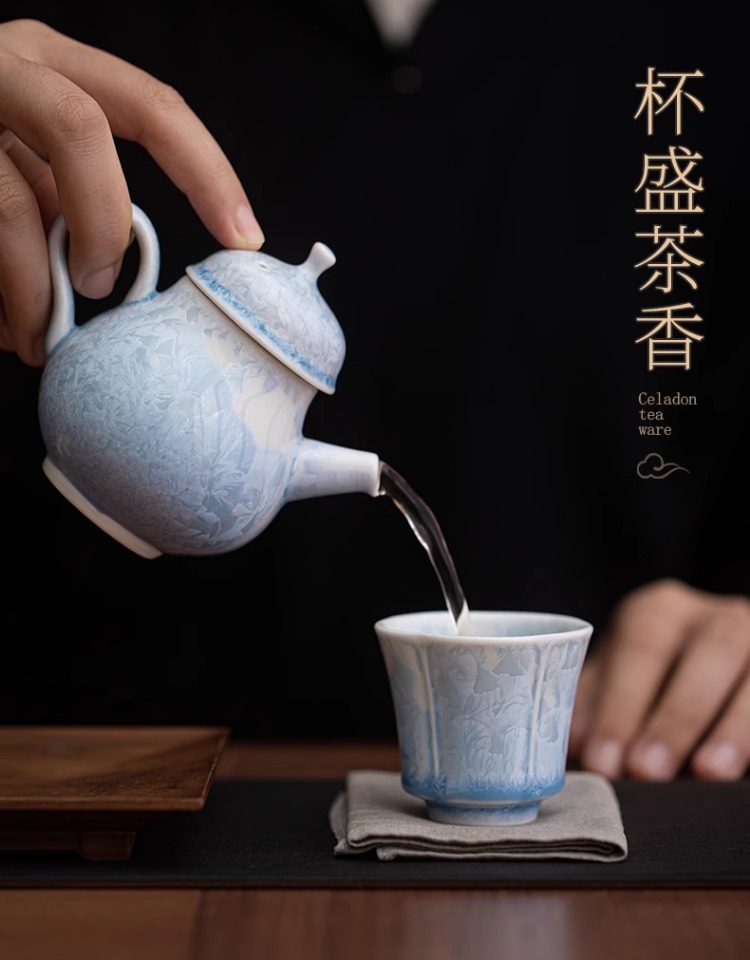 - Pha lê men tươi lò nung thay đổi màu xanh nước đá tách trà hoa cốc chủ nhân bộ trà Kung Fu đồ uống trà cá nhân cốc đơn gốm sứ quà tặng